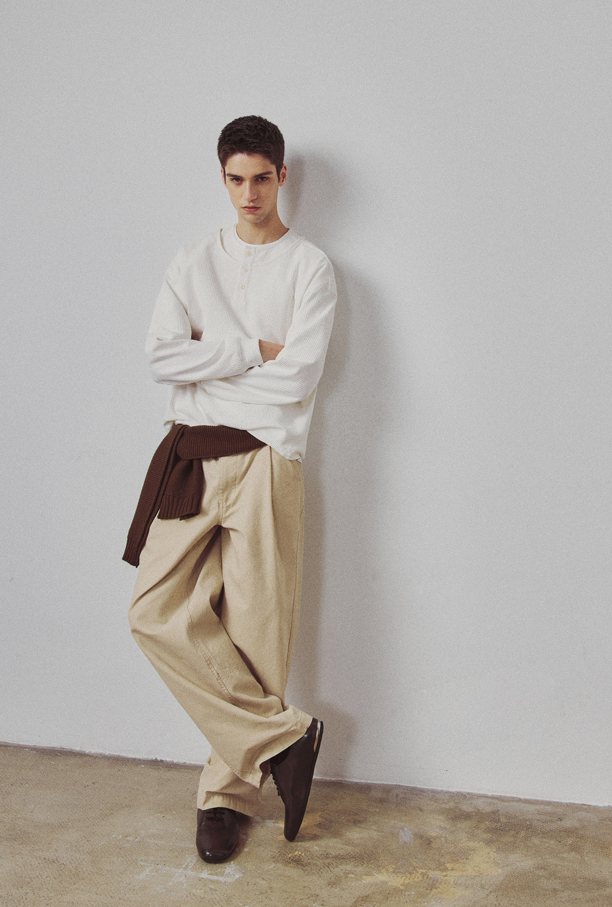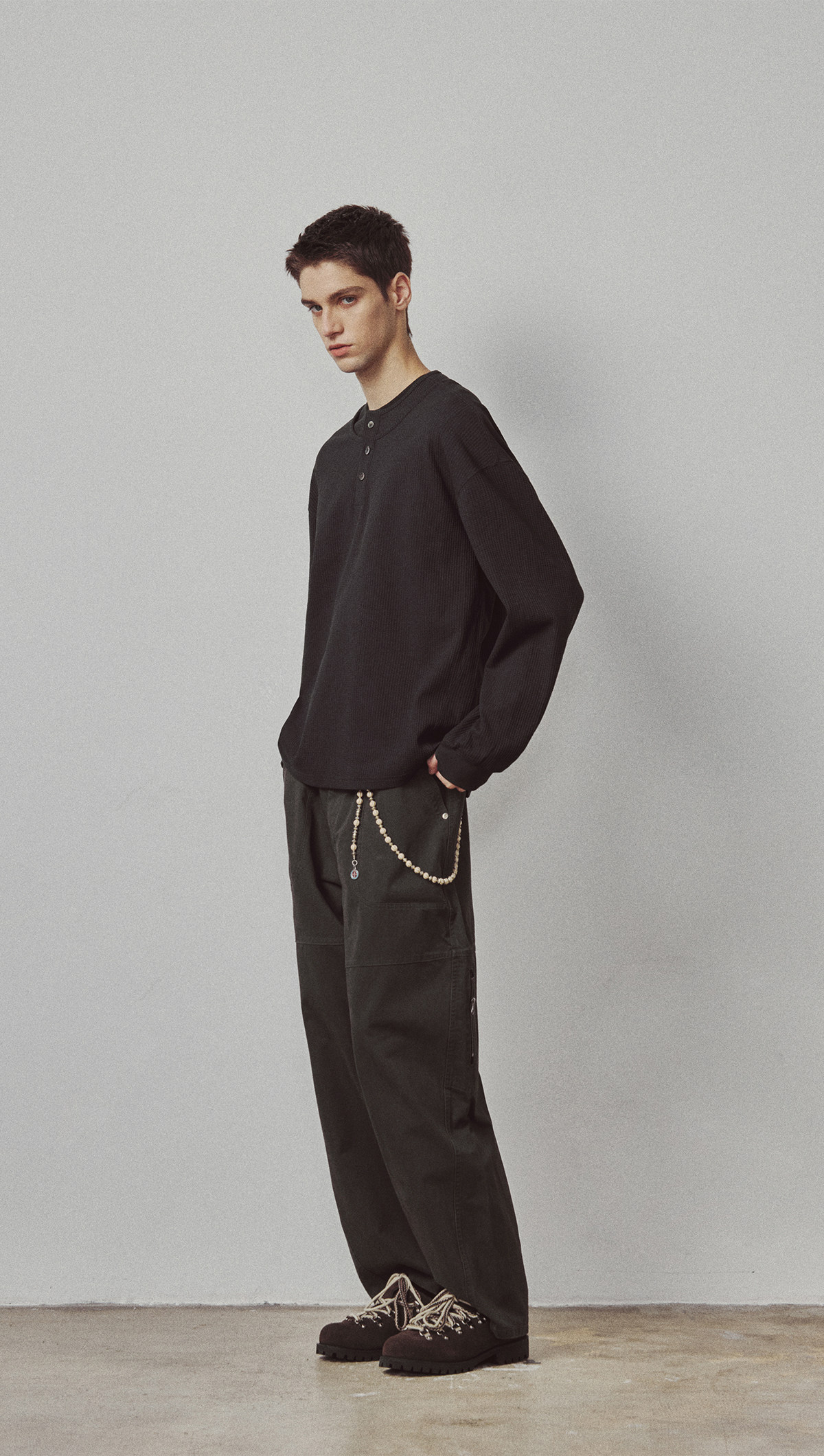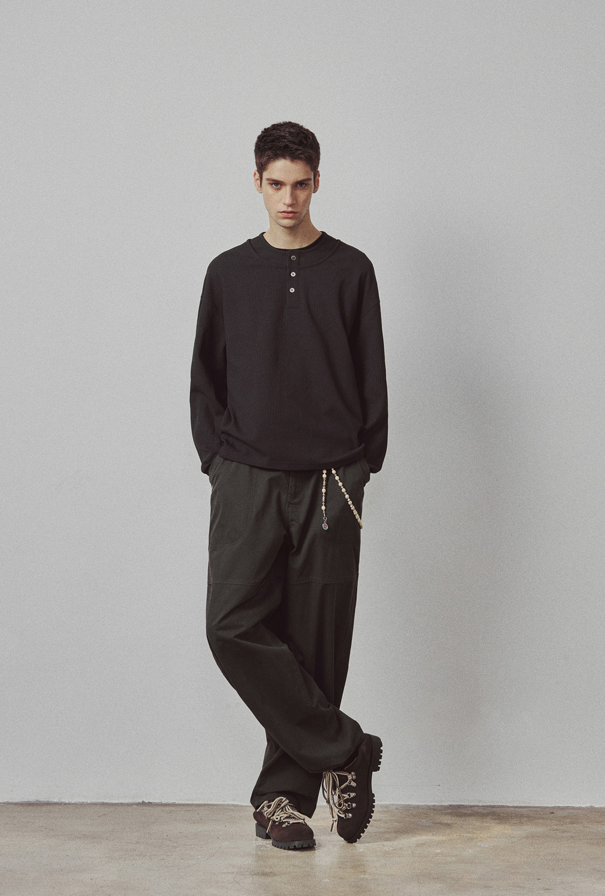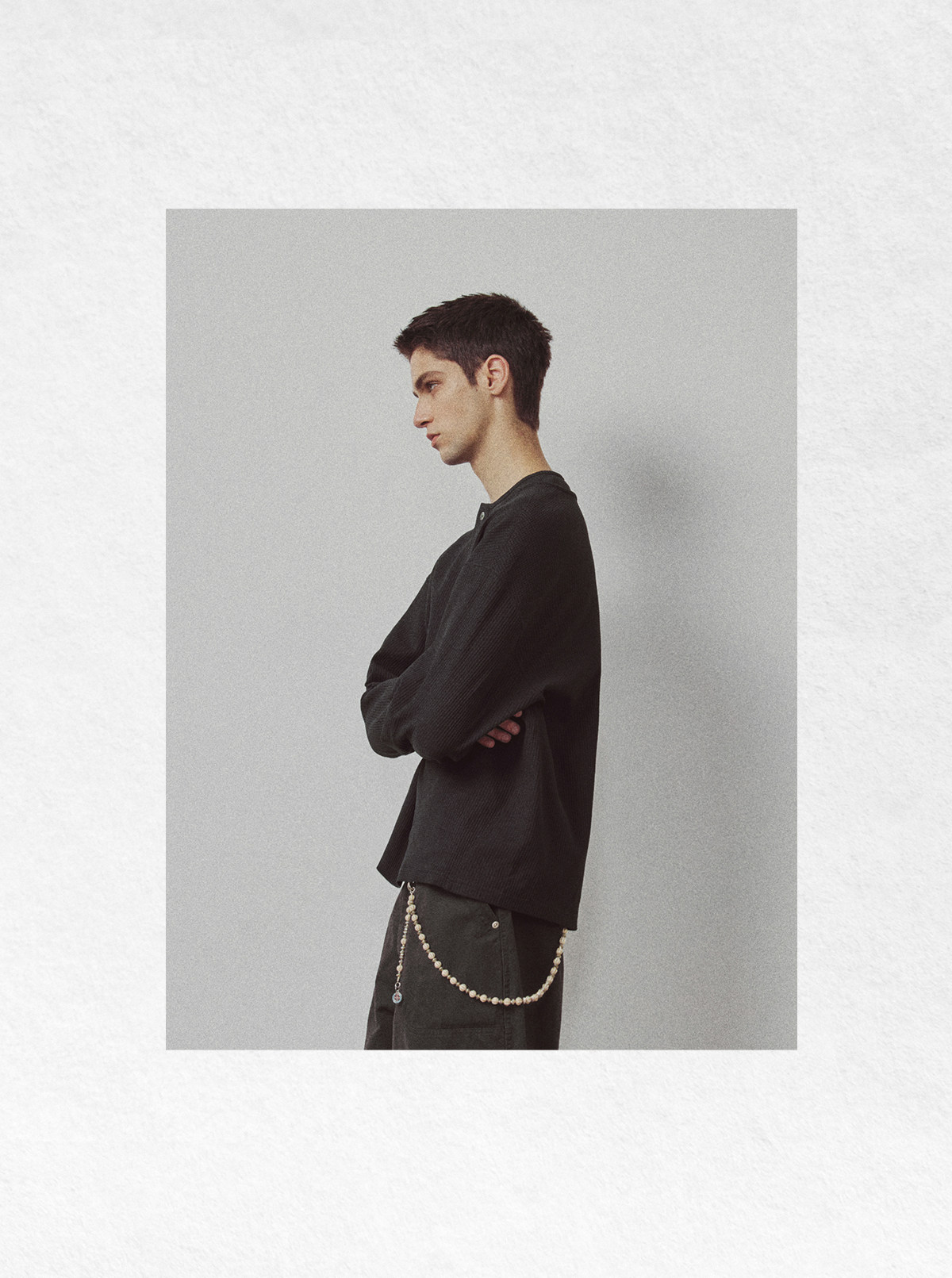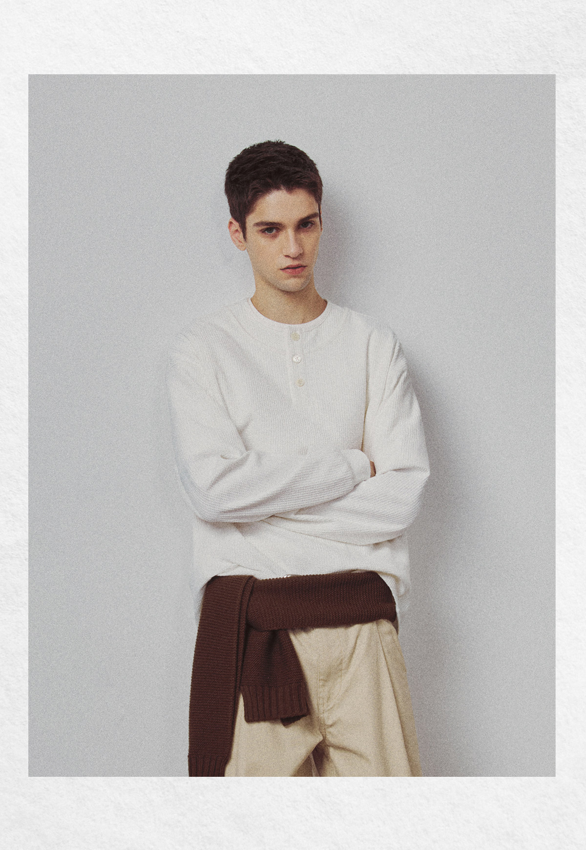 714street高端线BEHALF SORONA 华夫格贝壳扣 双层叠穿亨利领长袖