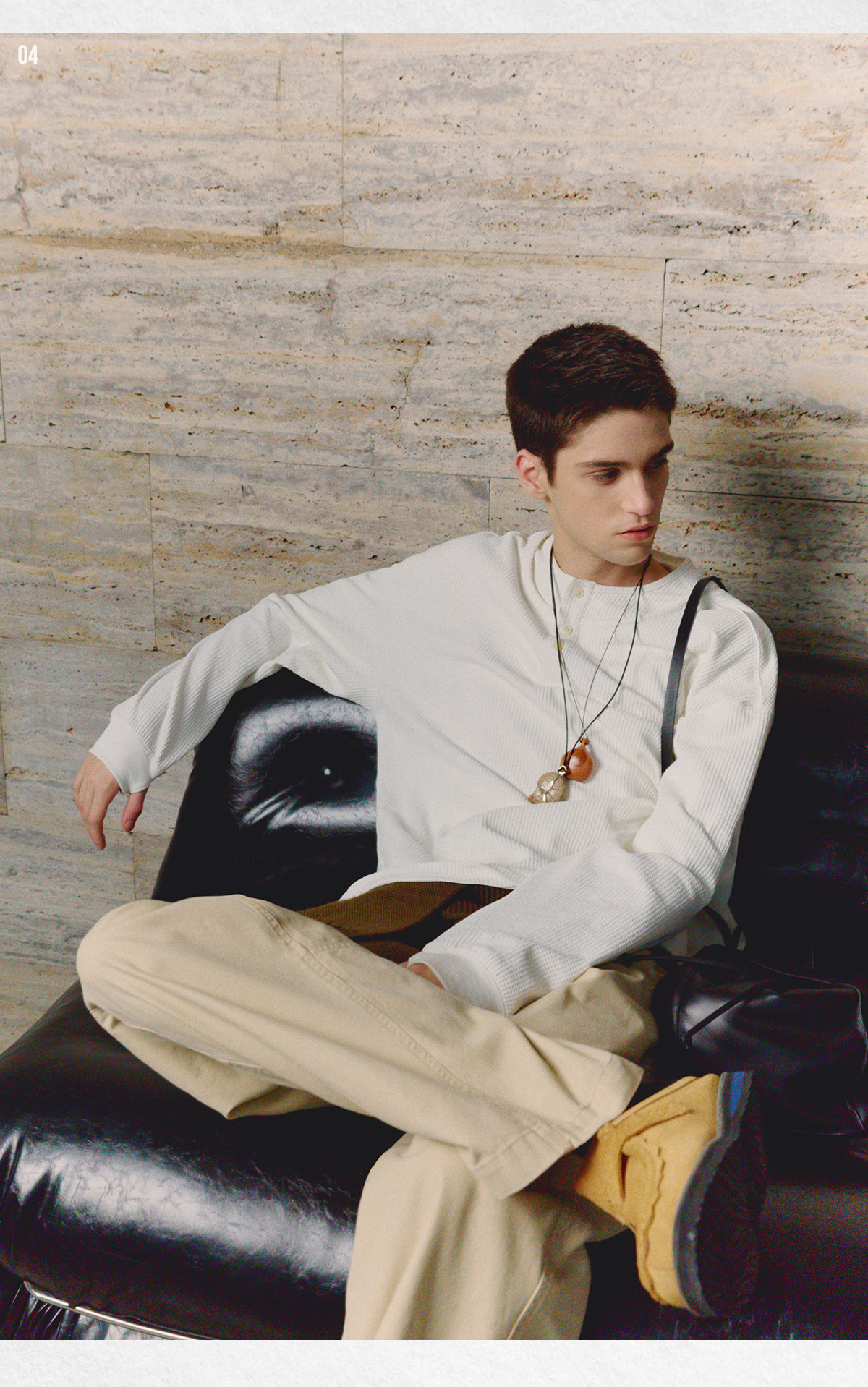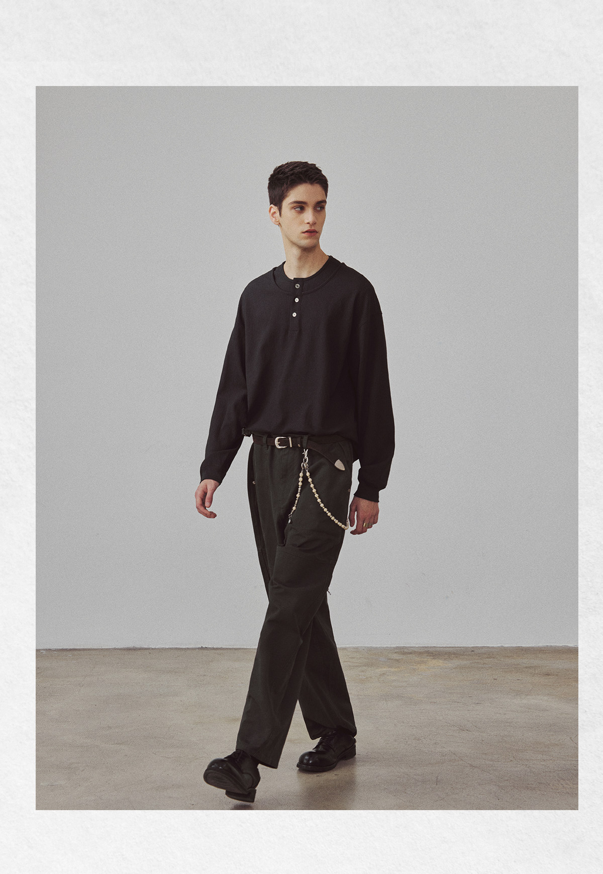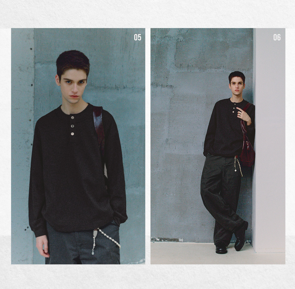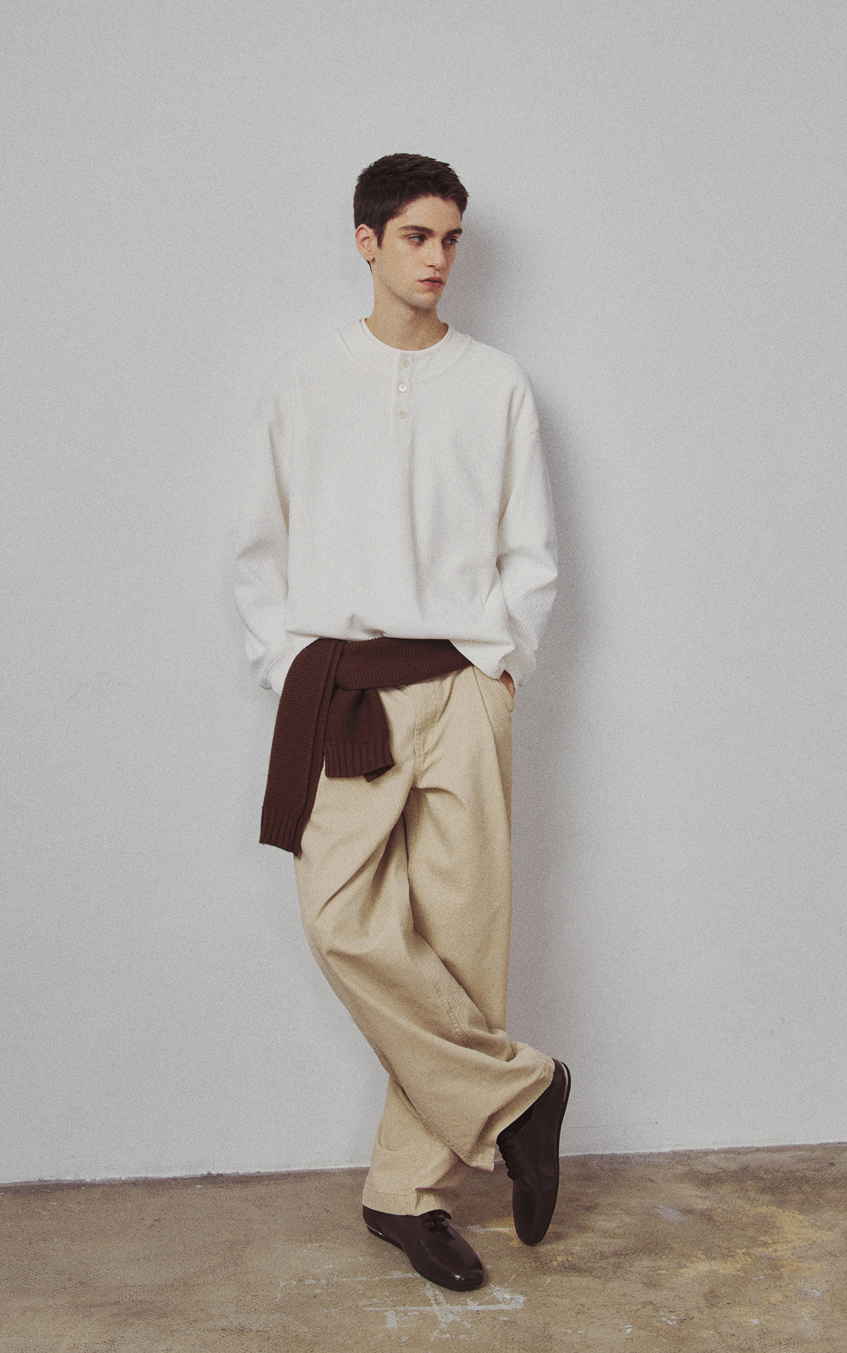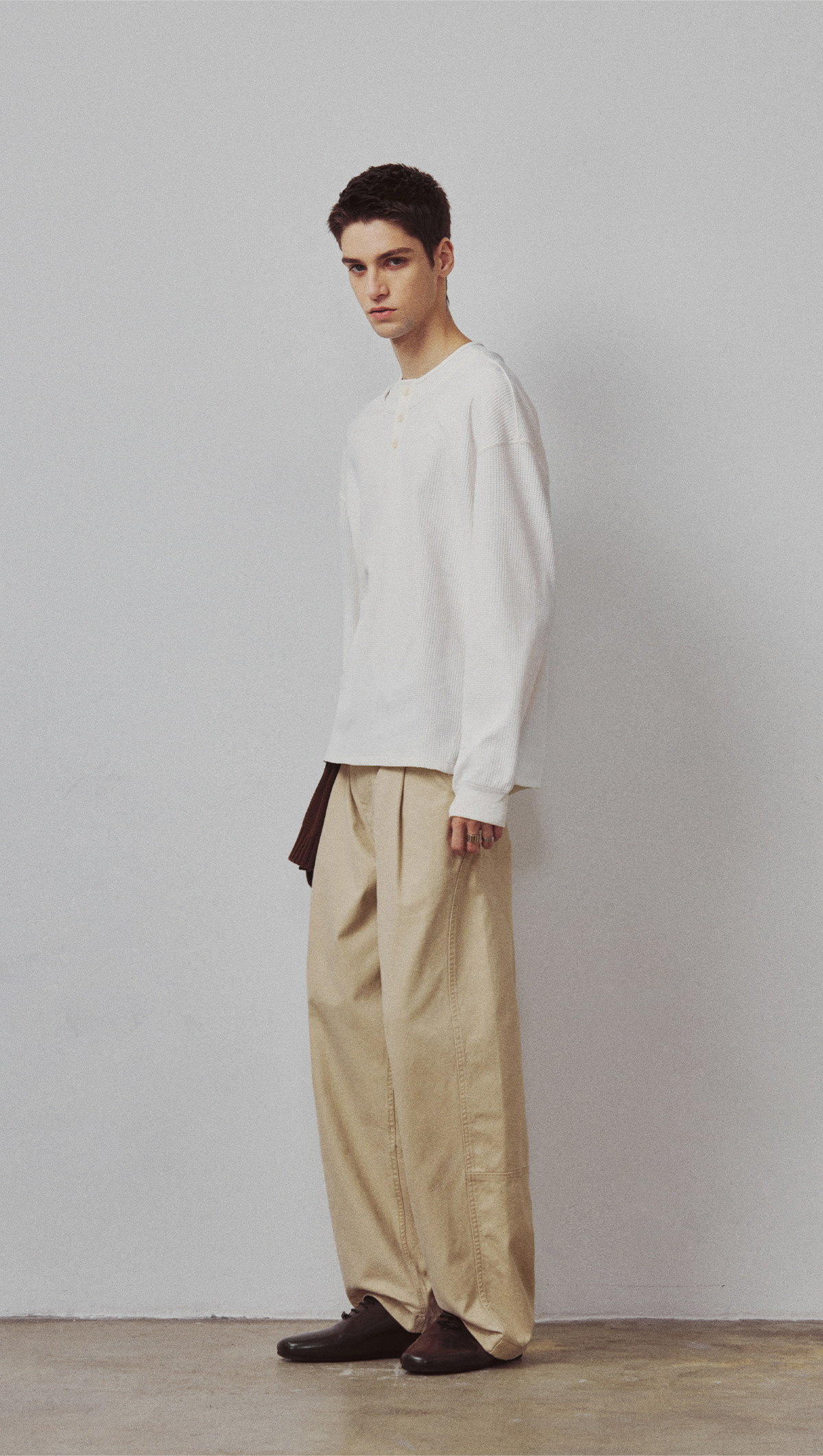 714street高端线BEHALF SORONA 华夫格贝壳扣 双层叠穿亨利领长袖