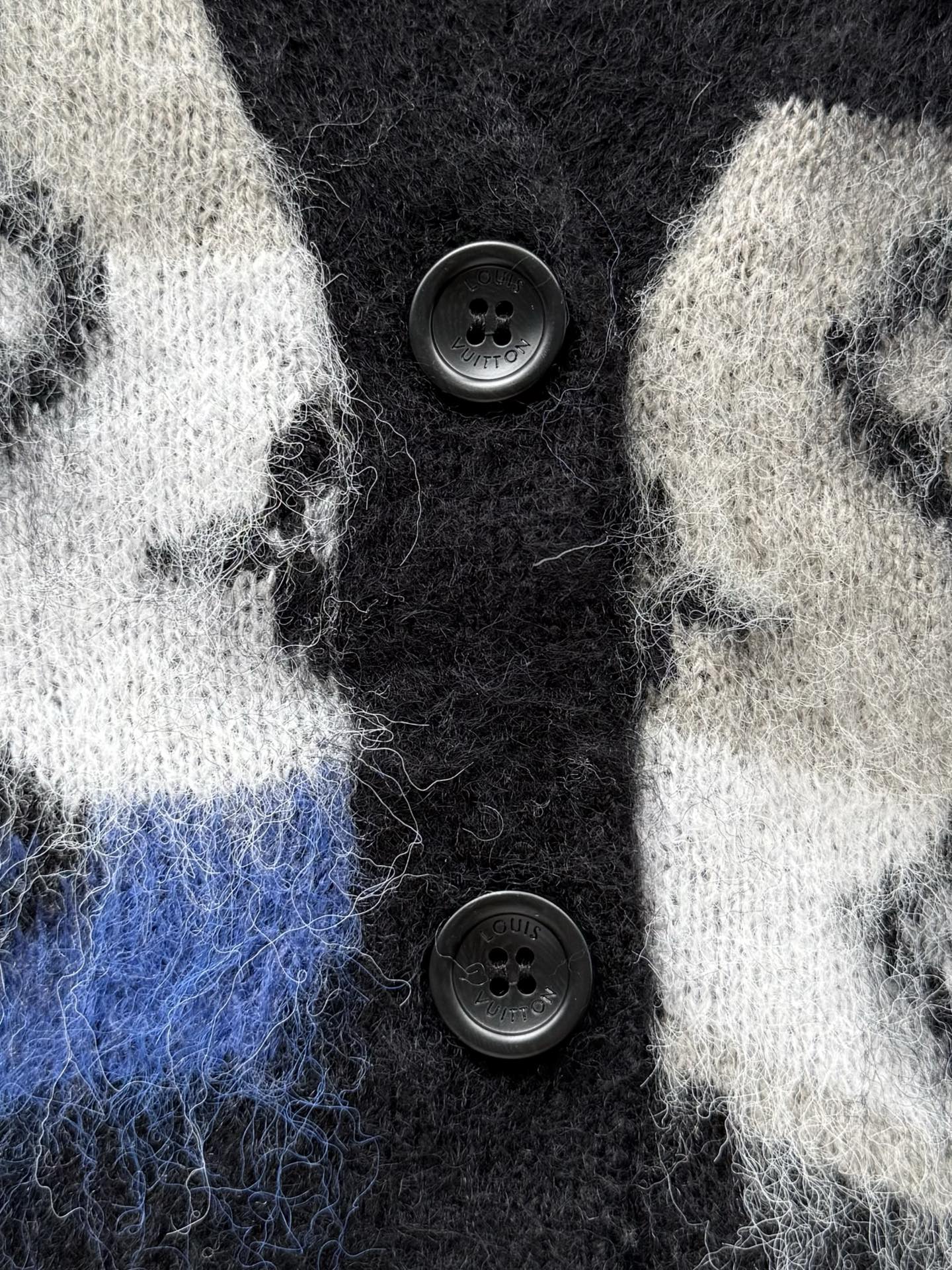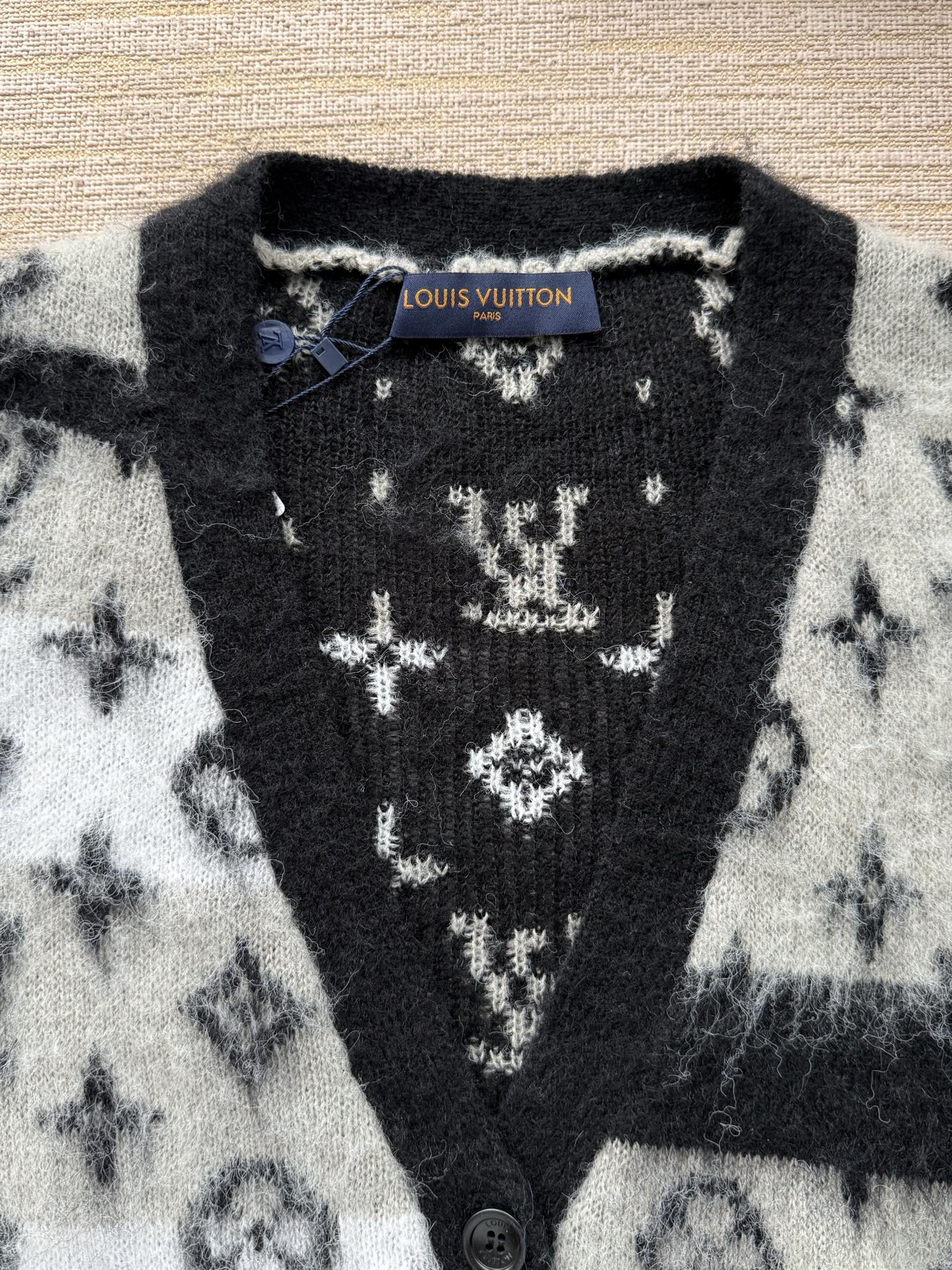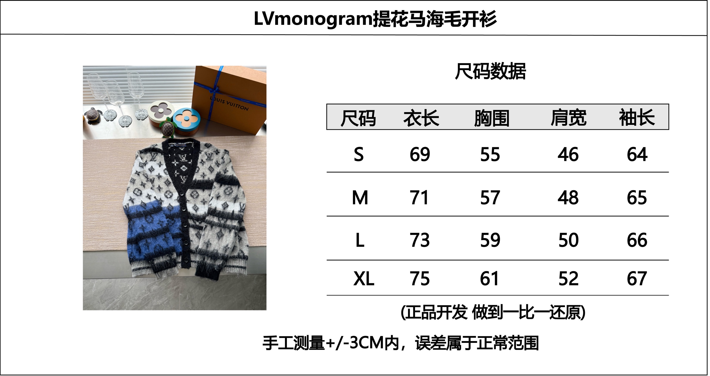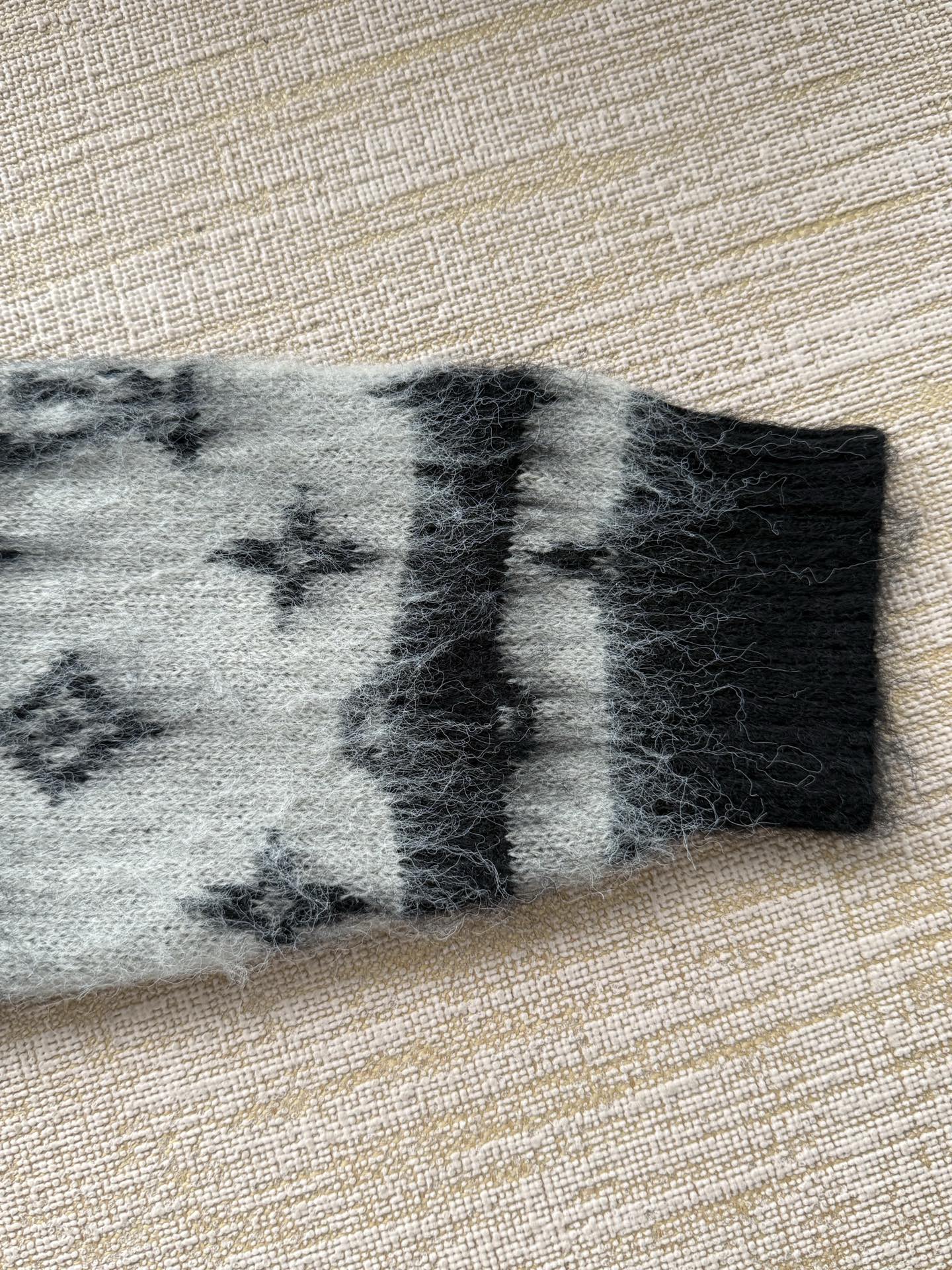 Louis Vuitton25FWMonogram提花马海毛开衫‼️整件衣服15800购买ZP拆解打造,采用定制马海毛混纺面料,意大利制造,全幅饰以Monogram提花,做挂毛工艺,门襟开模定制LV字母标识角质纽扣,前幅两边贴袋设计,定织标志性罗纹袖口 下摆,超紧密度局部编织,真正做到1:1copy 码数:S M L XL