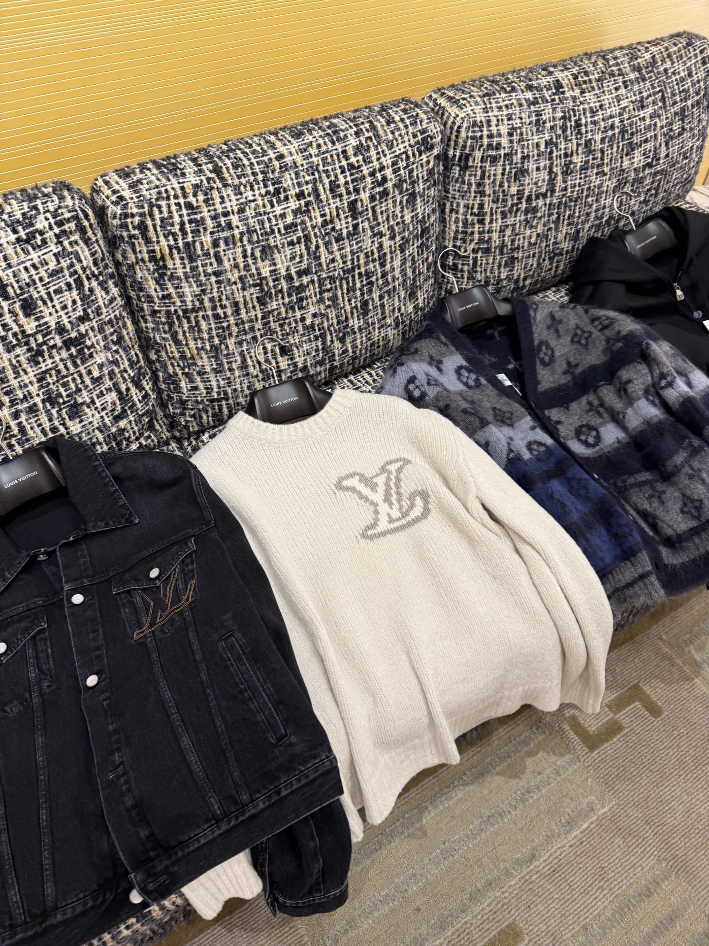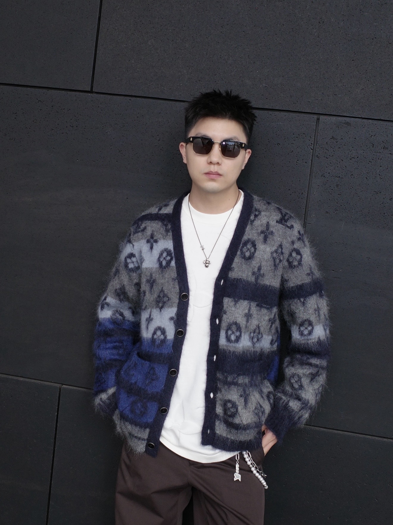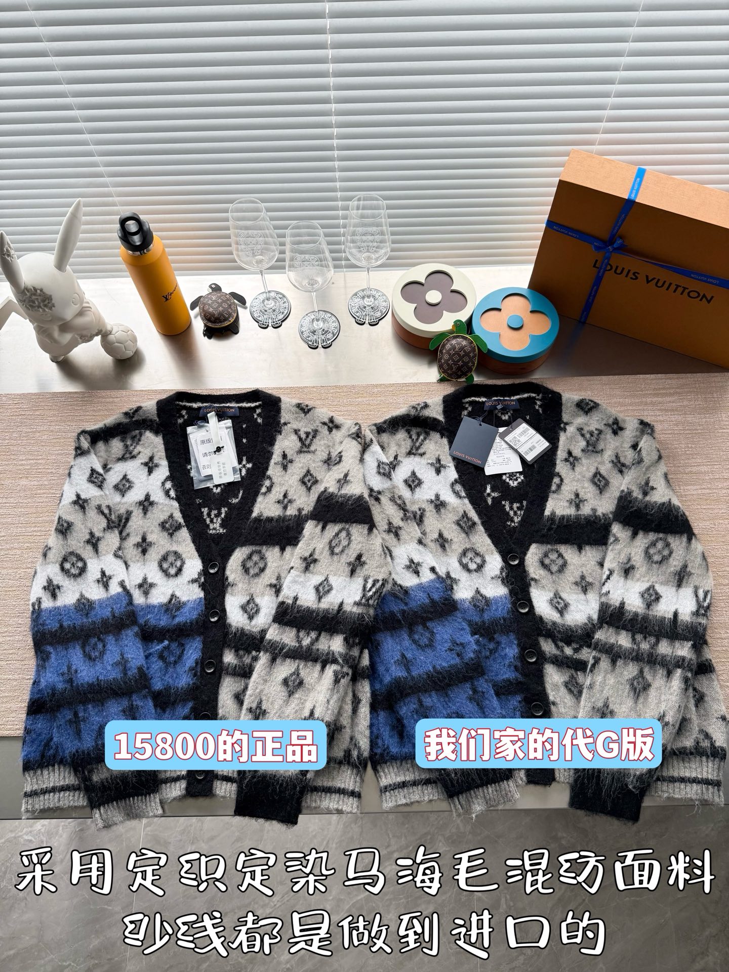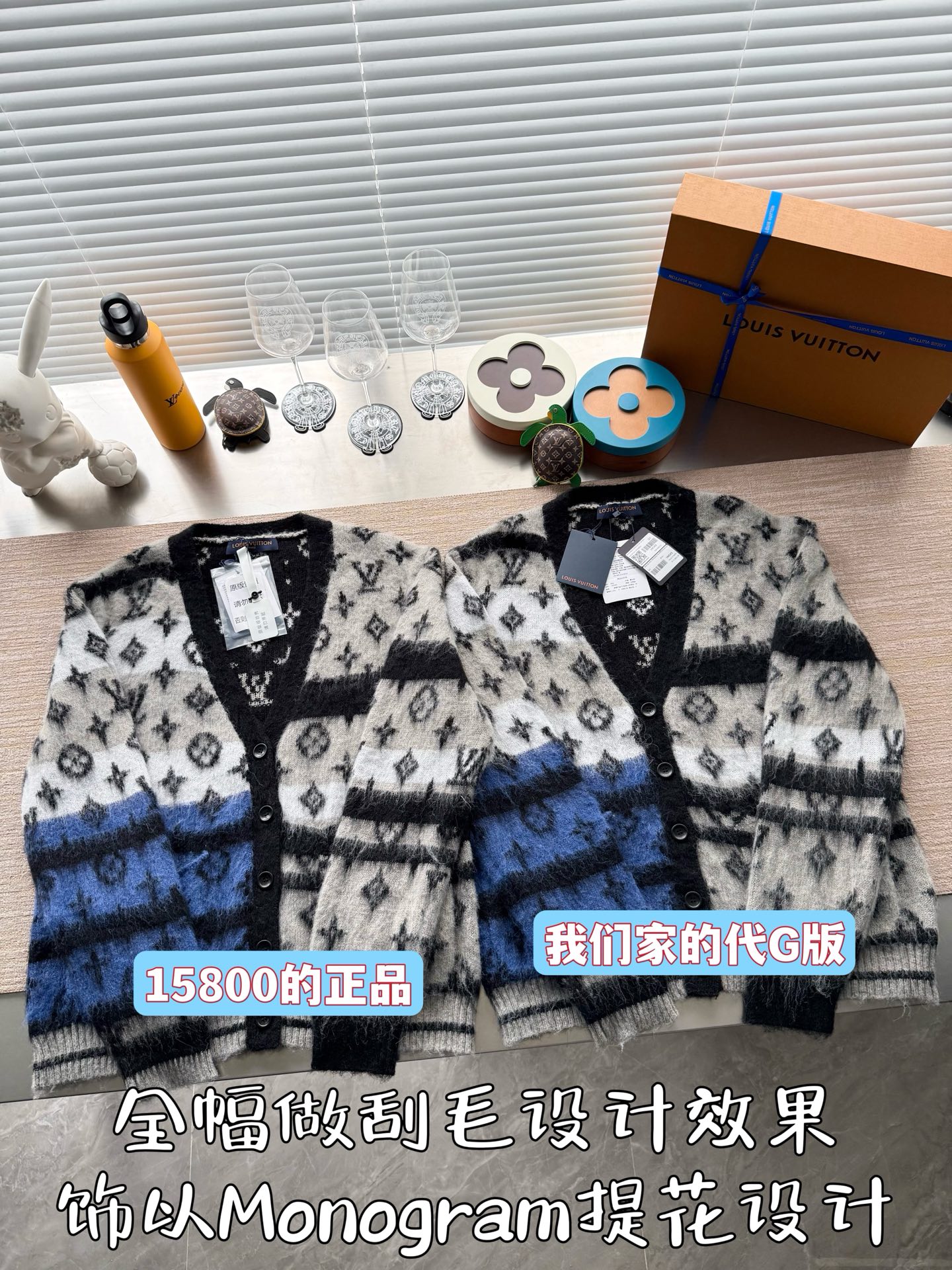 Louis Vuitton25FWMonogram提花马海毛开衫‼️整件衣服15800购买ZP拆解打造,采用定制马海毛混纺面料,意大利制造,全幅饰以Monogram提花,做挂毛工艺,门襟开模定制LV字母标识角质纽扣,前幅两边贴袋设计,定织标志性罗纹袖口 下摆,超紧密度局部编织,真正做到1:1copy 码数:S M L XL
