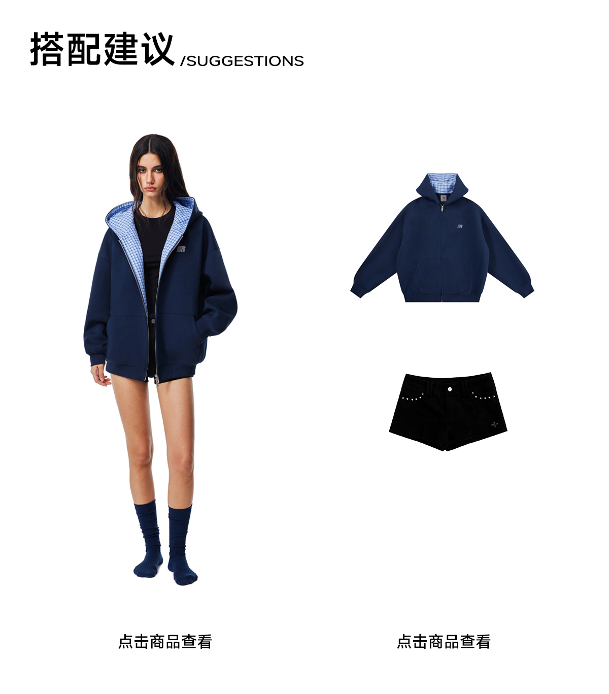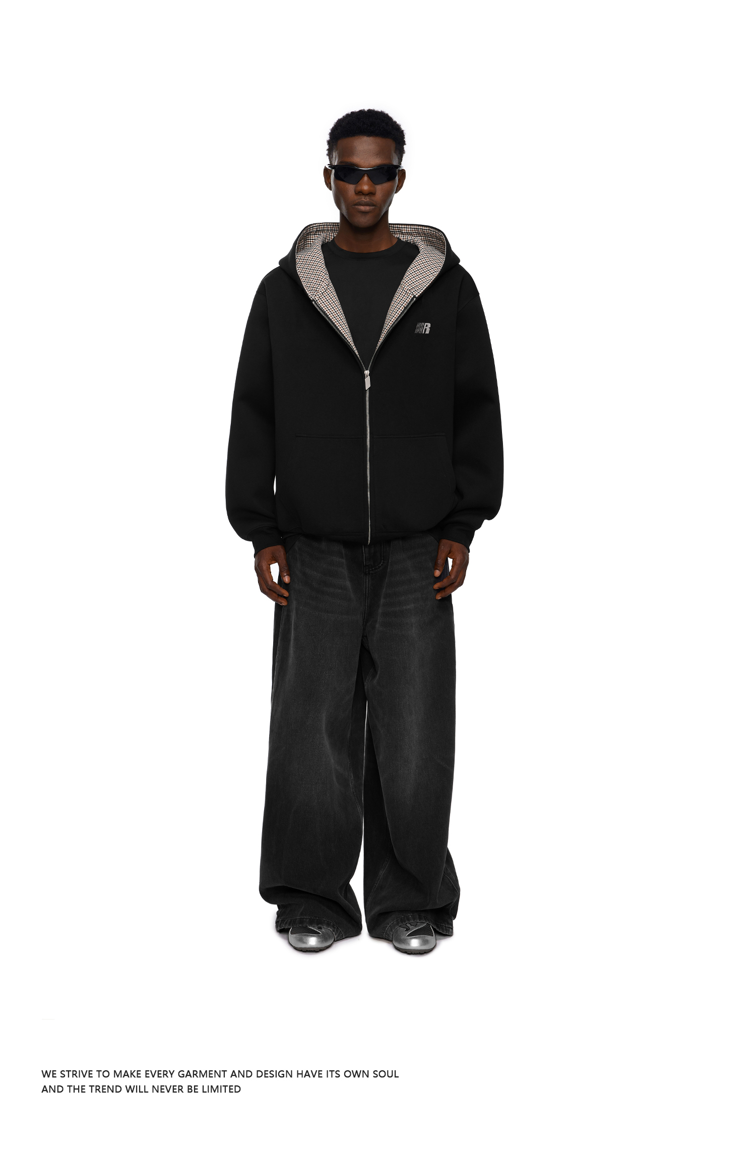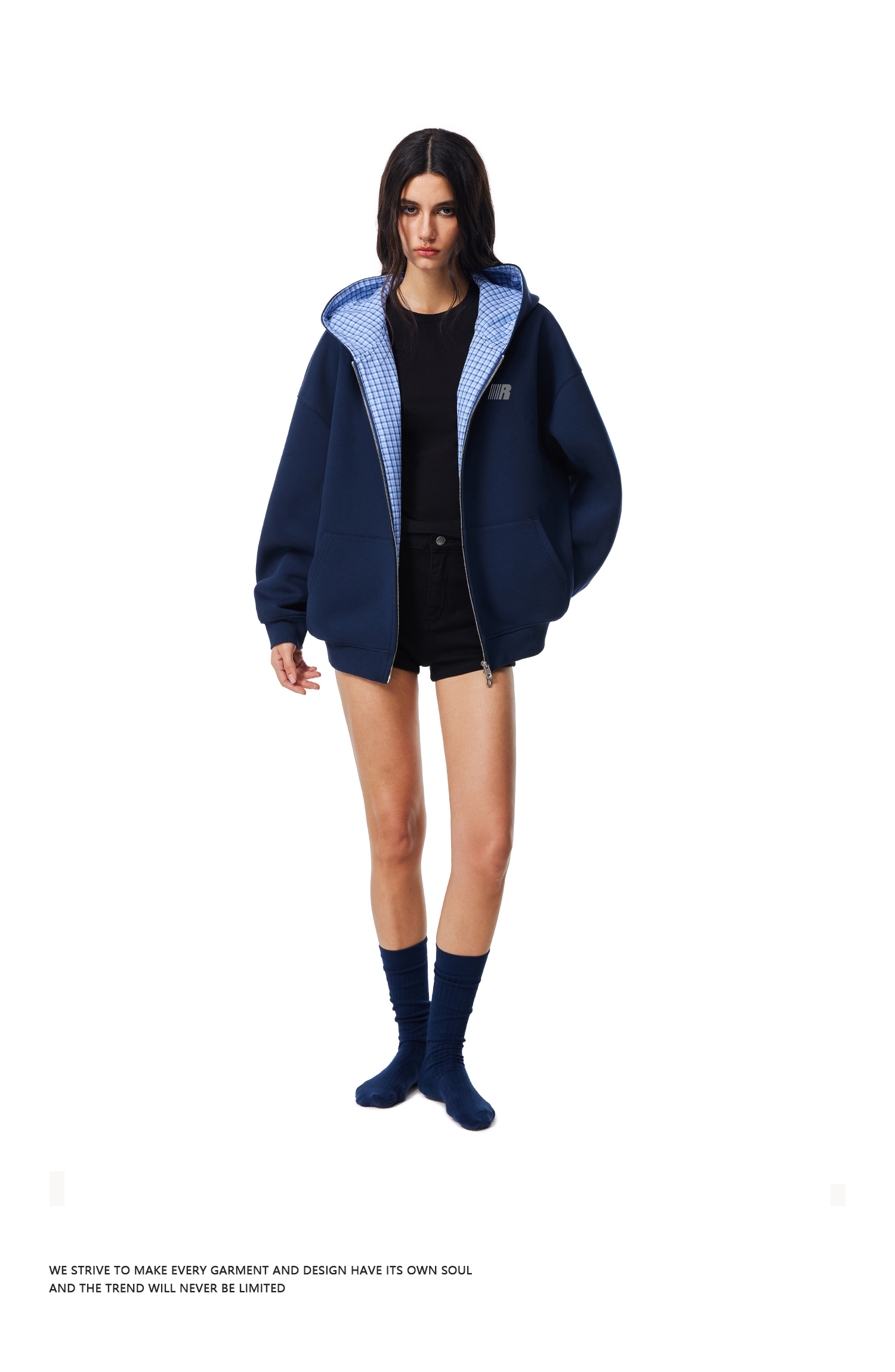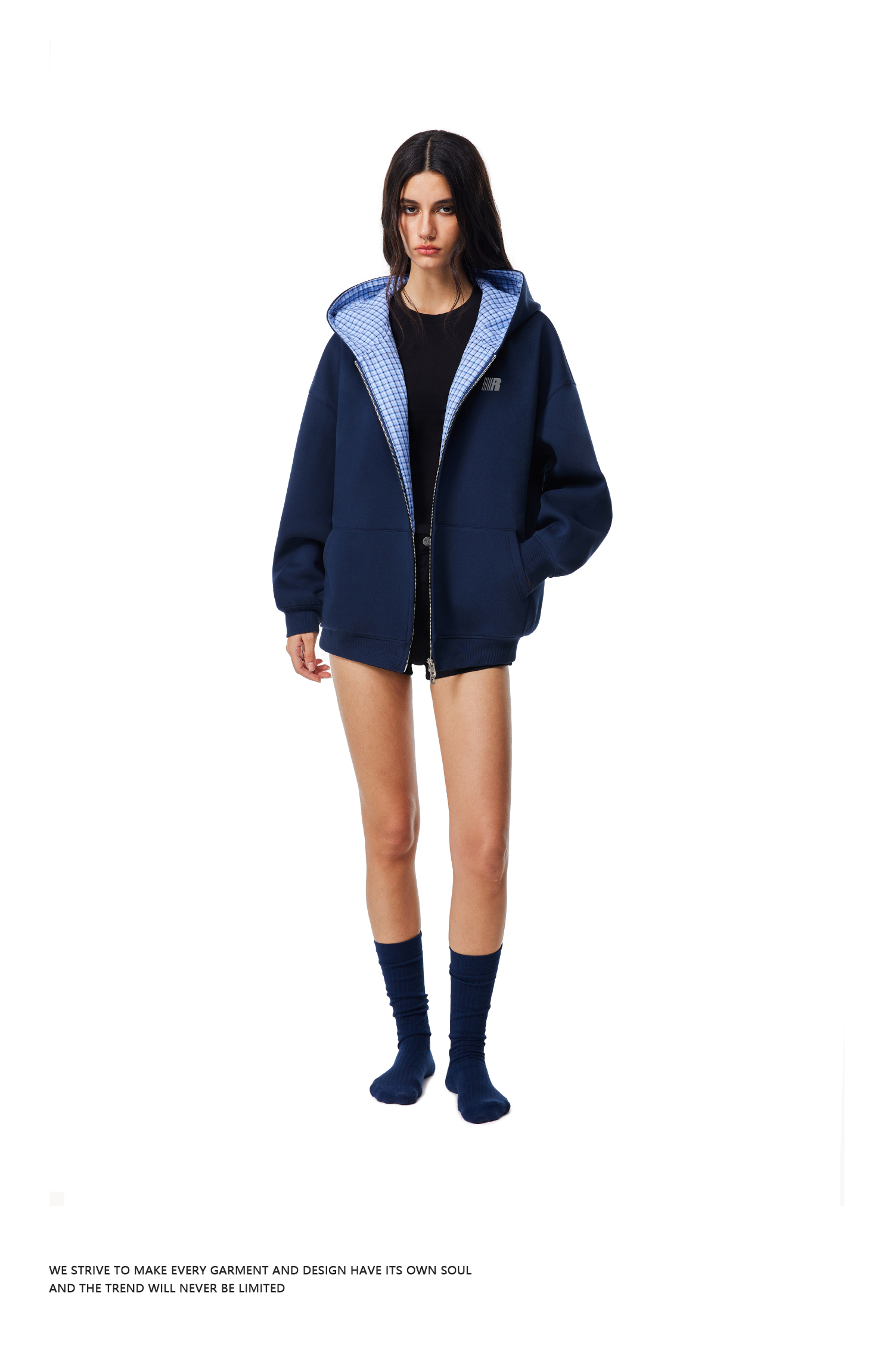 FDR官方店 R字撞色格纹连帽卫衣外套男女秋季宽松情侣装开衫上衣