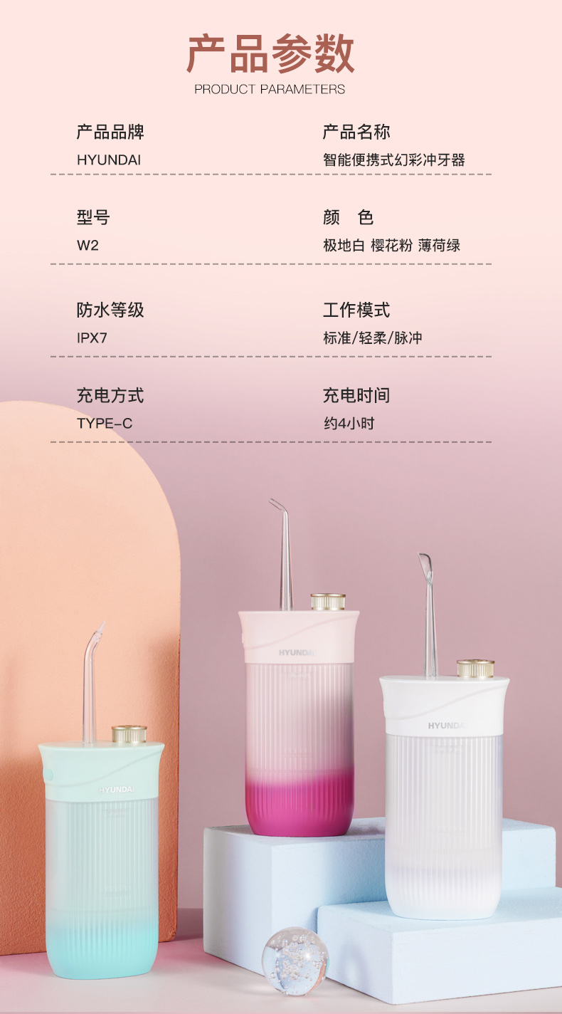 HYUNDAI 电动冲牙器便携式家用洗牙器W2