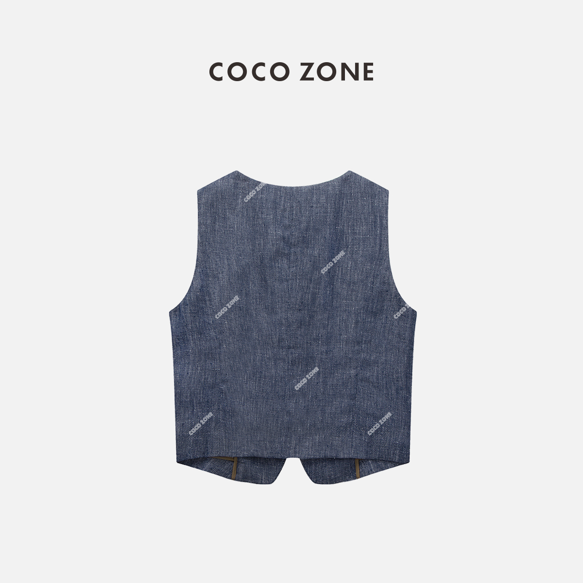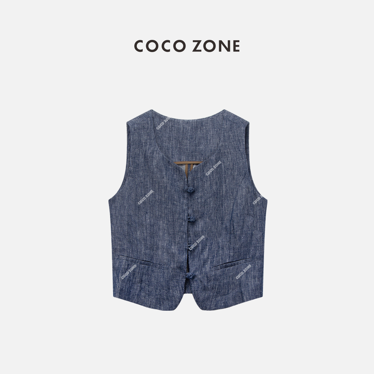 COCO ZONE"夏洛"2024复古国风单排扣马夹高级感显瘦无袖上衣CC1B0797