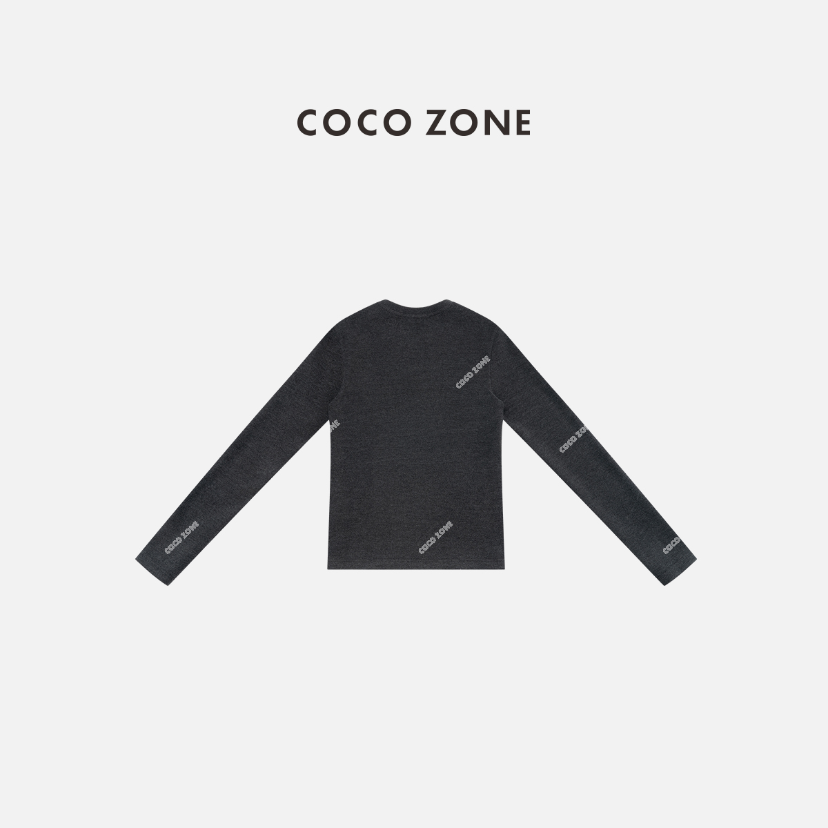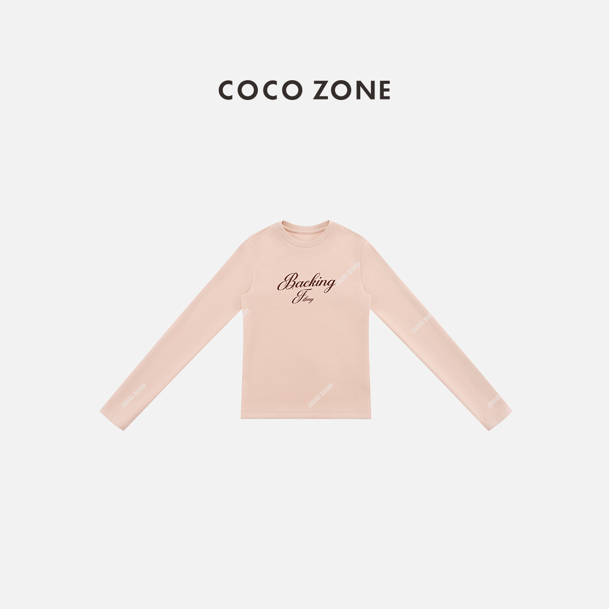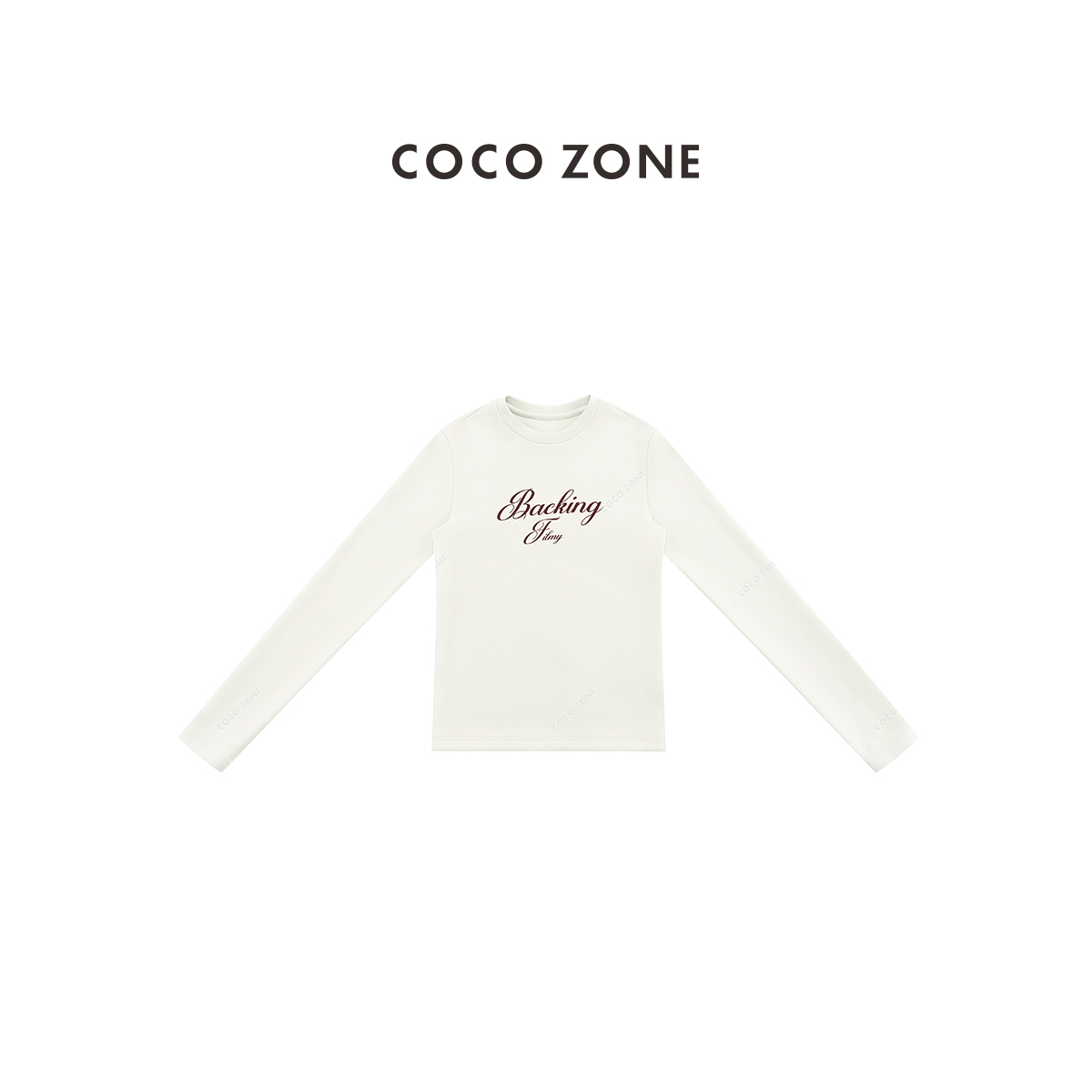 COCO ZONE 秋冬双面磨毛字母印花长袖打底衫CC2D3391