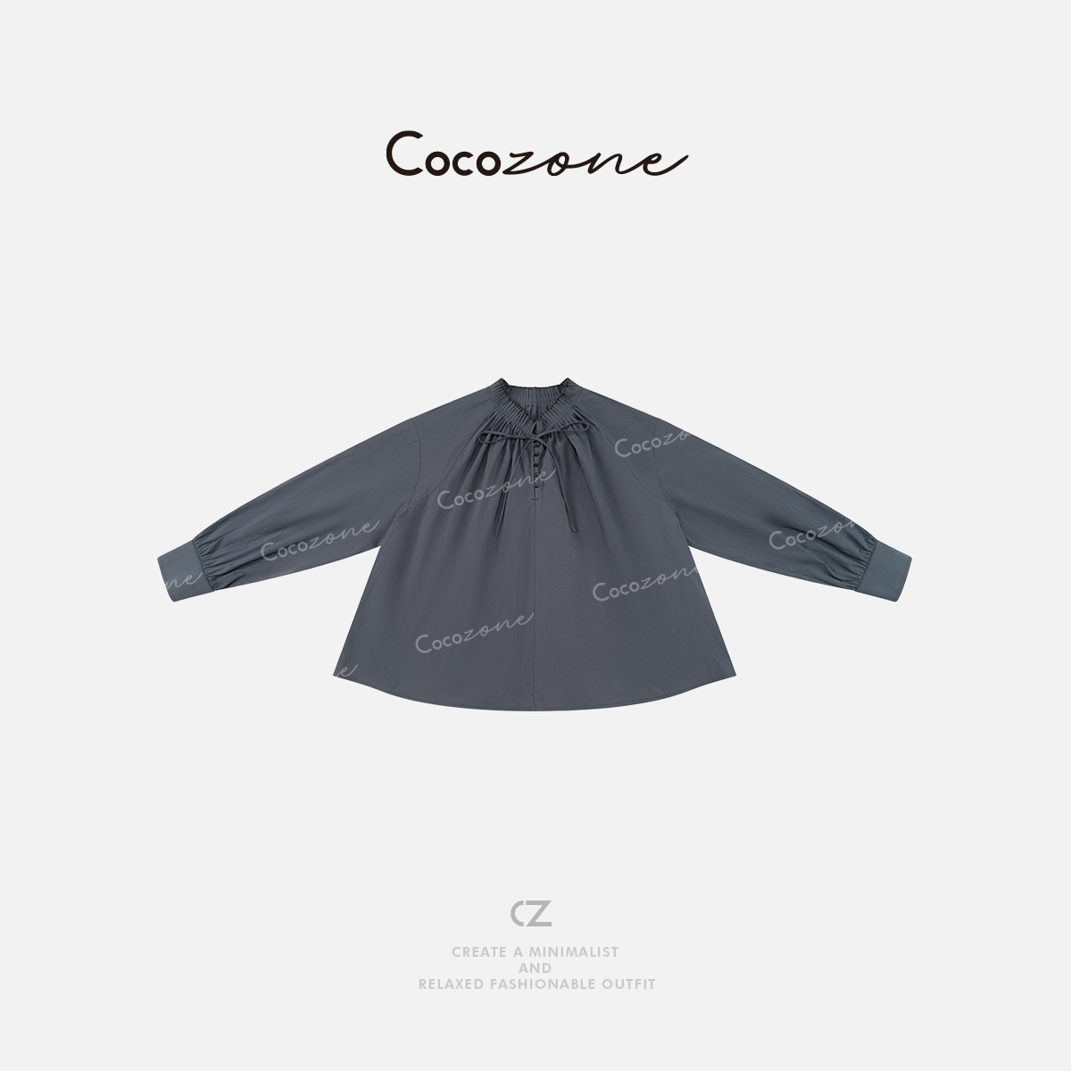 COCO ZONE 刘一一 【莱赛尔棉】定制色抽绳圆领长袖衬衫CD2A0390