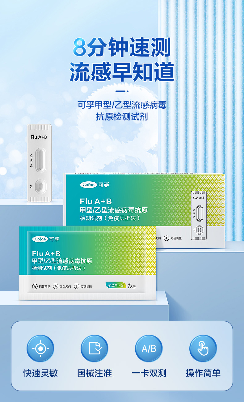 可孚甲流乙流测试纸 流感检测试剂盒 自测