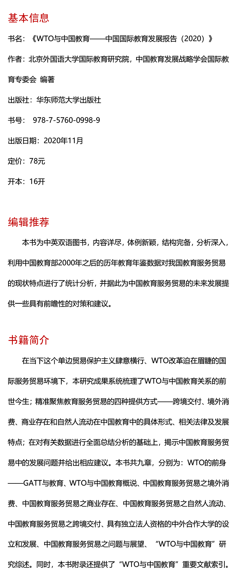 WTO与中国教育 中国国际教育发展报告 2020 中英双语 正版 华东师范大学出版社