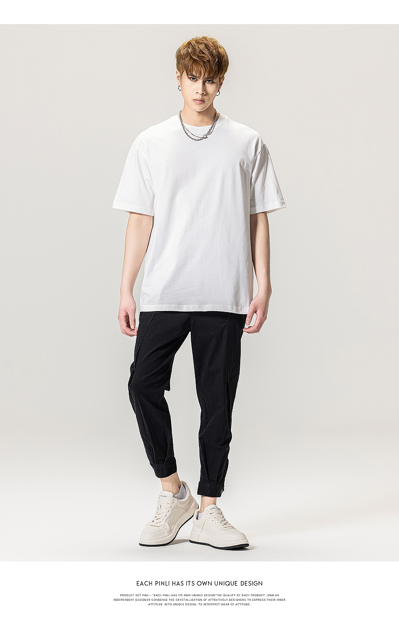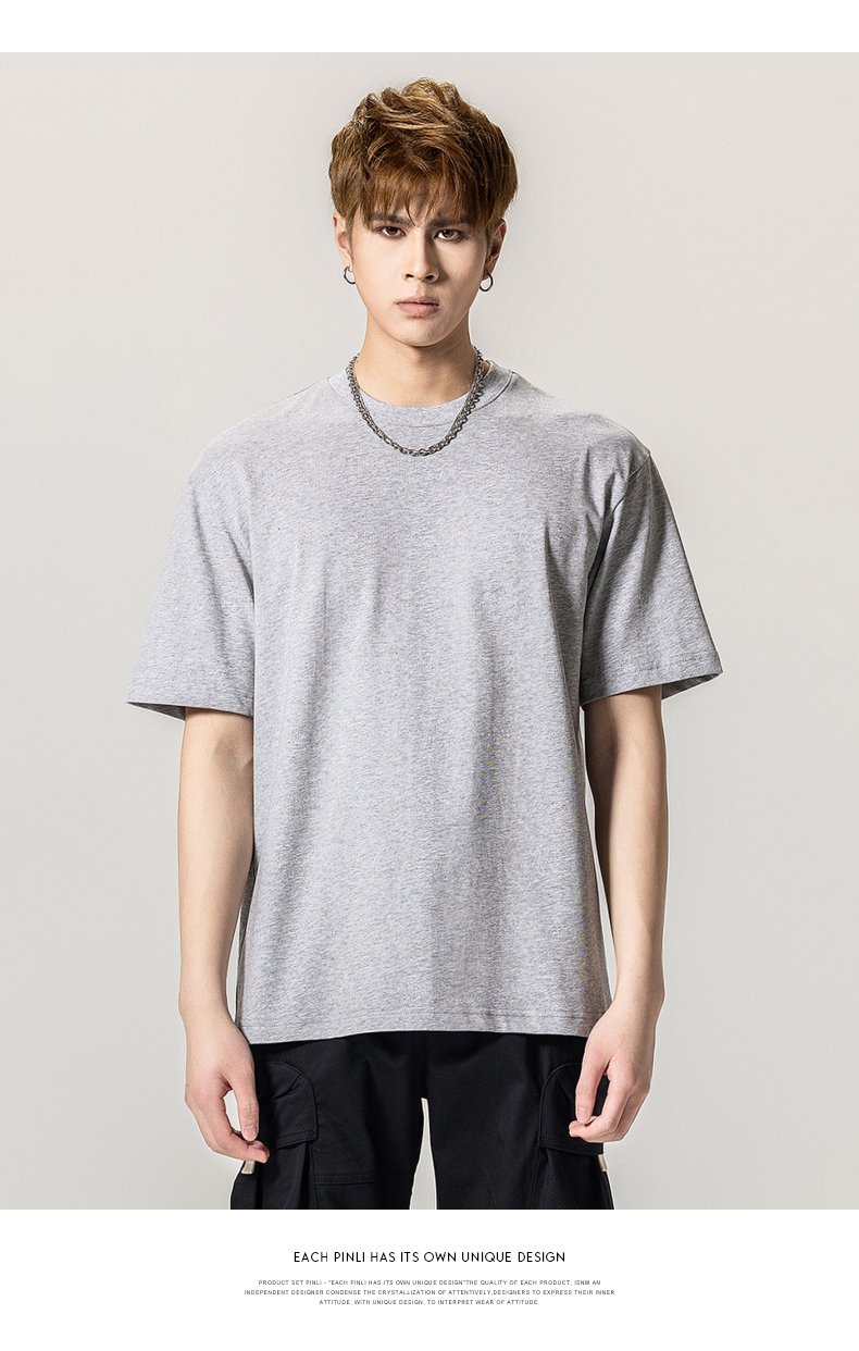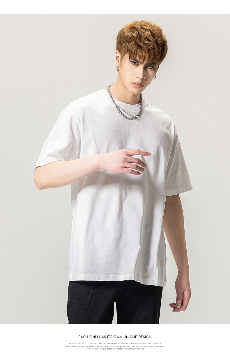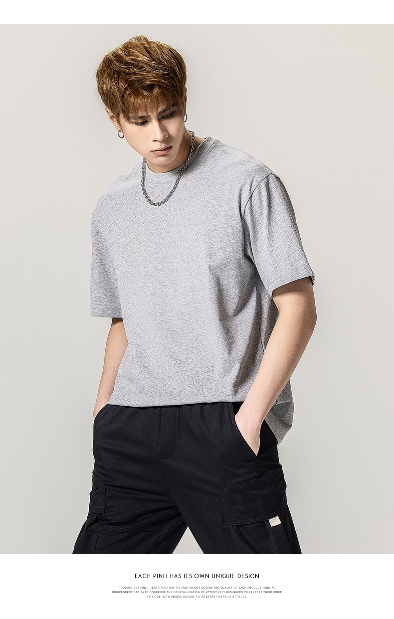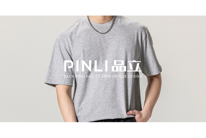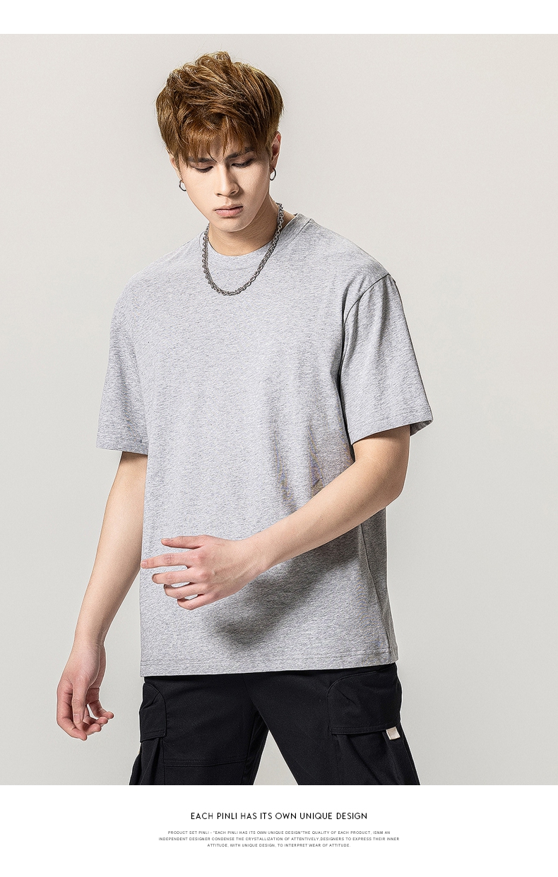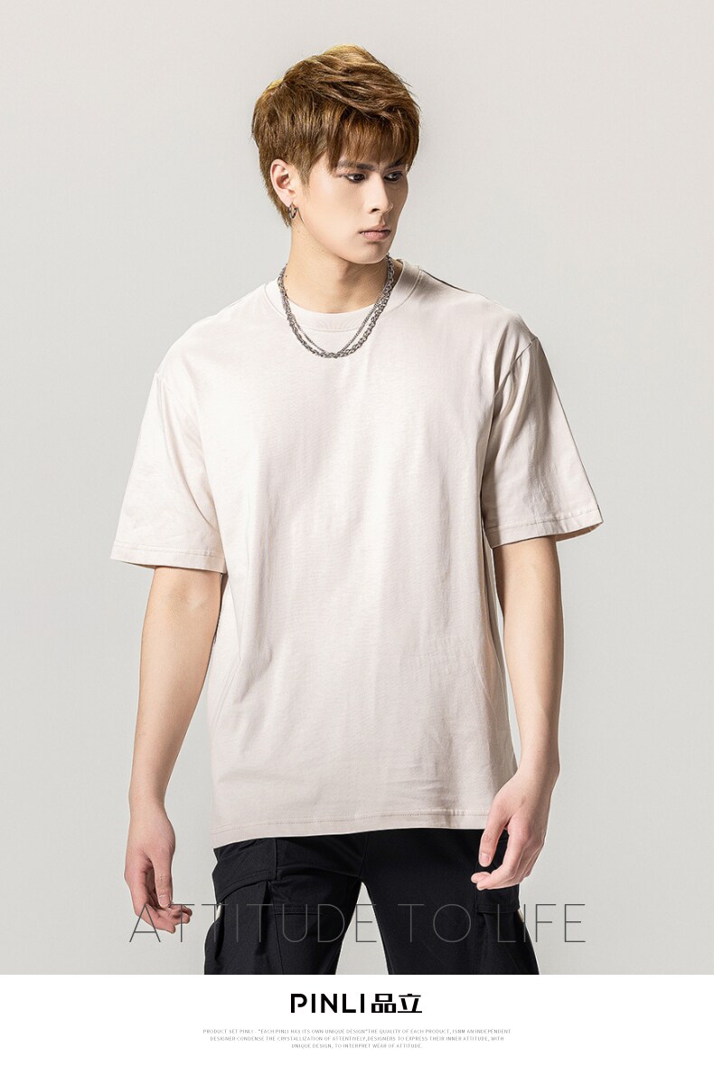 PINLI品立夏季新款男士圆领落肩纯色短袖T恤打底衫GD231111021
