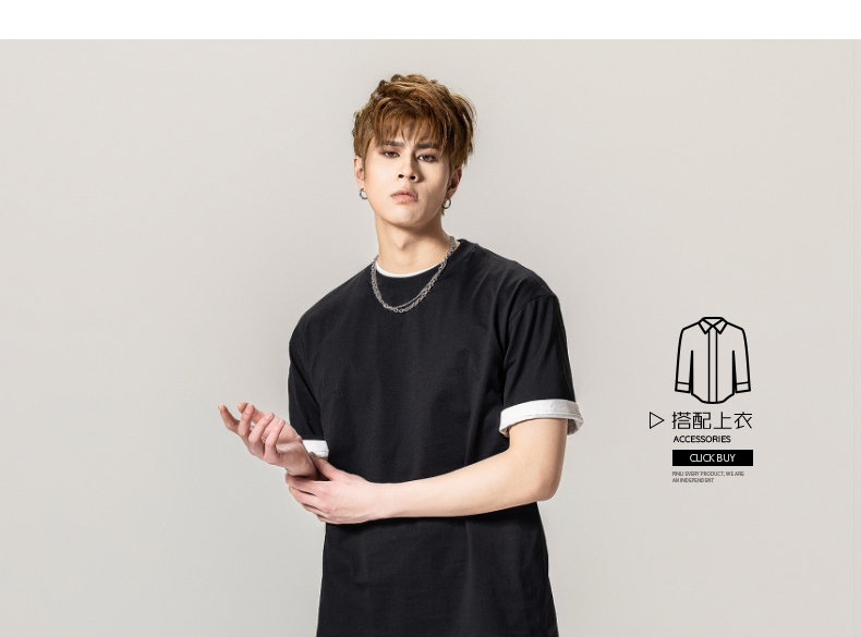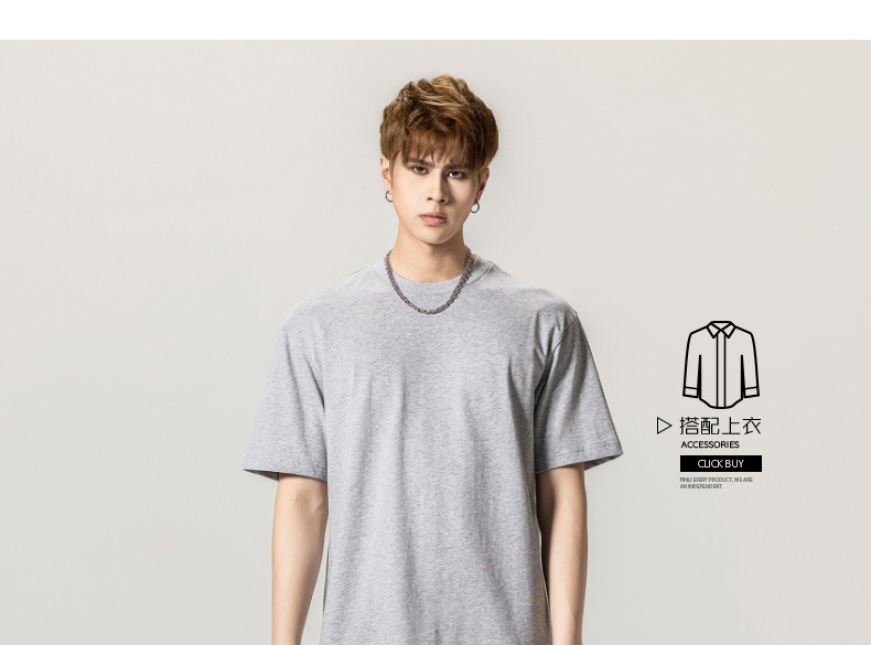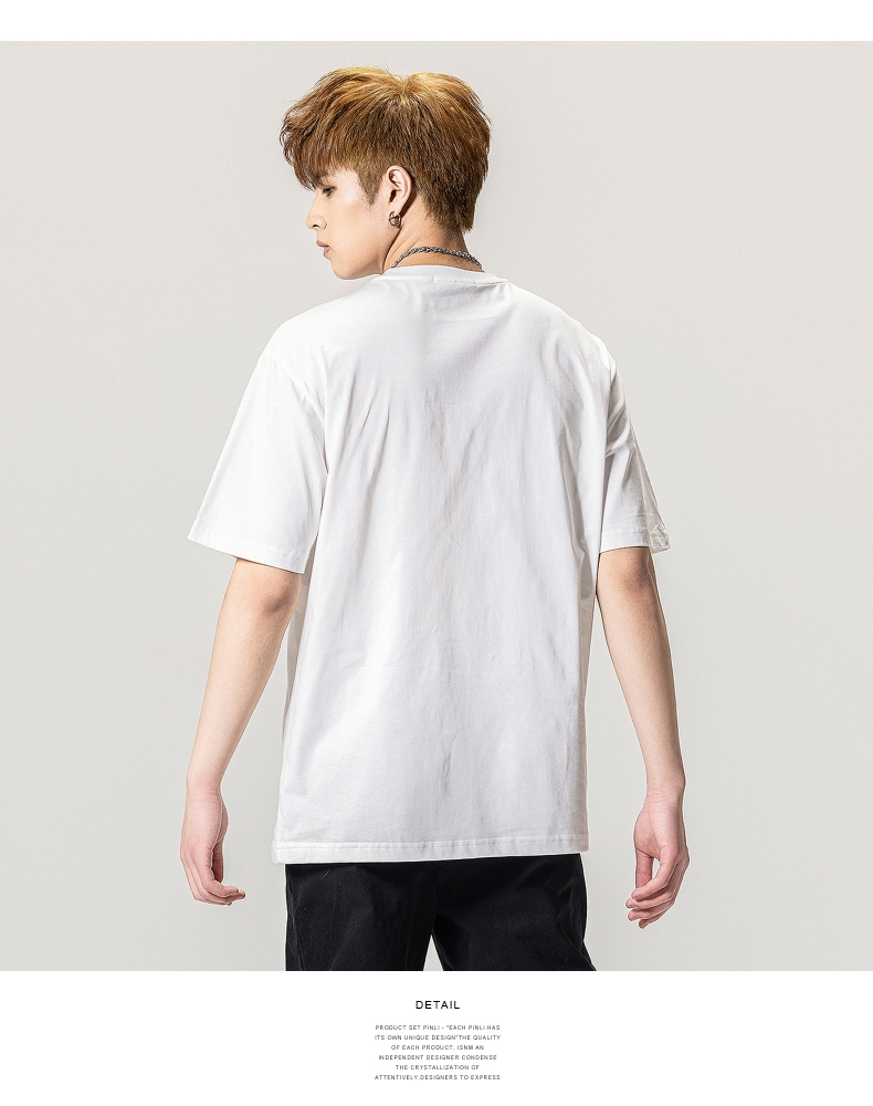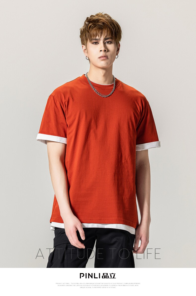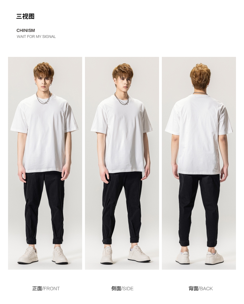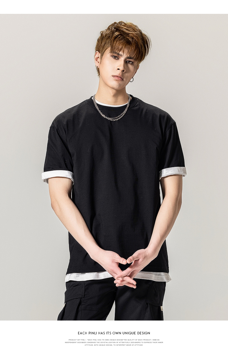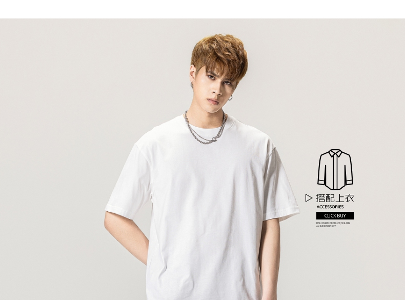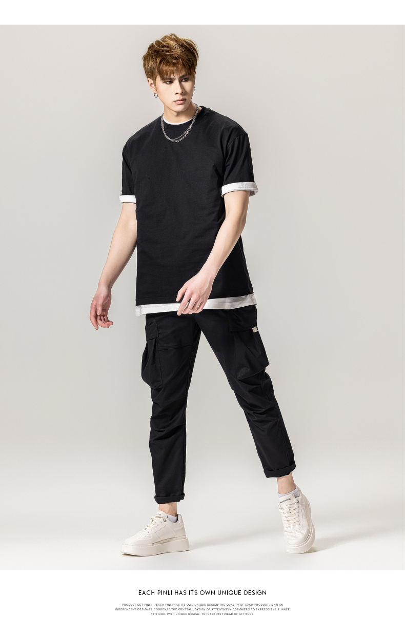 PINLI品立夏季新款男士圆领落肩纯色短袖T恤打底衫GD231111021