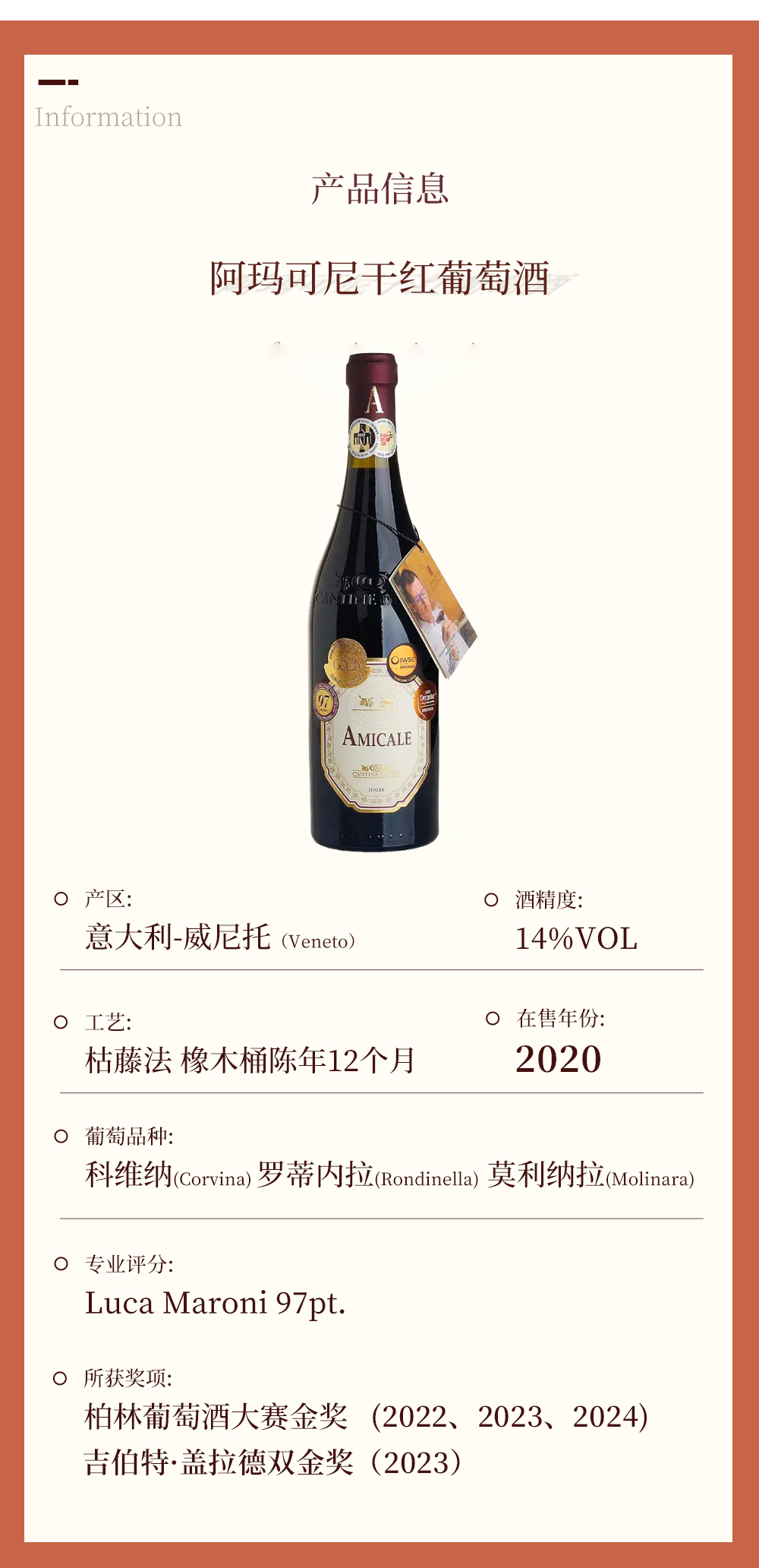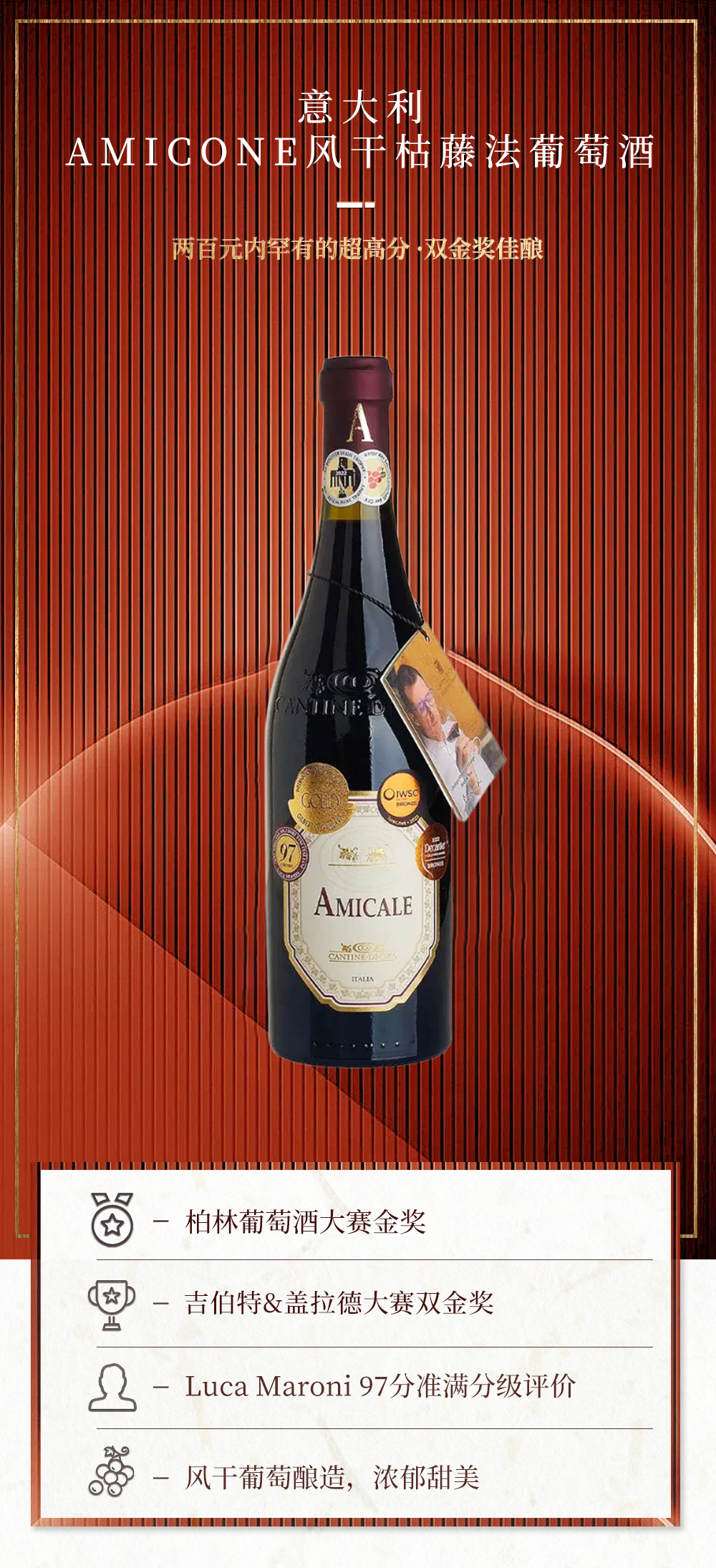 【97分+多金奖】意大利阿玛可尼 饱满凝炼甘口的阿玛罗尼风格 Cantine Di Ora Amicale 2020