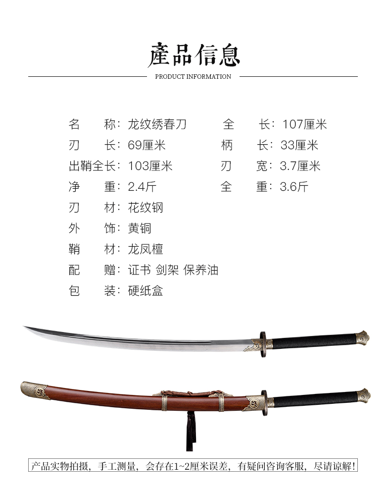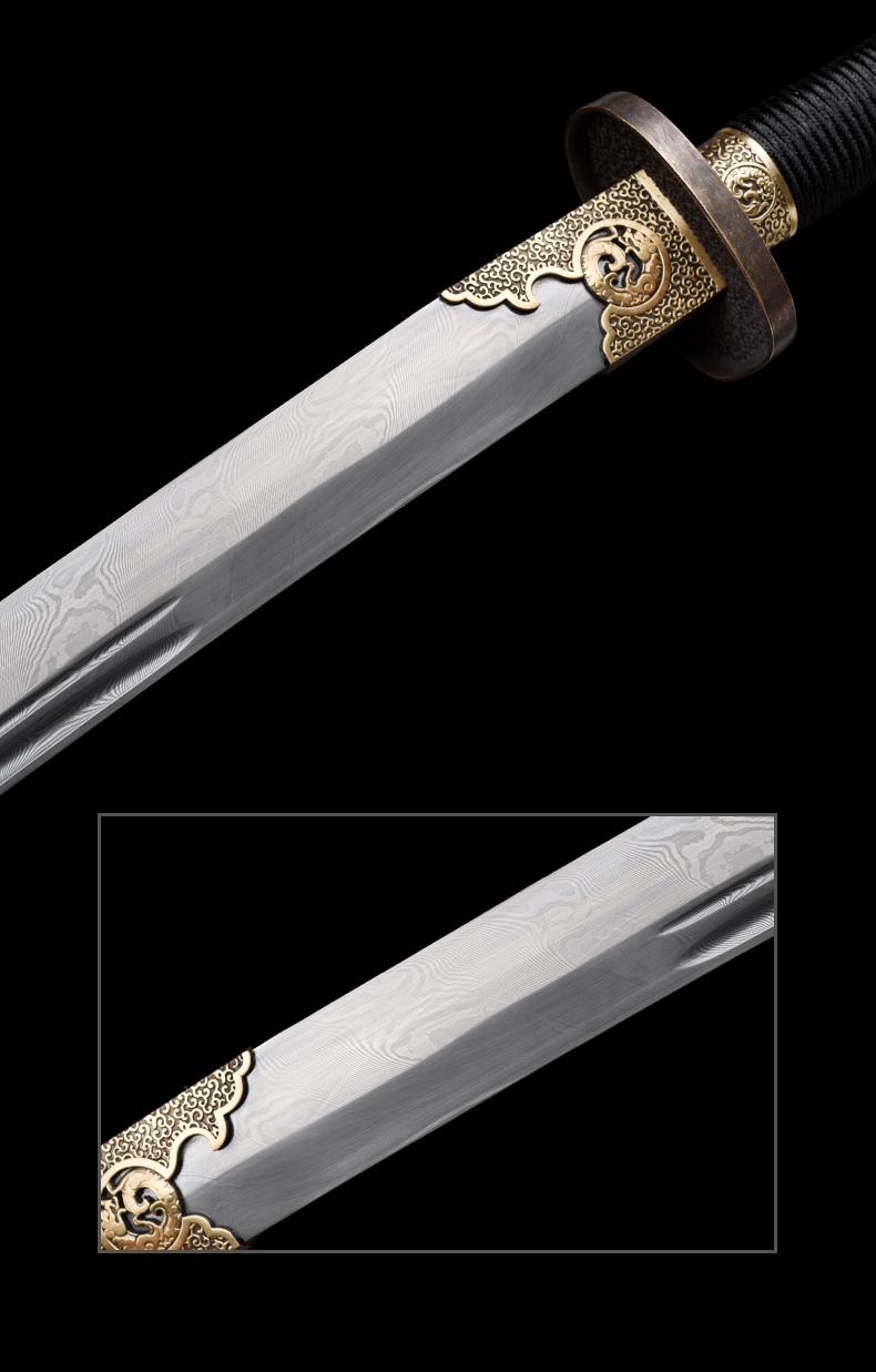 龙纹绣春刀 花纹钢 龙泉沈广隆剑手工一体刀剑 传统收藏剑 未开刃