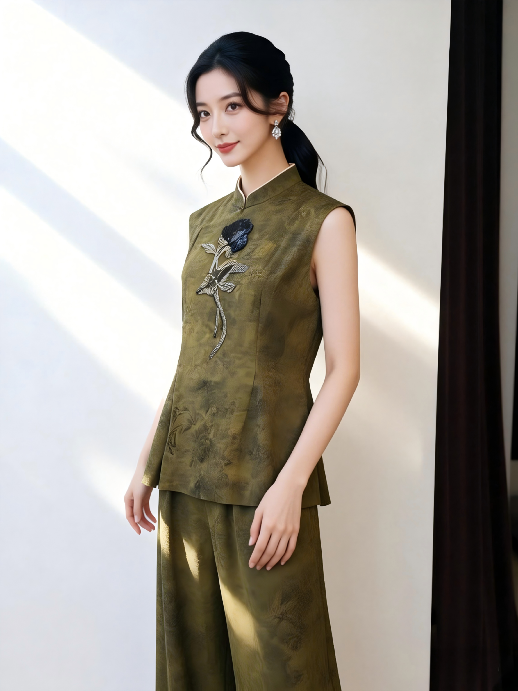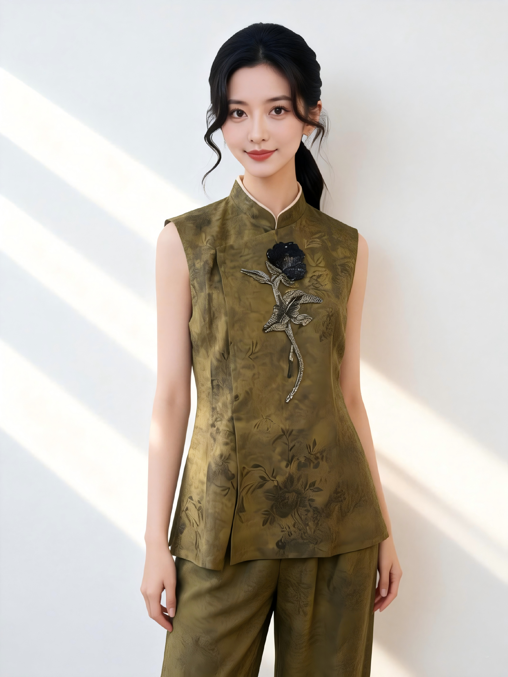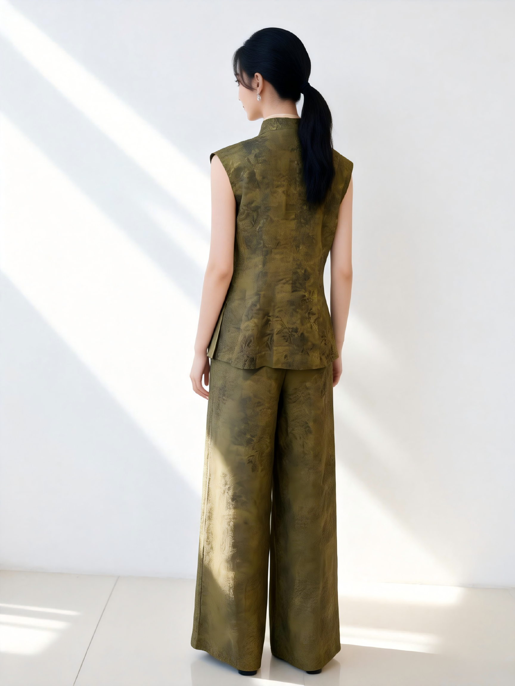 SC1AL05_枣核色_裤子_春秋_新中式提花肌理感高腰阔腿_高级女装_BERNIEELEN 伯妮斯茵