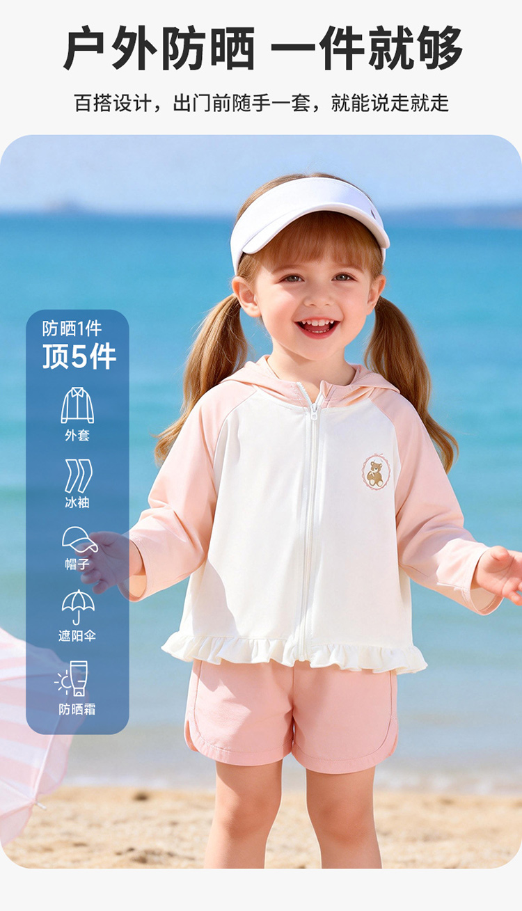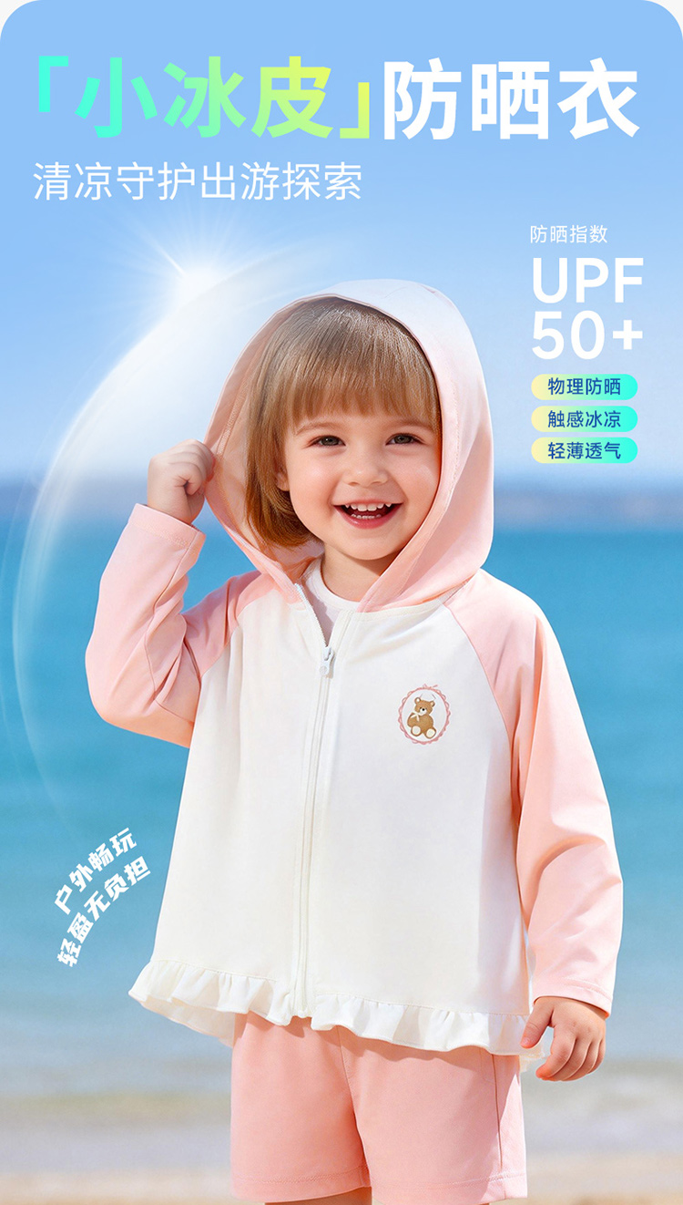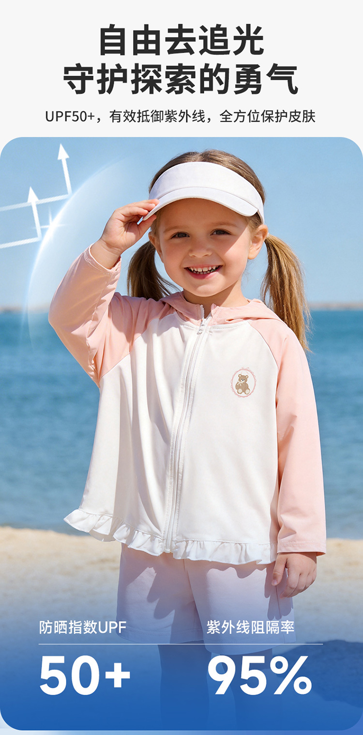 贝贝怡女童夏日防晒衣皮肤衣外套UPF50防晒服ZB2FS006