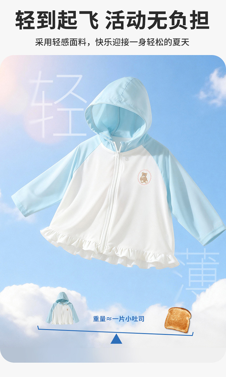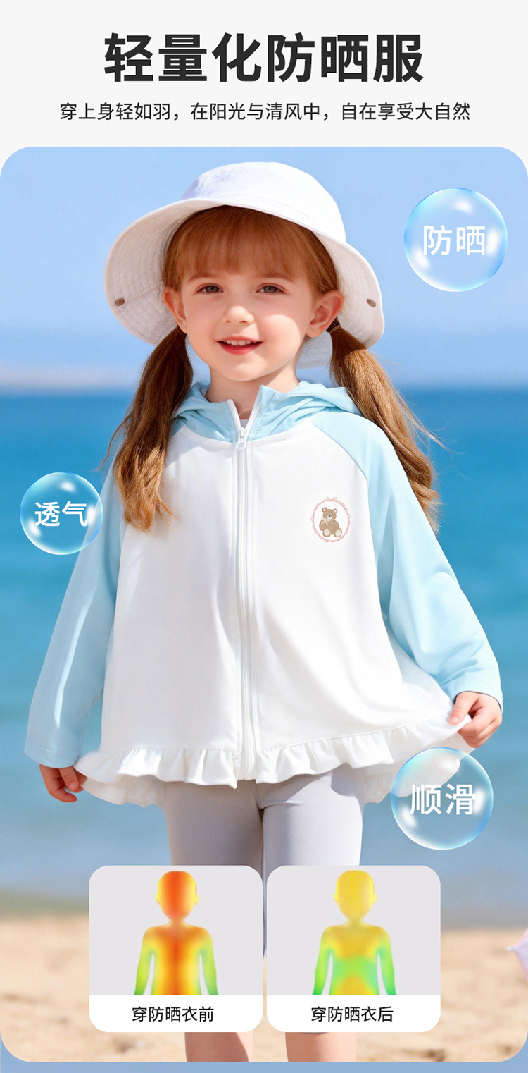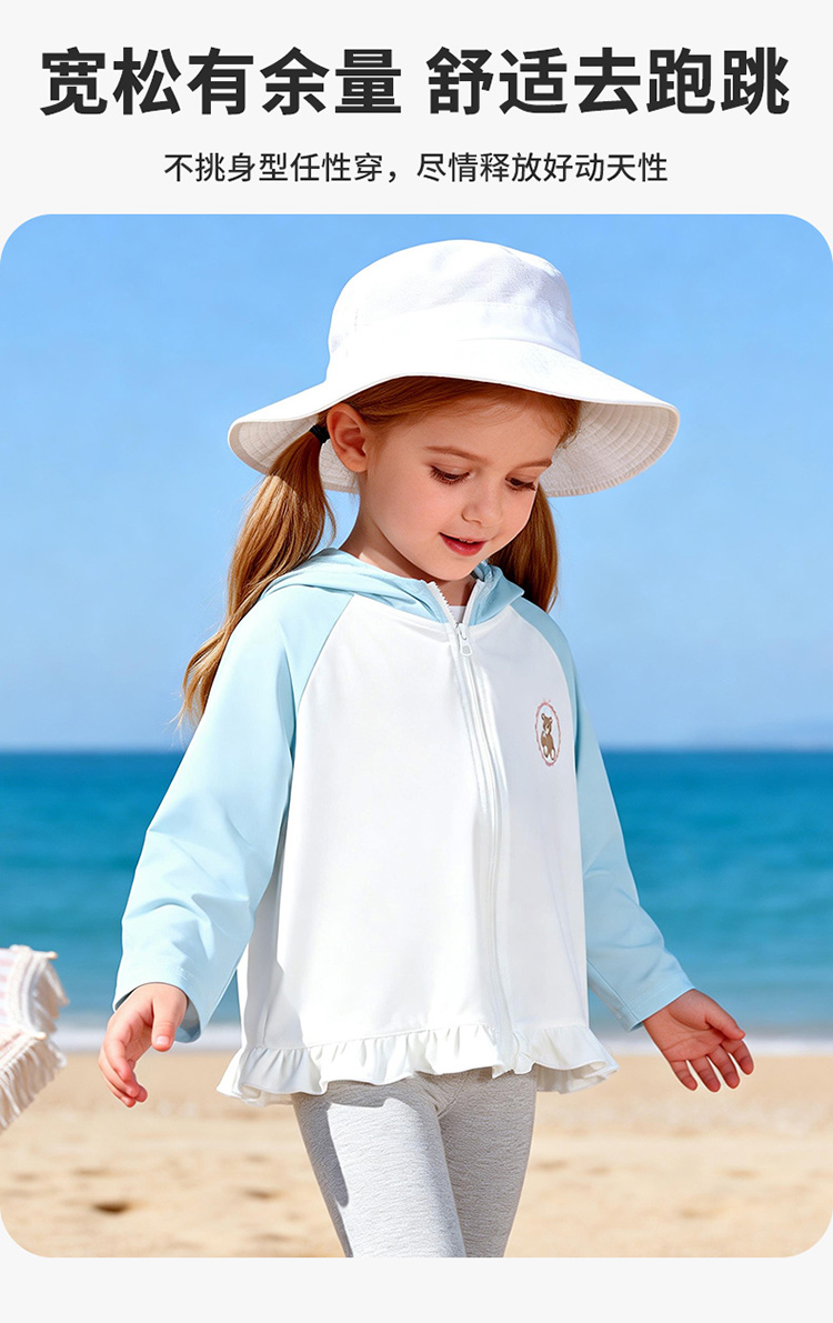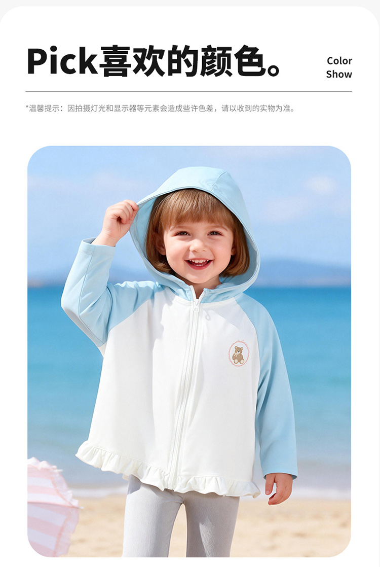 贝贝怡女童夏日防晒衣皮肤衣外套UPF50防晒服ZB2FS006