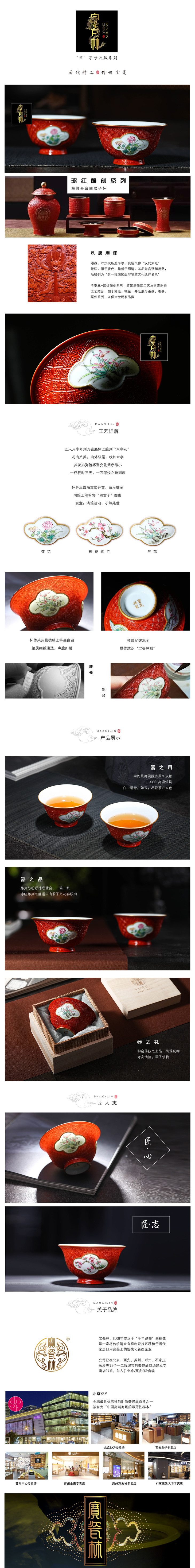 宝瓷林 | 漆红雕刻 · 粉彩开窗四君子杯 纯手工主人杯