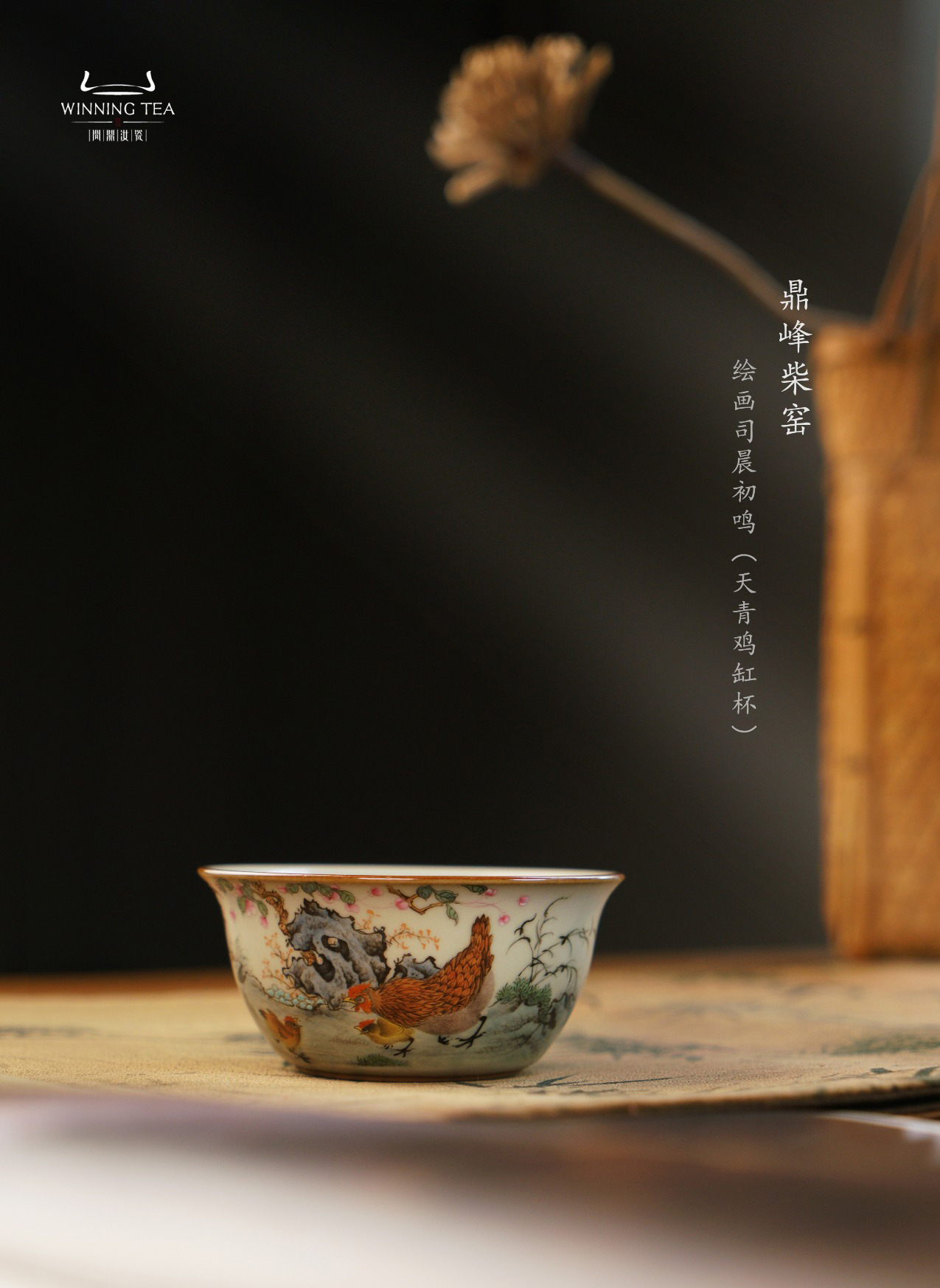 问鼎汝瓷鼎峰柴窑天青鸡缸杯(绘画司晨初鸣)