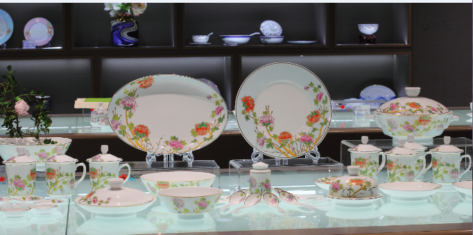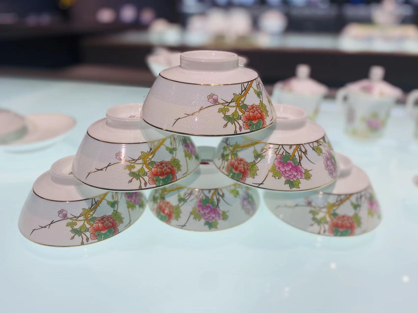 景德镇陶瓷 国瓷红叶 86头花想容马蹄系列中餐具