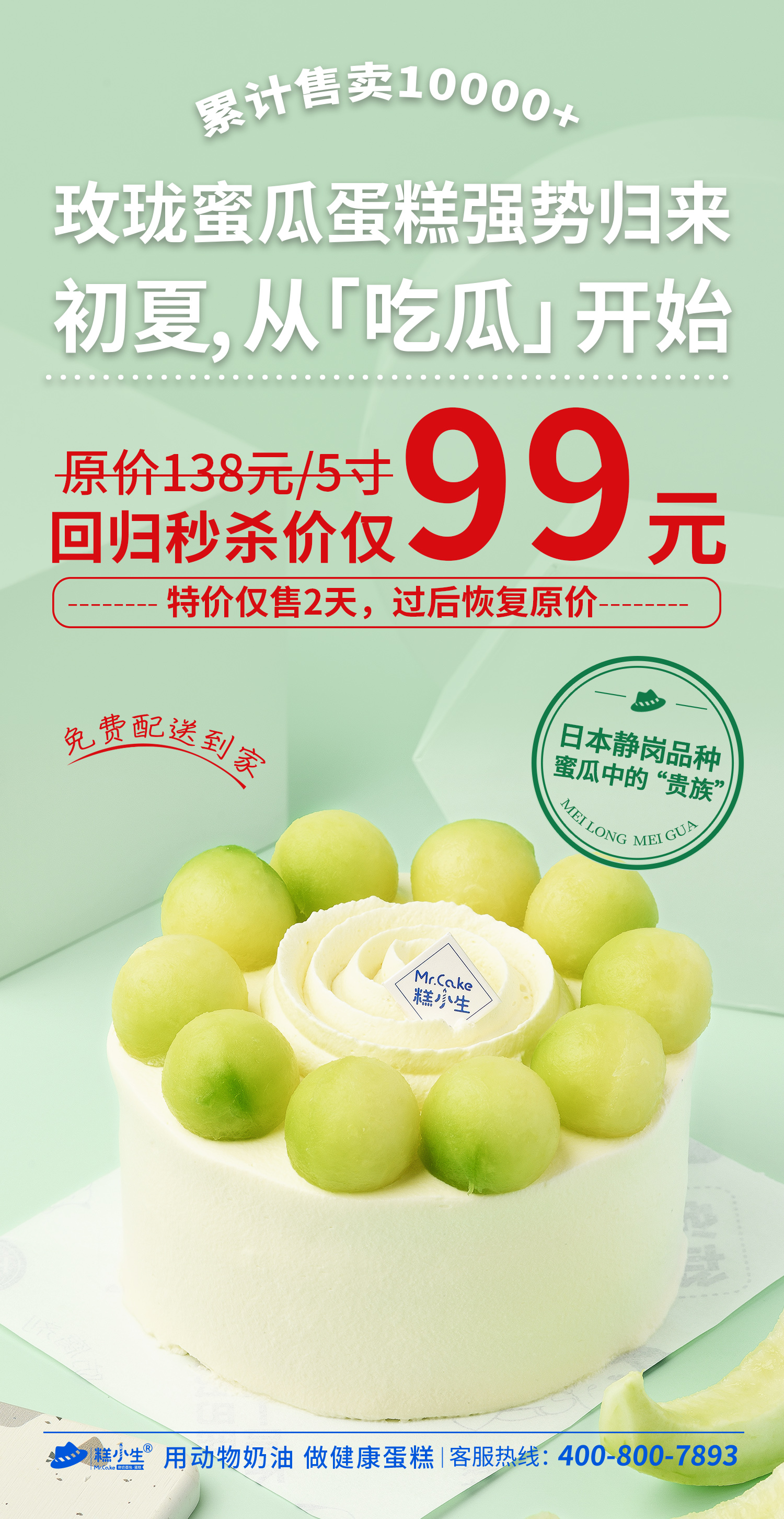 立减39元 - 夏季爆款【玫珑蜜瓜蛋糕】回归上市!初夏,从吃瓜开始,清爽玫珑蜜瓜+新西兰动物奶油的完美结合!