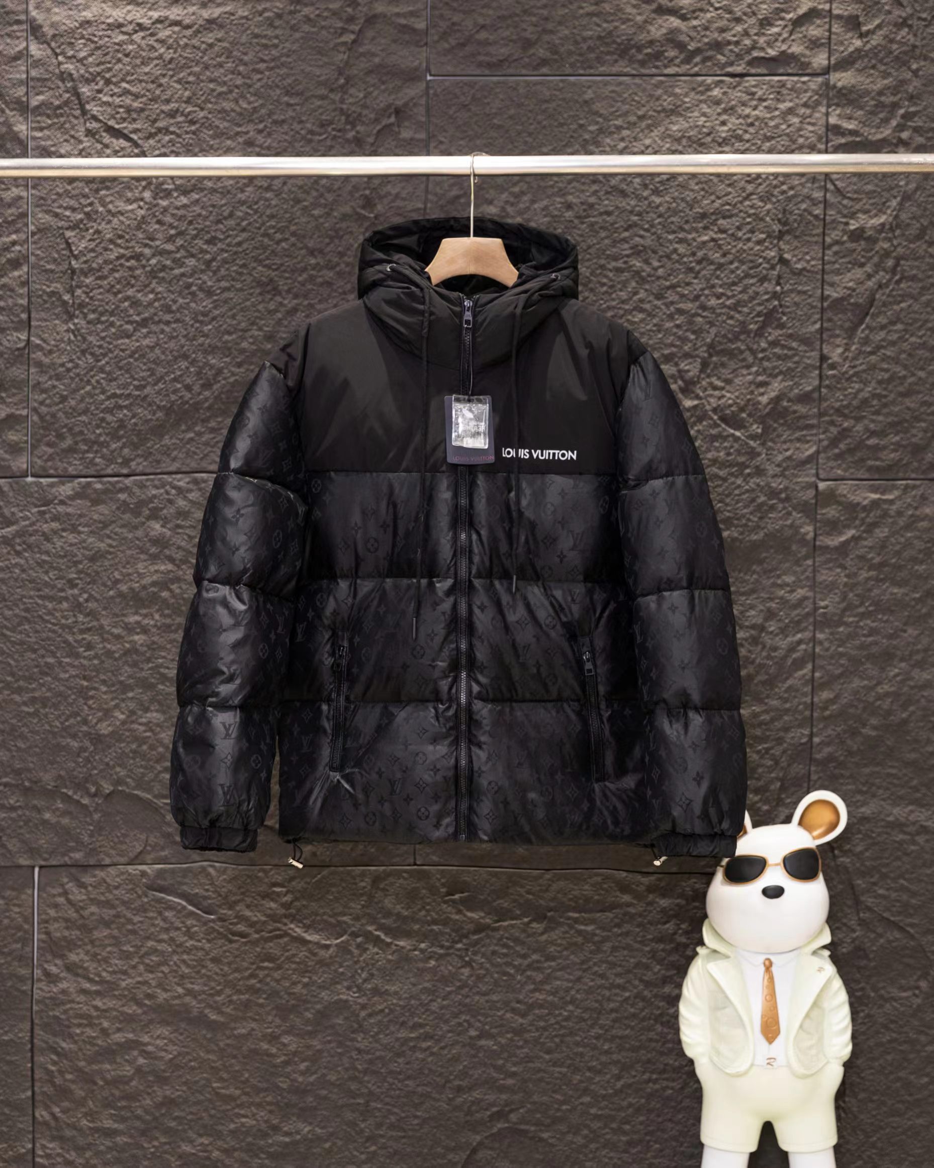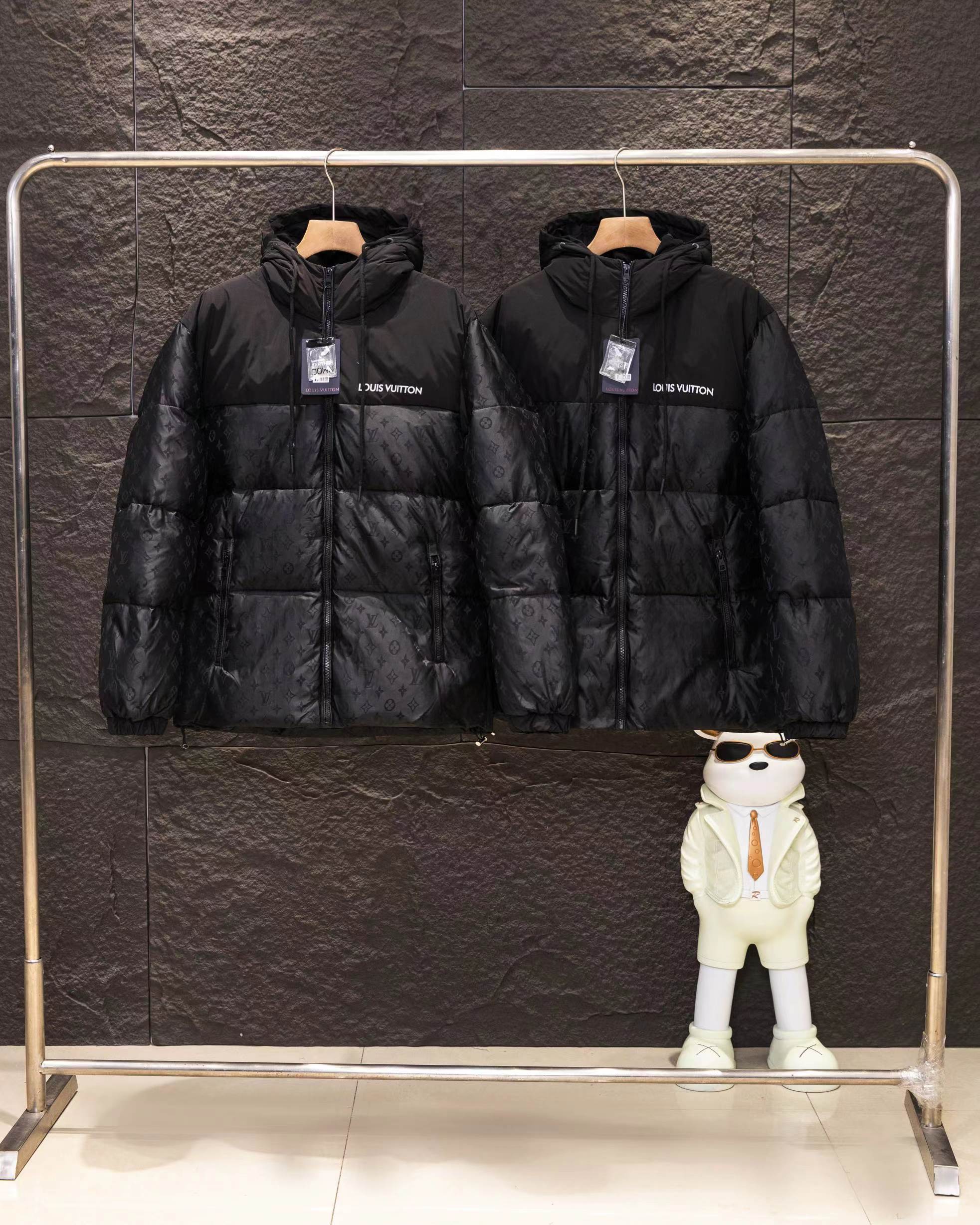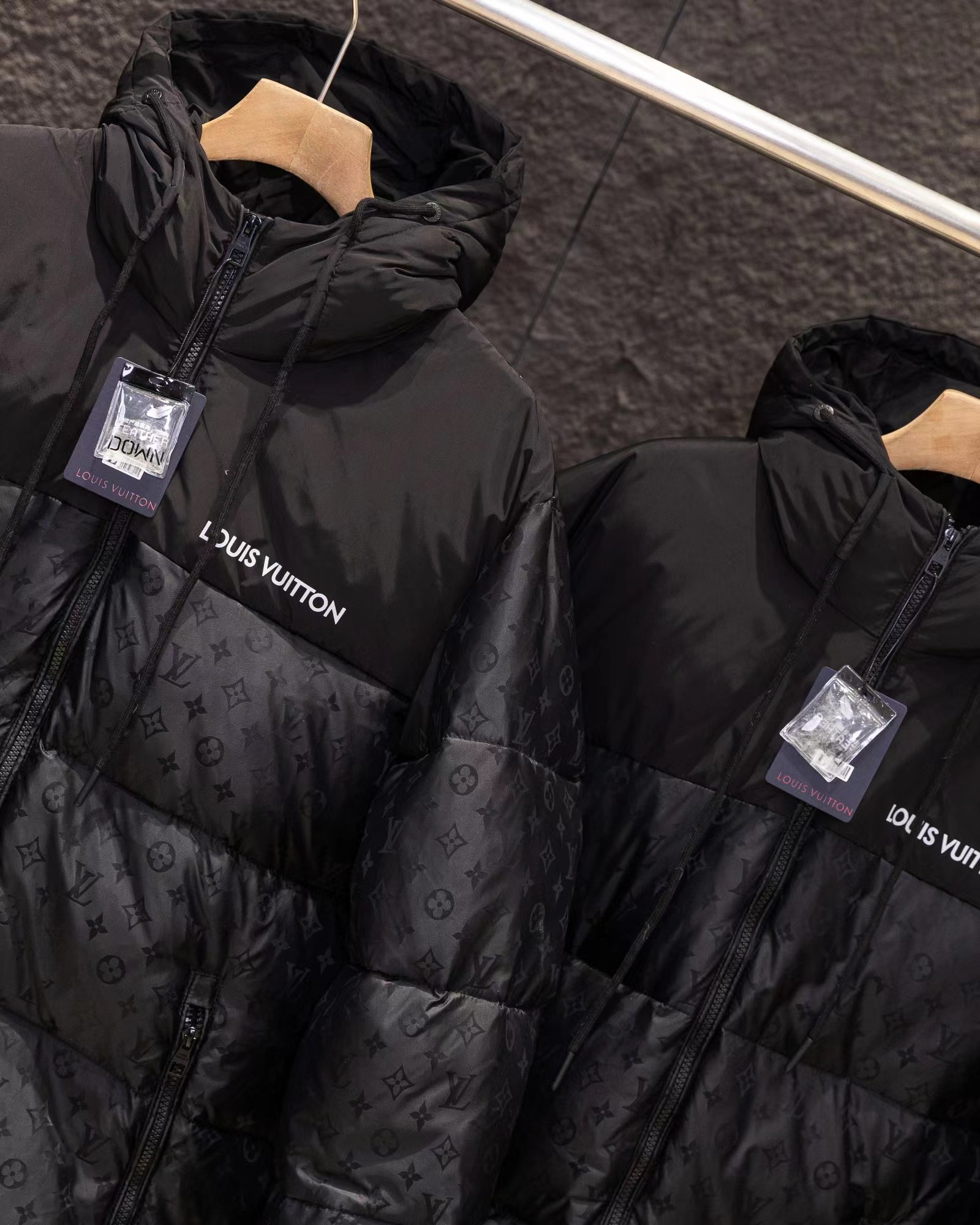 满印拼接老花logo运动款加厚连帽羽绒服!男女同款!面料:定制一致高密度提花满印面料双层内胆不跑绒 填充:填充物为国标白鸭绒蓬松度拉满高达330g保暖效果ji佳