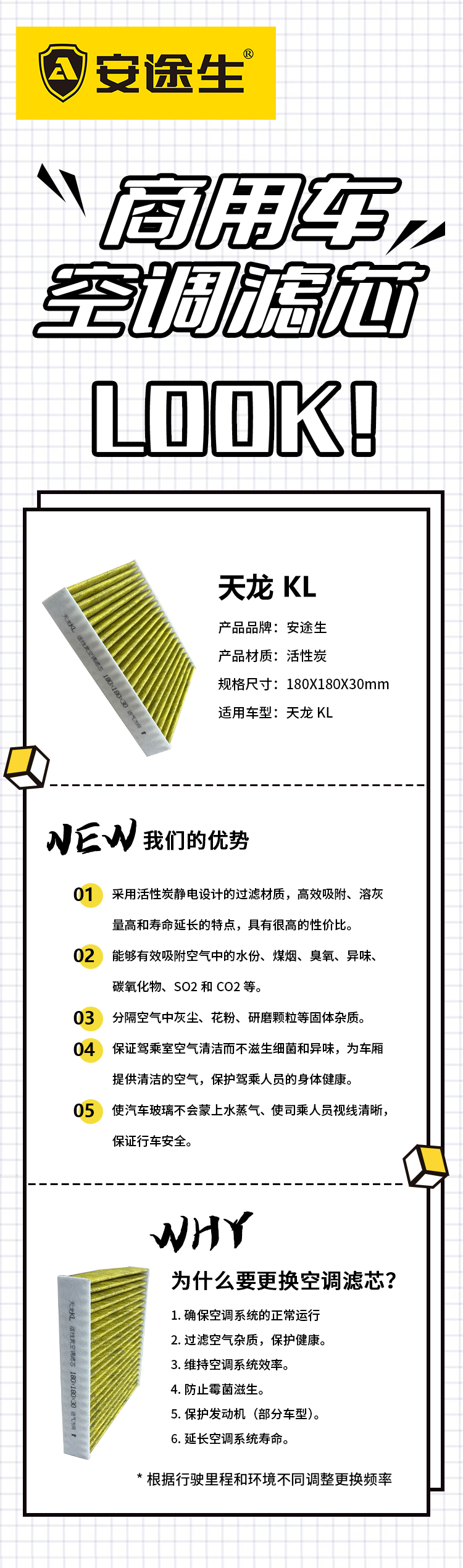 安途生东风天龙KL活性炭空调滤芯长里程除异味防止霉菌商用车