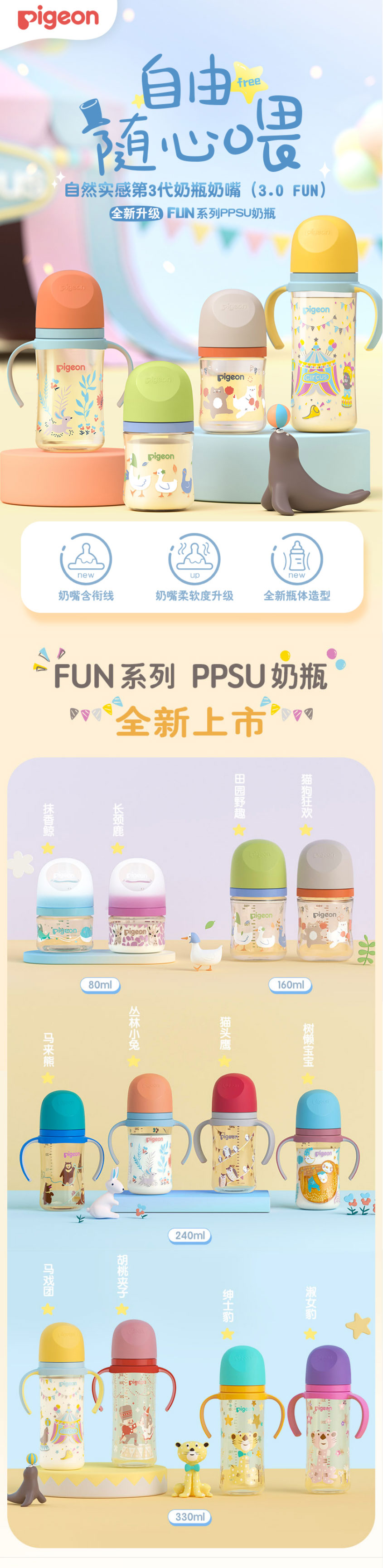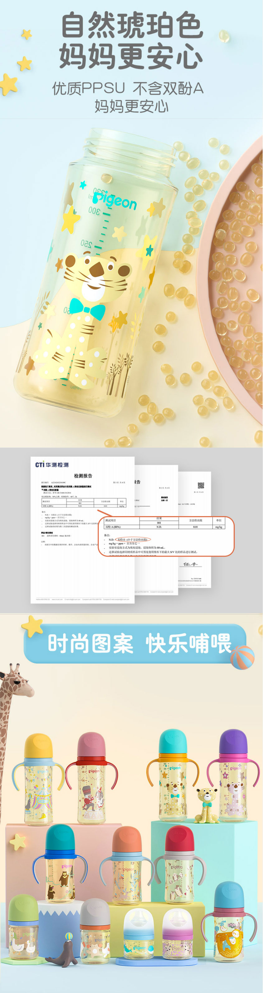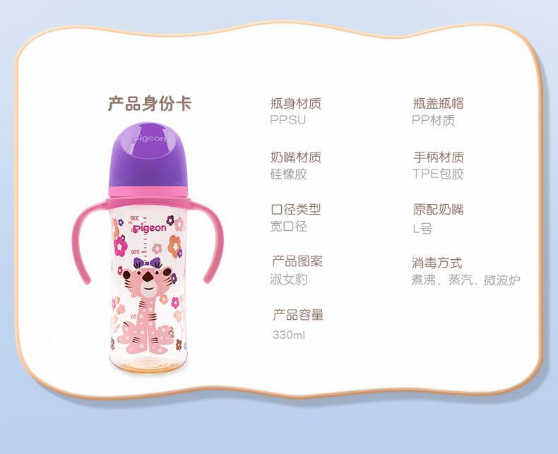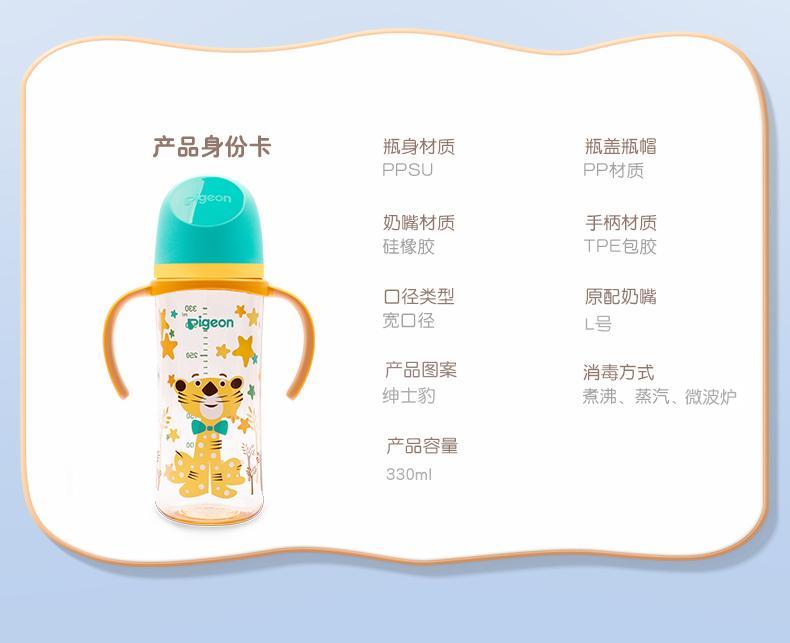 贝亲330ml自然实感Ⅲ宽口径彩绘PPSU双把手奶瓶(配 L号奶嘴)绅士豹