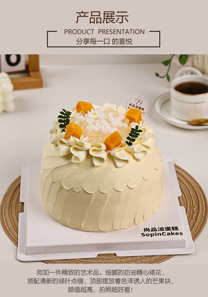 我们坚持当日接单、新鲜现做,拒绝罐头果肉与植物奶油,让每一口都保留食材本真的鲜活清甜。生活需要一点甜,我们的蛋糕不只是一份甜品,更是传递快乐的仪式感,为你带来视觉与味蕾的双重满足~