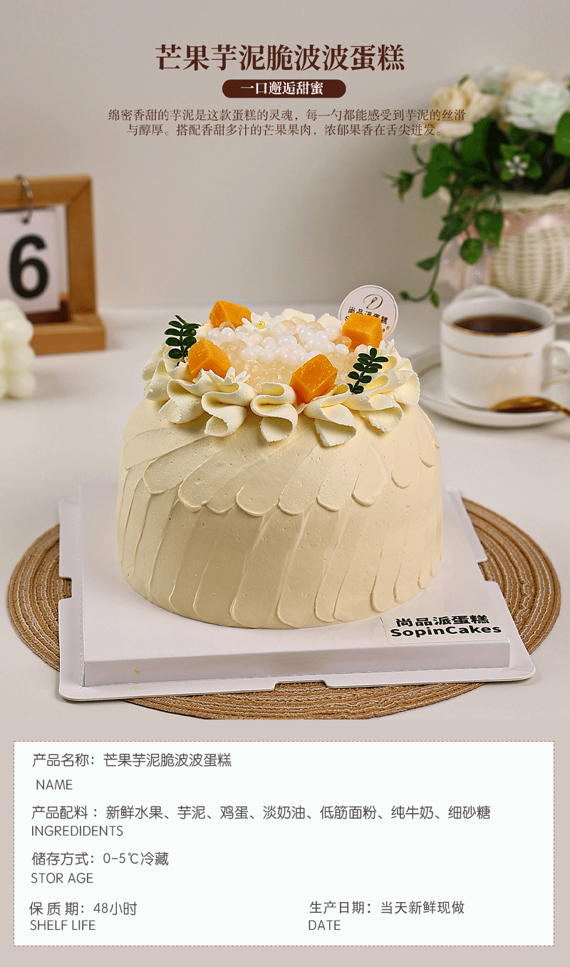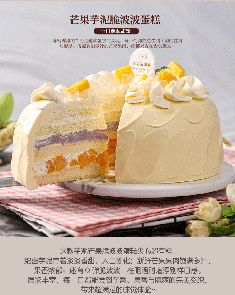 颜值口感双在线|芒果芋泥脆波波蛋糕,一口邂逅甜蜜【惠州】