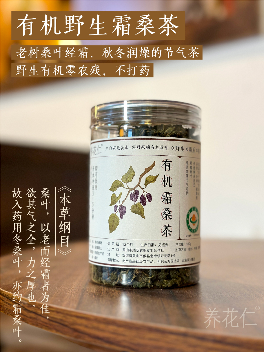 【品名】有机野生霜桑茶 【品牌】养花仁 【规格】180g/罐 【保质期】12个月 【储存方法】请置于阴凉干燥处,避免阳光直射 【产地】安徽 【发货地】陕西 【发货快递】韵达 【不发货区域】新疆,西藏,港澳台地区不发 【发货时效】48小时,节假日顺延 |