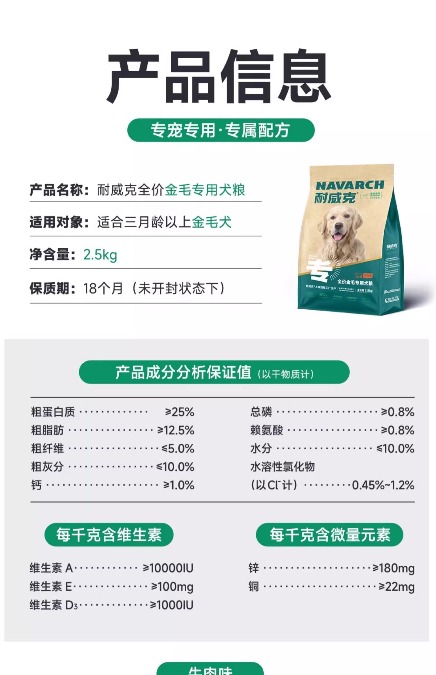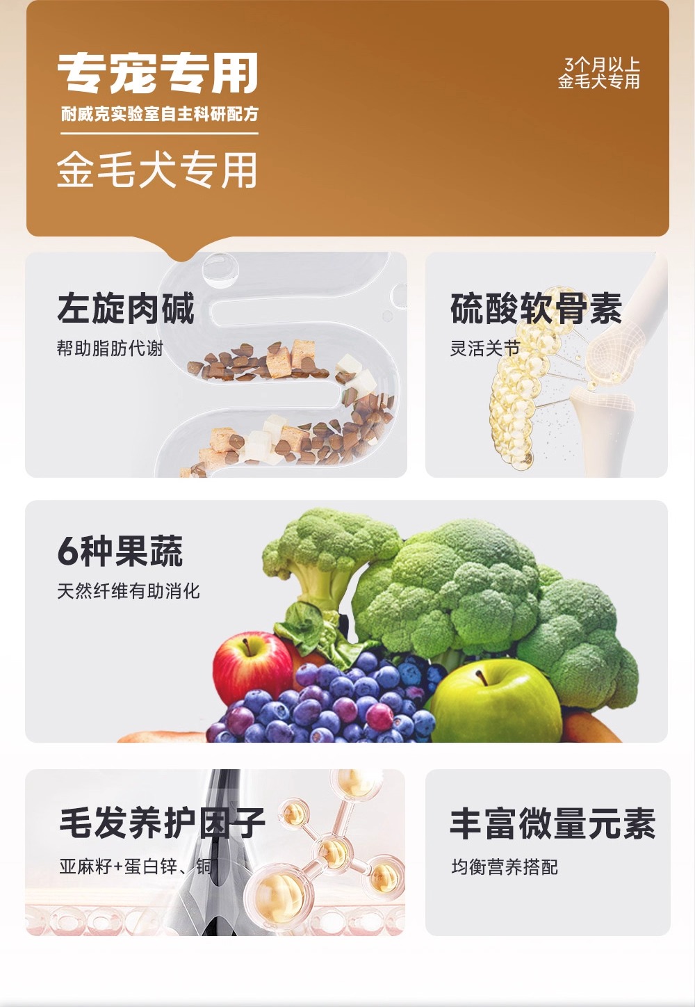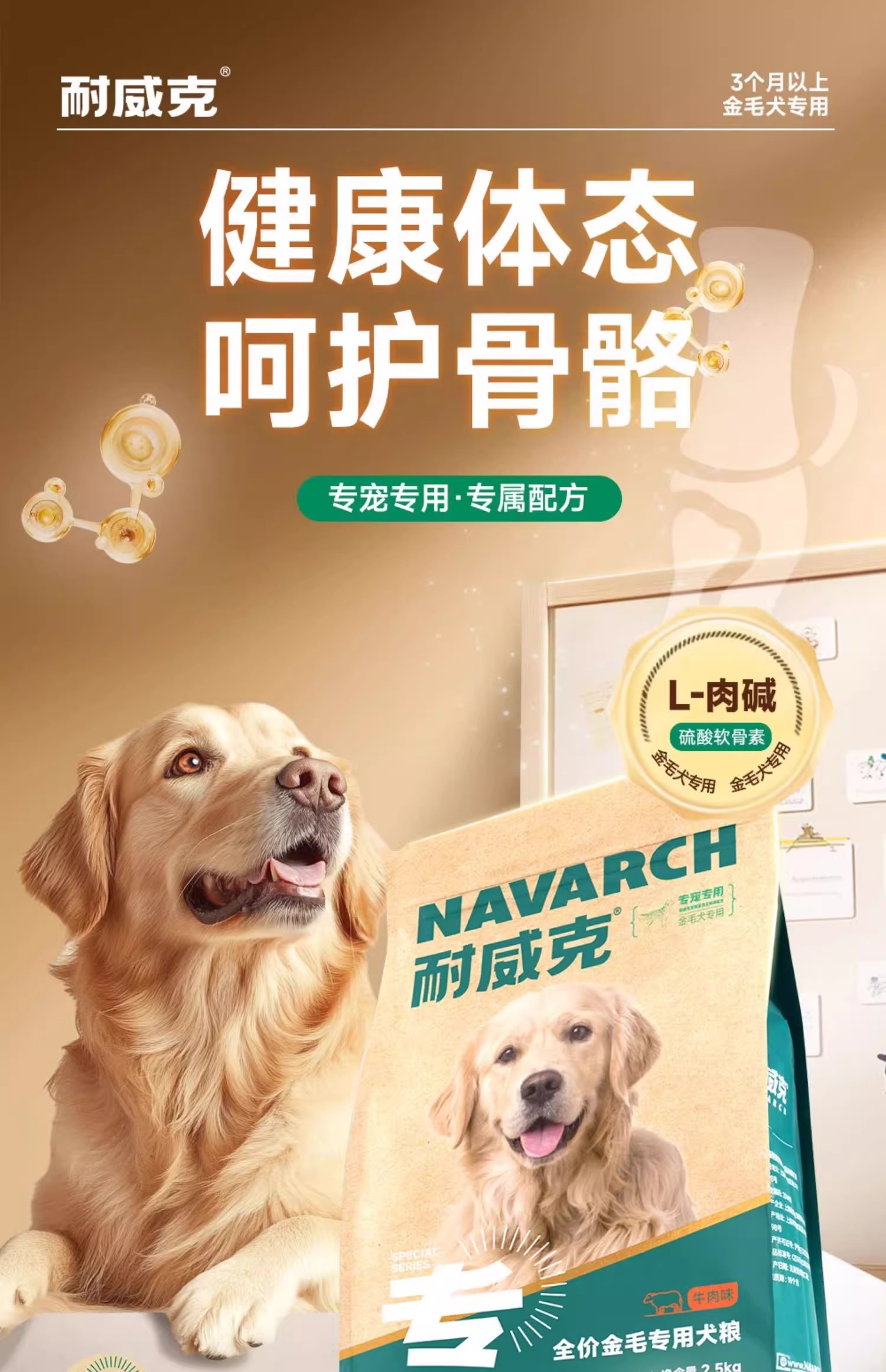 金毛经典专用狗粮 | 牛肉配方 | 强壮骨骼 |护肤靓毛