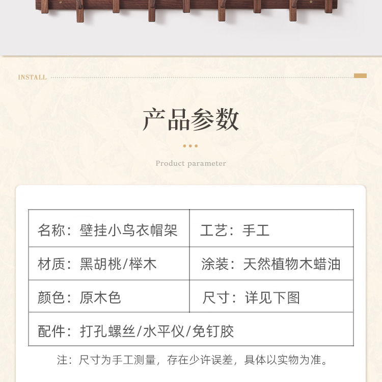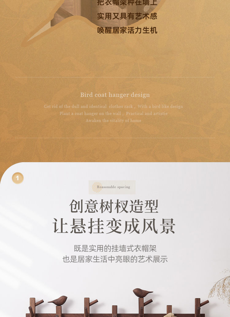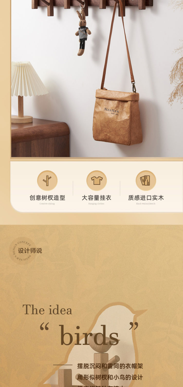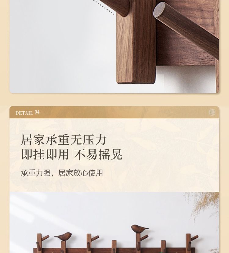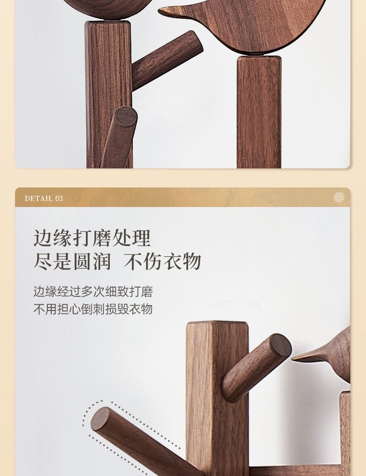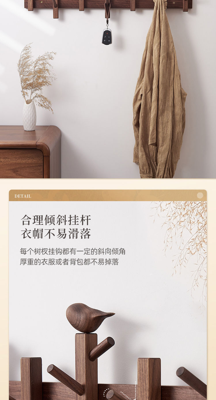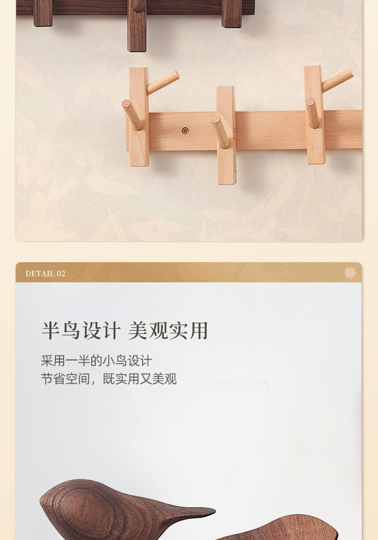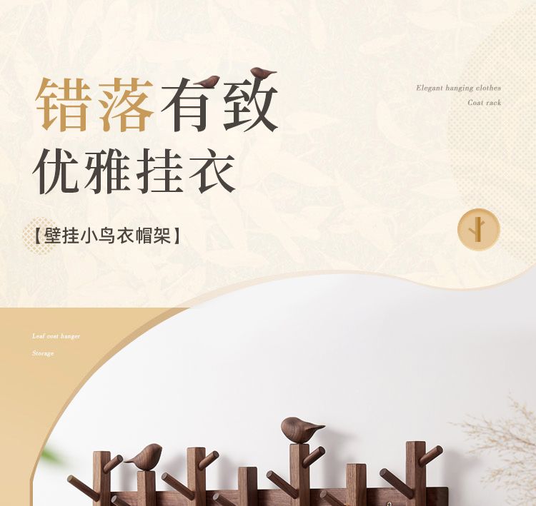 实木挂钩进门玄关钥匙挂衣架墙上壁挂衣钩卧室客厅创意小鸟高颜值