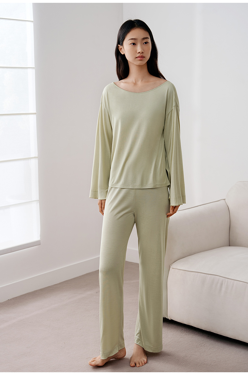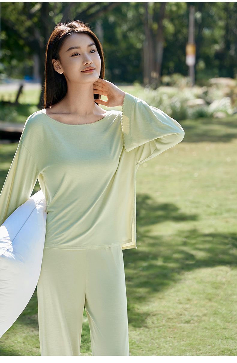 深睡眠蚕丝睡衣】金三塔新品真丝睡衣 植物染睡裙衣裤套100%桑蚕丝家居服女 YZFFA301+YZFFA201