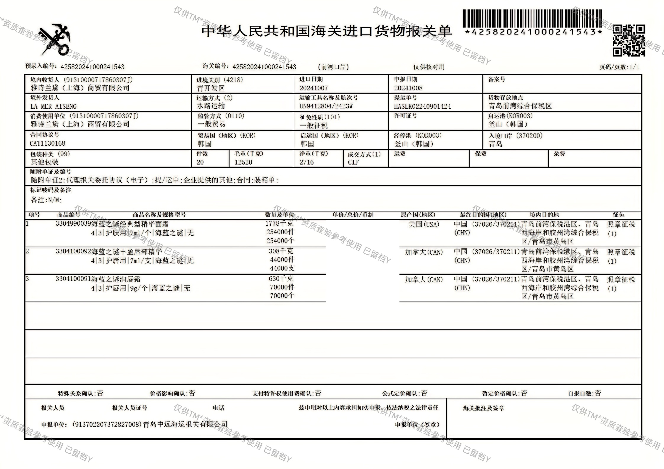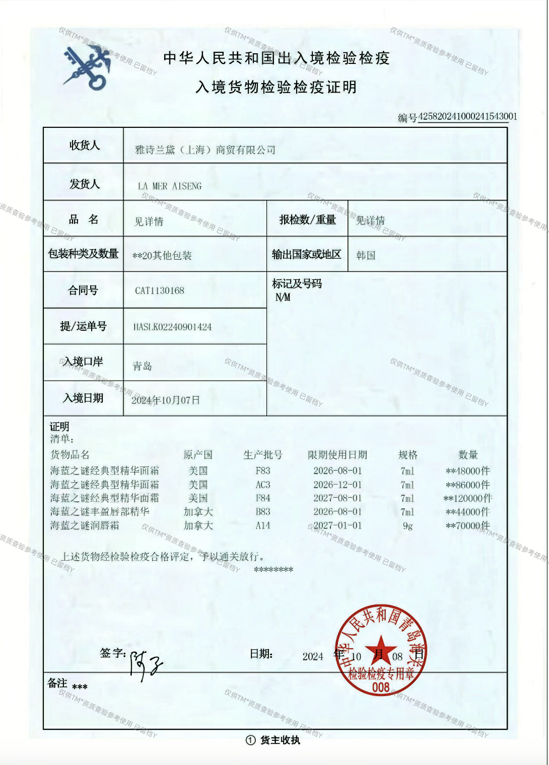【品名】:海蓝之谜唇部精华唇蜜7ml+5g/9g唇膜 『品名』海藍之謎唇部精華唇蜜7ml+5g/9g唇膜 [ Product Name ]: Mystery of Sea Blue Lip essence 7ml Lip Honey+5g/9gLip Mask 【规格】:见规格明细 『規格』:見規格明細 [Specification]: See specification details 【产品原产国】:法国 『產品原產國』:法國 [Product Country of Origin]: France 【是否有生产批号】:是 『是否有生產批號』:是 [Is there a production batch number]: Yes 【资质是否齐全】:是 『資質是否齊全』:是 [Is the qualification complete]: Yes 【产品保质期】:三年 『產品保質期』:三年 [Product shelf life]: three years 【包装方式】:盒装 『包裝管道』:盒裝 [Packaging method]: boxed 【快递】:四通一达 『快遞』:四通一達 [Express ]: Four connections and one delivery 【发货地】:广东/国内 『發貨地』:廣東/國內 [Place of shipment]: Guangdong/domestic 【运费模板】:全国均发 『運費範本』:全國均發 [Freight template ]: Nationwide average shipping 【发货时效】:48小时 『發貨時效』:48小時 [Delivery time ]: 48 hours 【售后问题】:支持七天无理由退换(未拆封且配件齐全,不影响二次销售) 『售後問題』:支持七天無理由退換(未拆封且配件齊全,不影響二次銷售) [After sales issues]:Support for seven days of no reason return and exchange (unopened and complete accessories, not affecting secondary sales) |