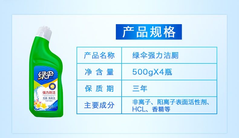 绿伞强力厕洁500g马桶清洁剂除臭去味高效清洁