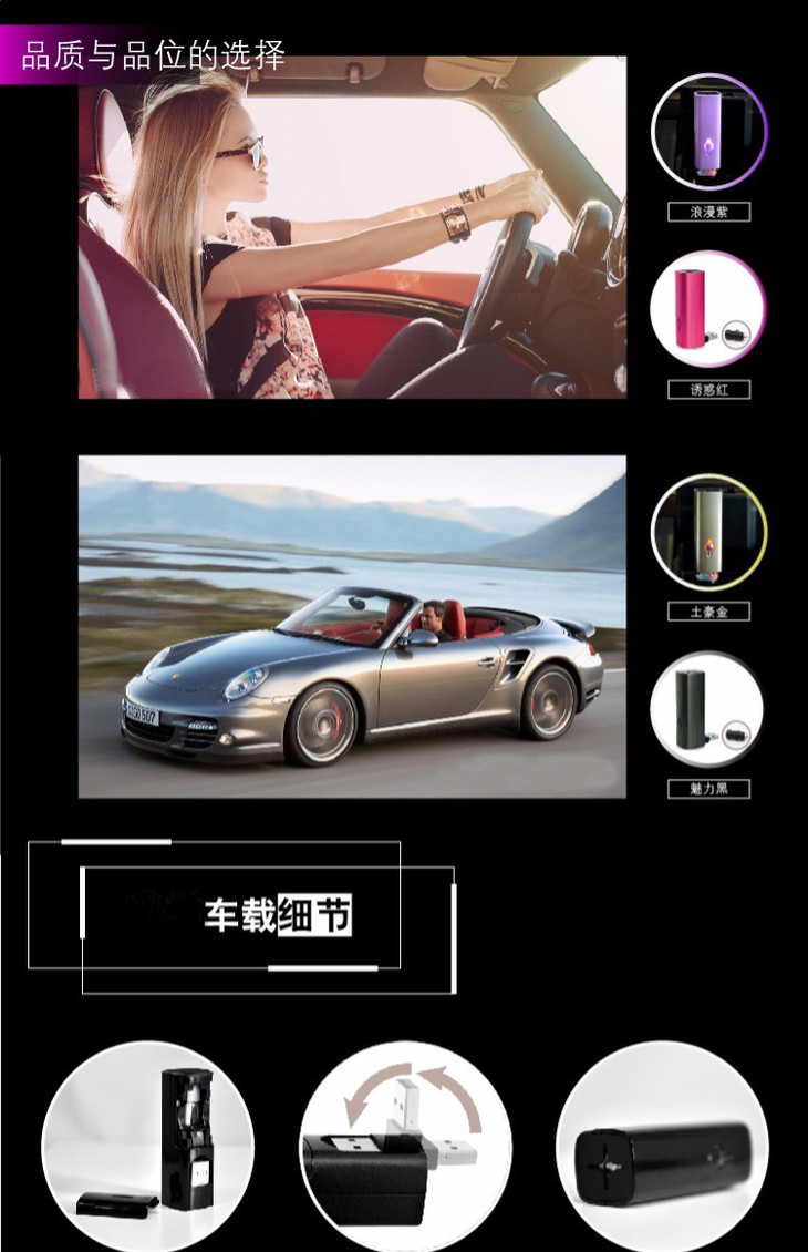 便携式香薰仪,土豪金色,小巧玲珑,比口红大点。用纯精油的,不用加水,超方便好用。可以插电脑USB、车载、手机充电器、移动电源(某些电源的输出电流可能不适合).....无论是家里、开车,还是办公室、出差旅行,方便携带香薰,随时随地享受精油芳香生活!