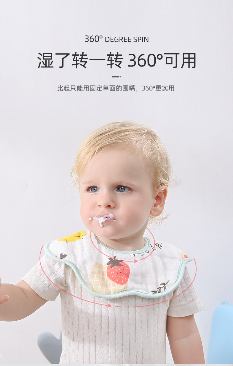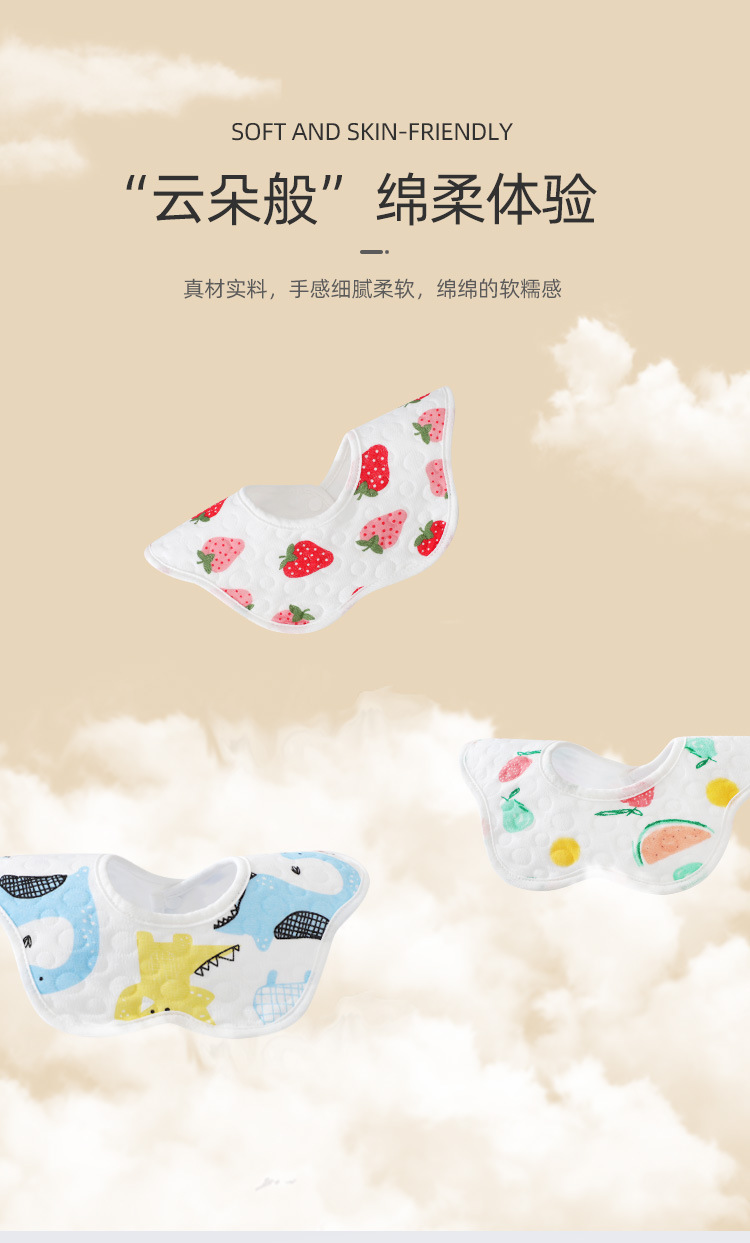 【10条装 ‘云朵般’绵柔体验】360度全棉宝宝围兜新生儿童加大围嘴洗漱纱布防水口水巾婴童用品