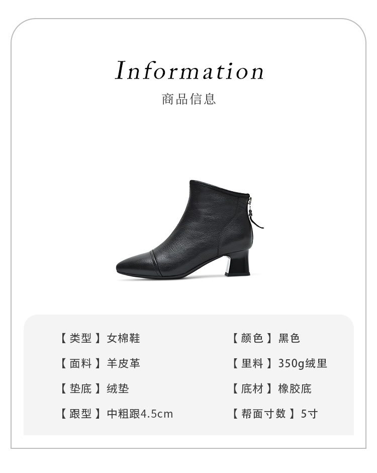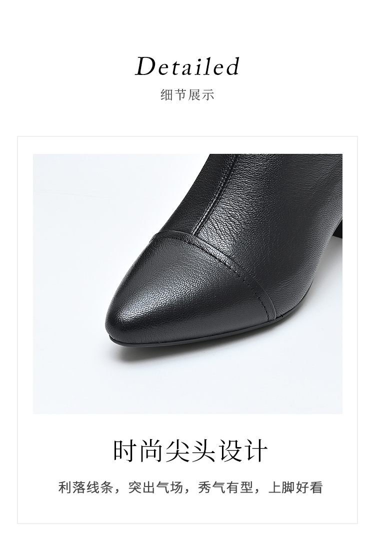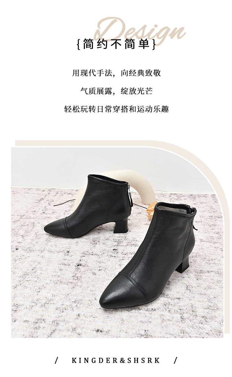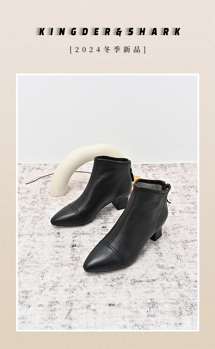 经典鲨2024年冬季新款优雅尖头后拉链加绒保暖中粗跟短靴女KW117-D58161