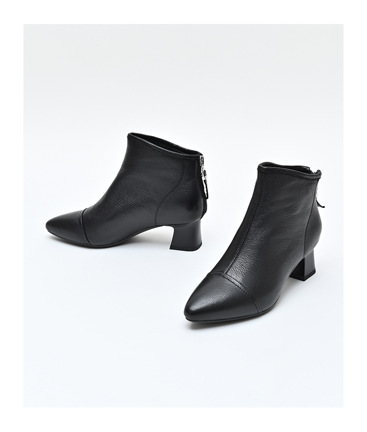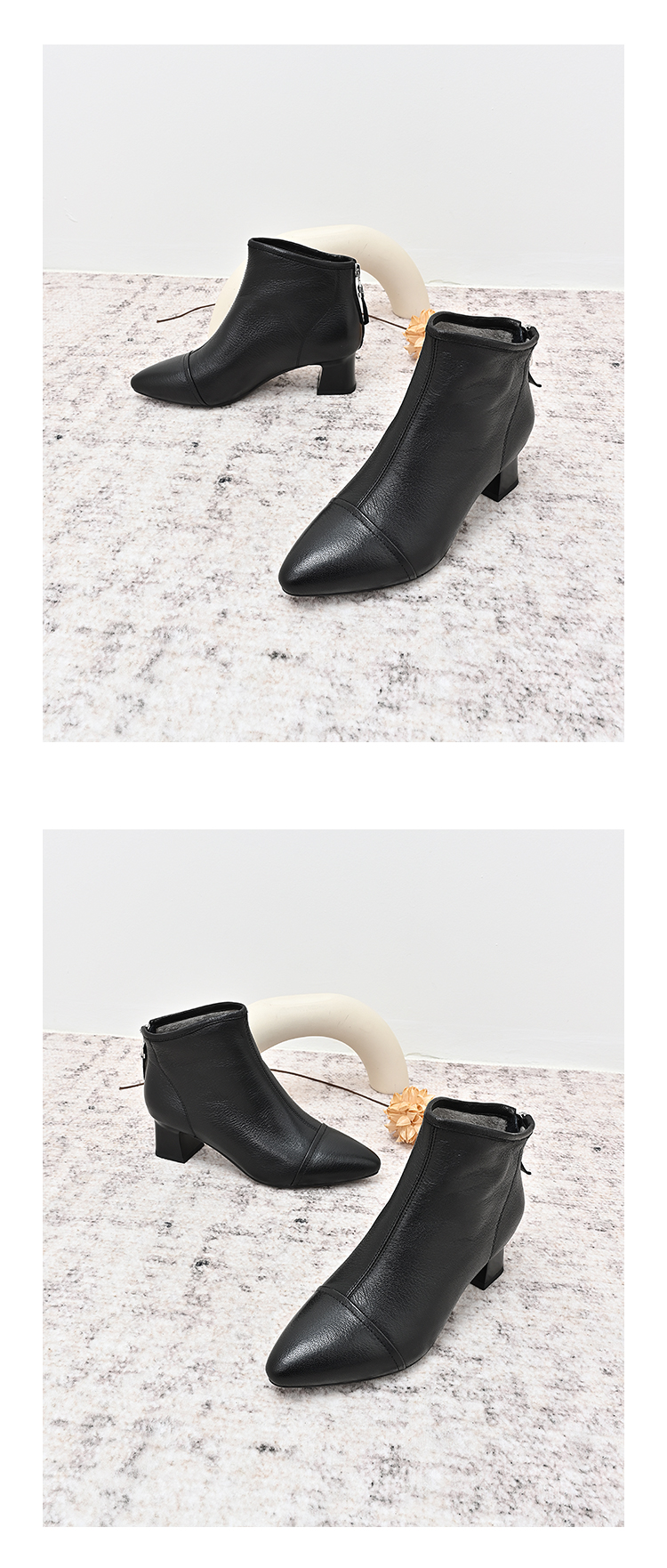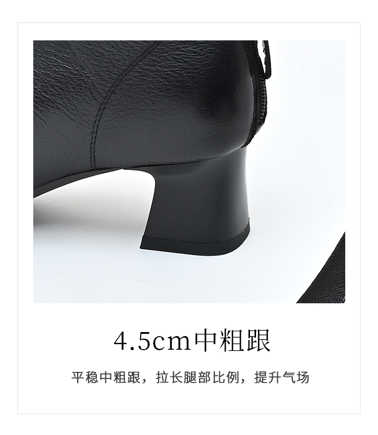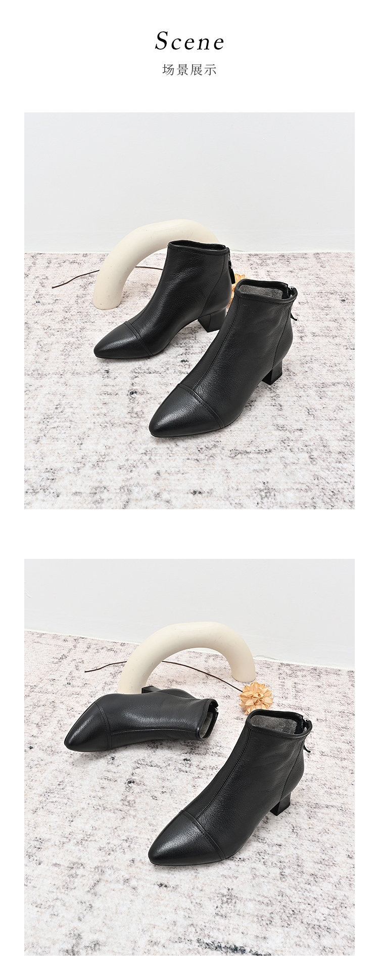 经典鲨2024年冬季新款优雅尖头后拉链加绒保暖中粗跟短靴女KW117-D58161
