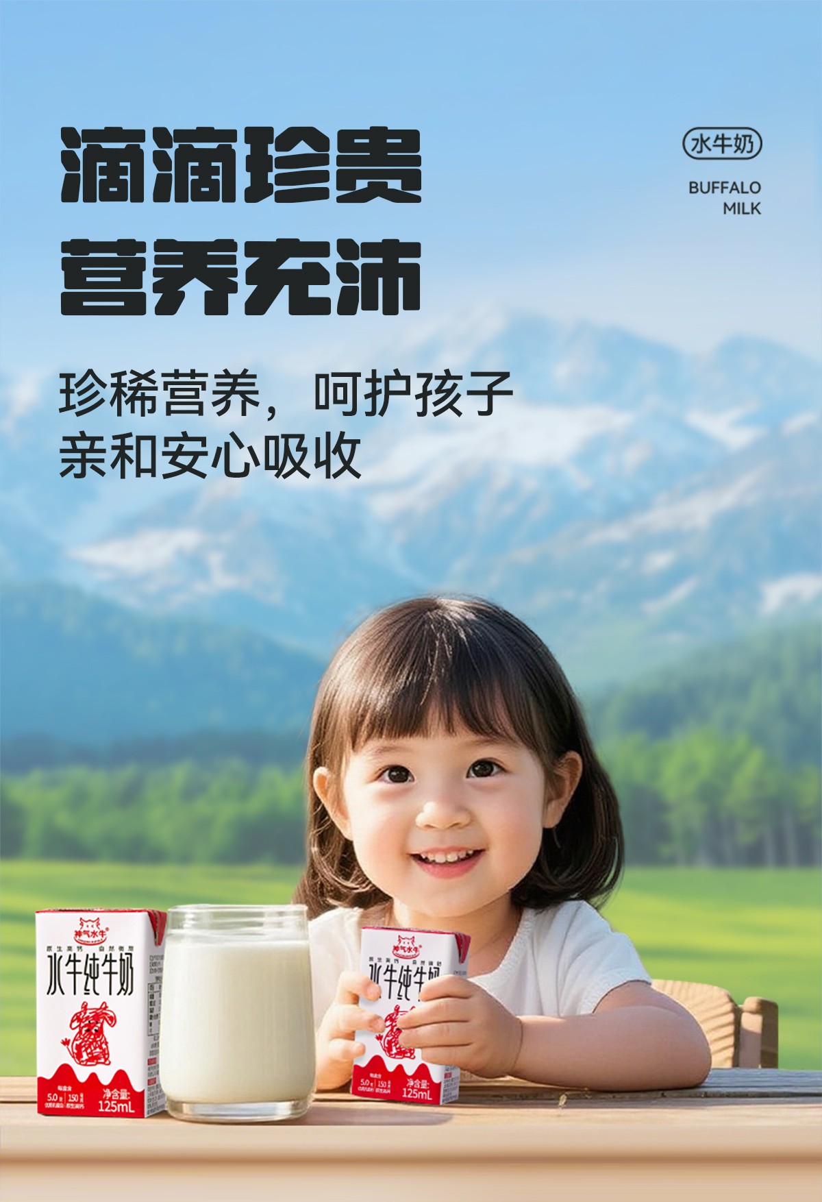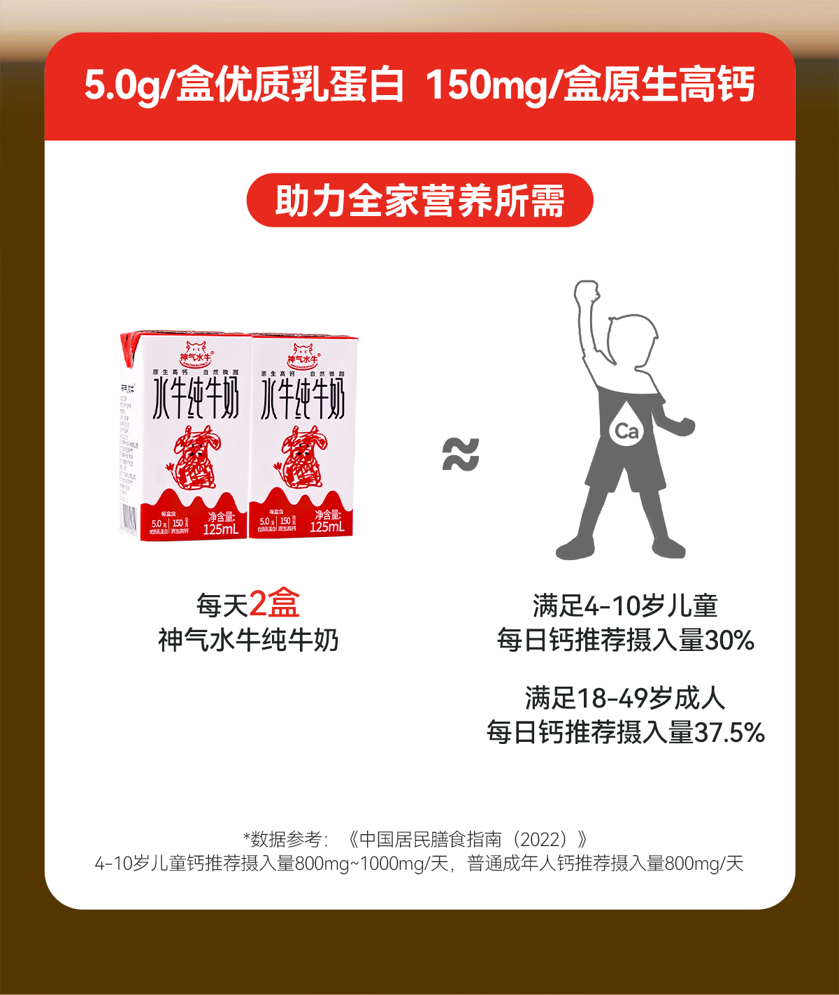 【新品上市】神气水牛纯牛奶125ml*9盒*1箱儿童高钙早餐奶