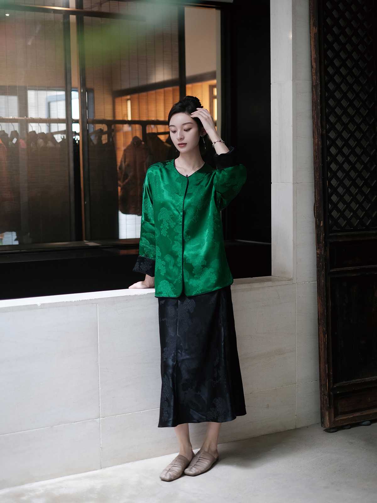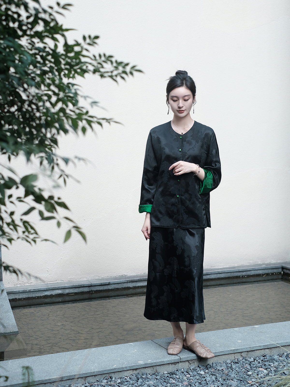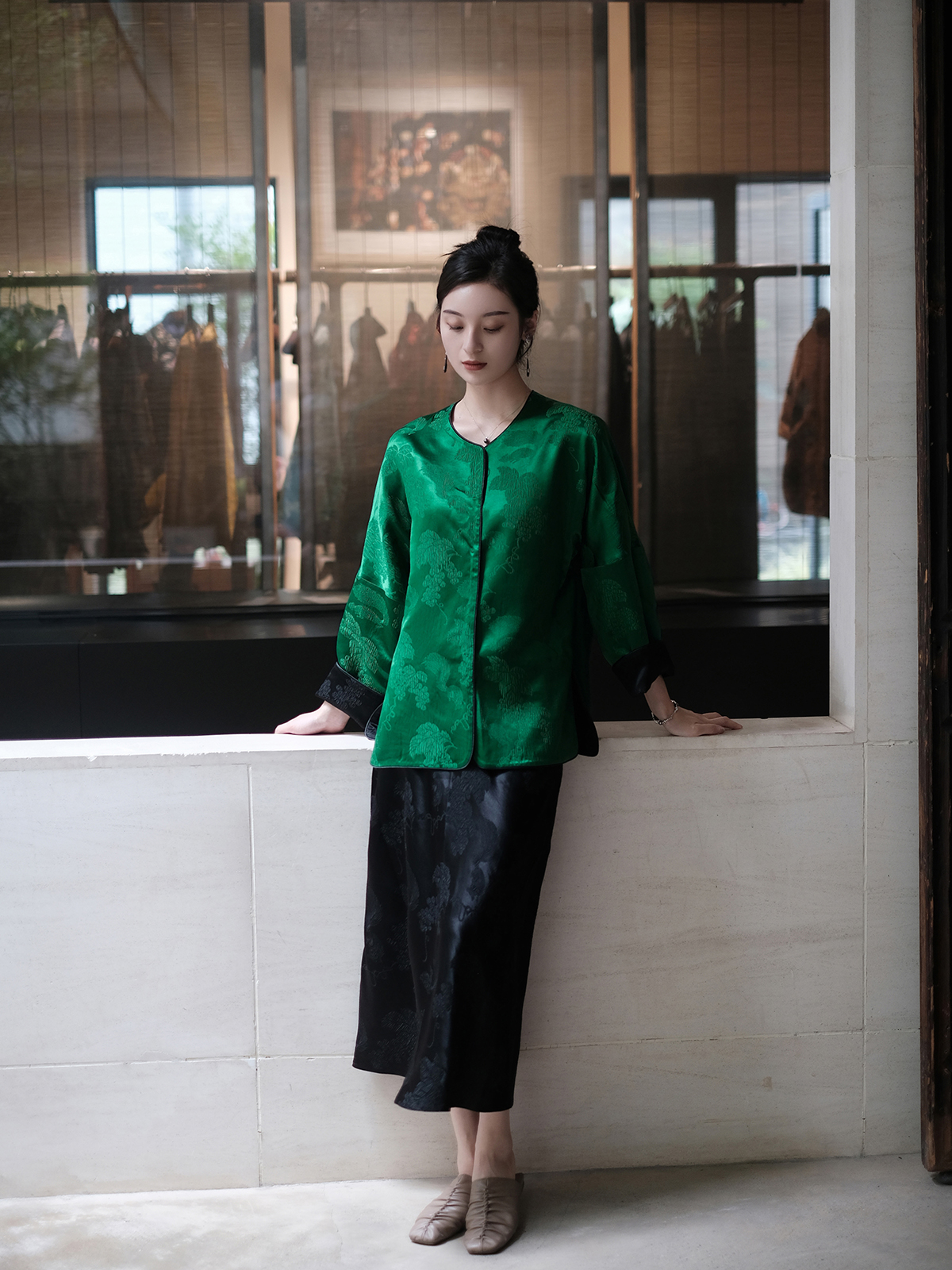 盛唐牡丹 |真丝提花梅兰竹菊外套/可正反两穿