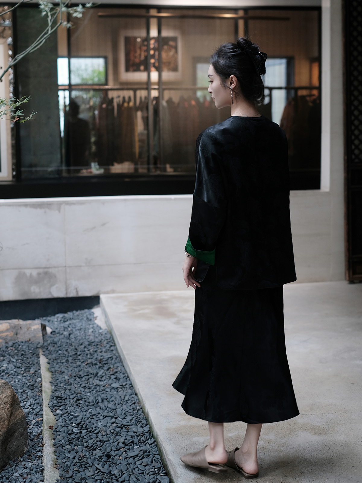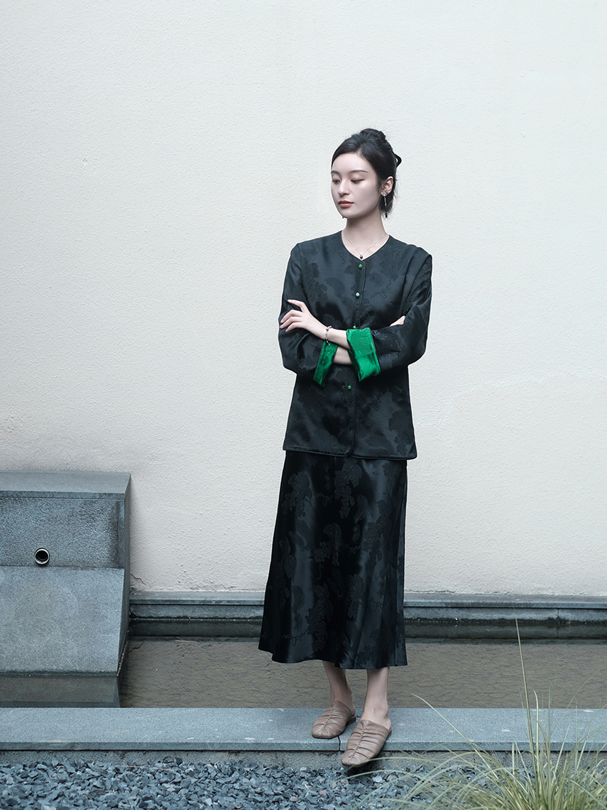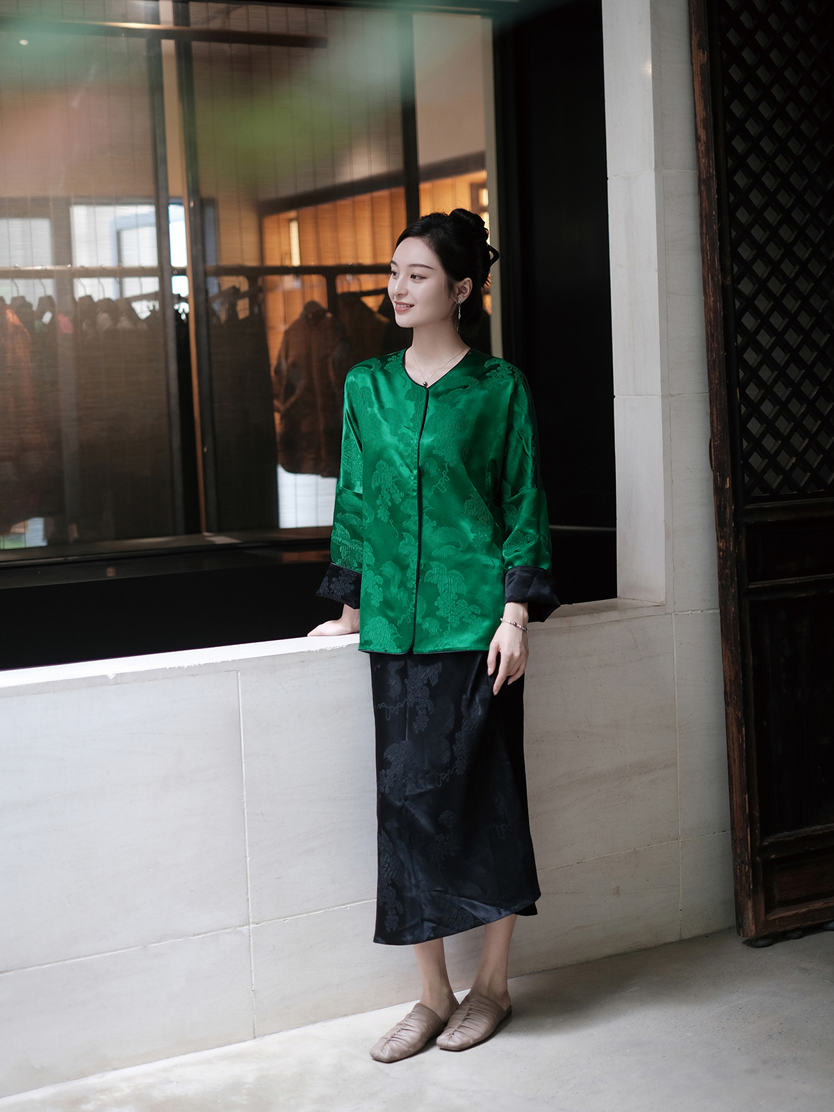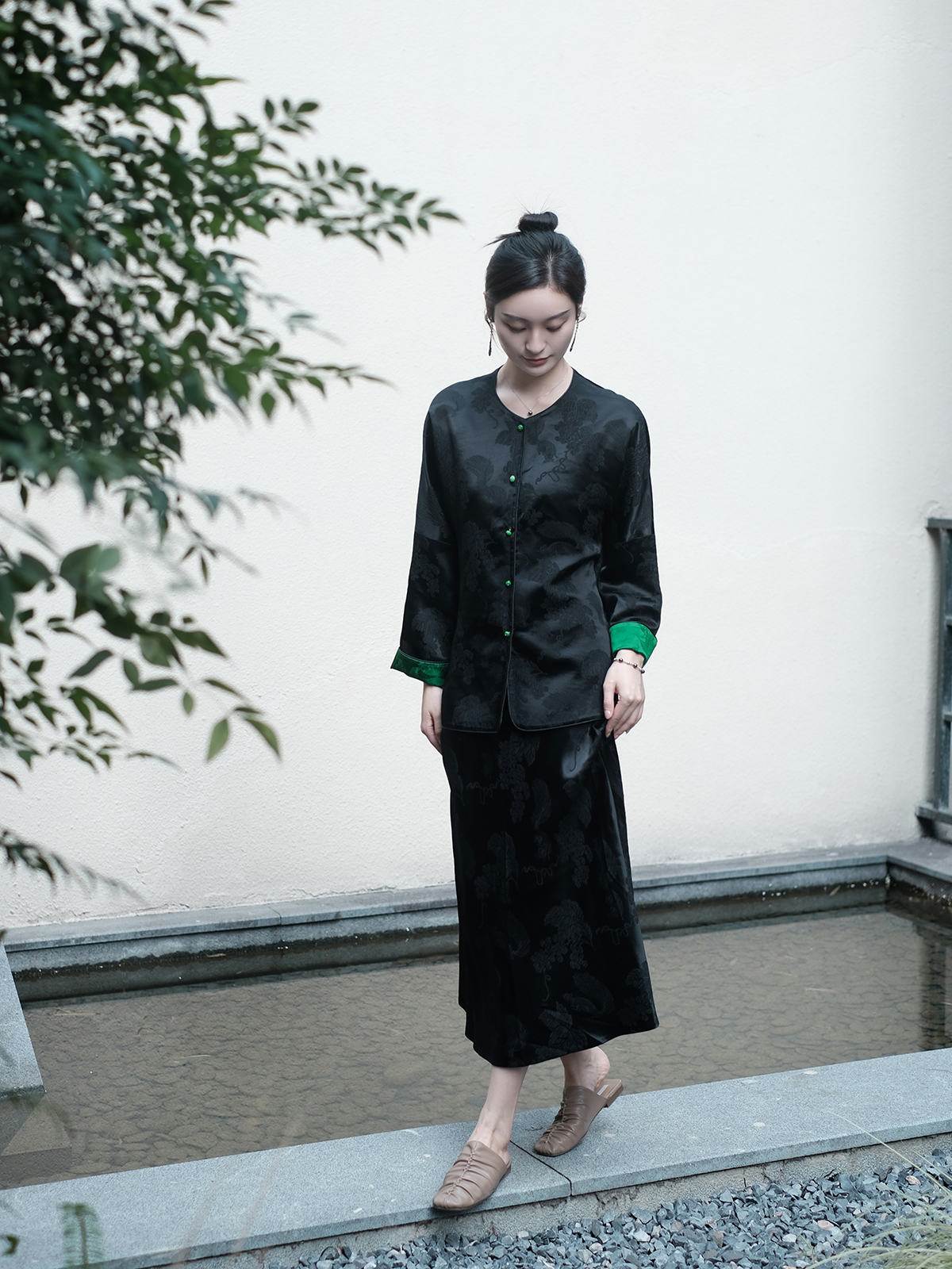 盛唐牡丹 |真丝提花梅兰竹菊外套/可正反两穿