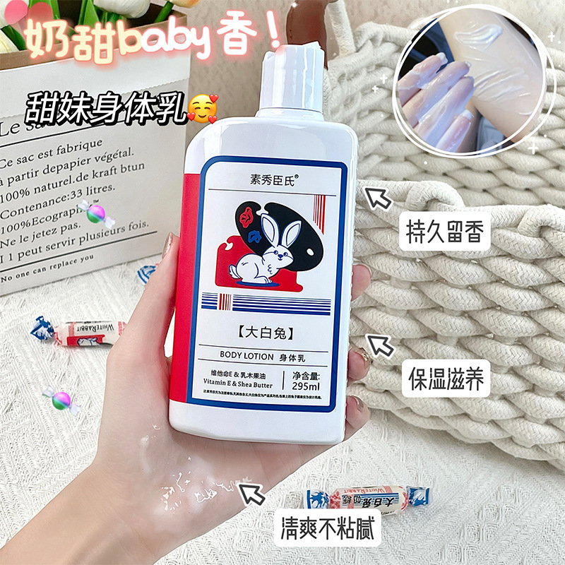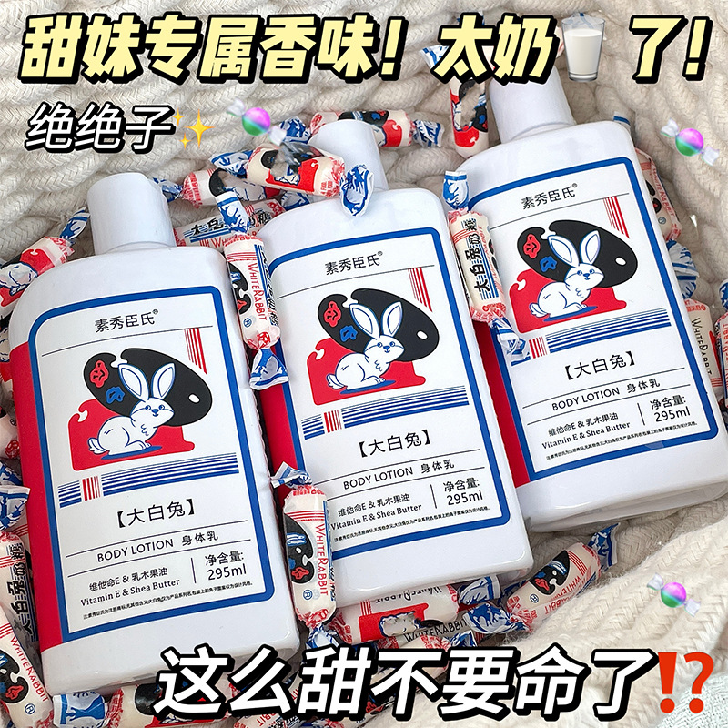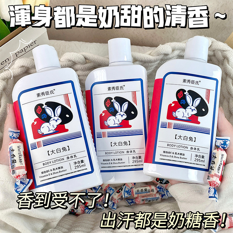 【香了一整天!大白兔身体乳】白兔奶甜香腌入味了,被同事狂问系列,持久留香,肌肤又滑又嫩,秋冬补水改善干燥起皮保湿润肤乳L