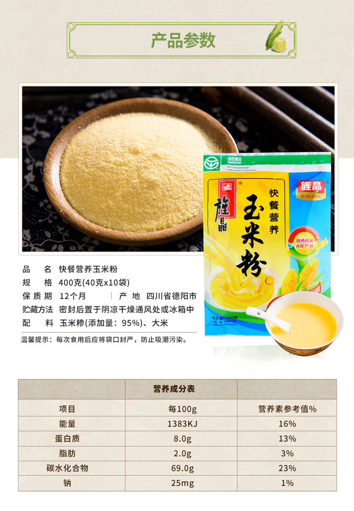 旌晶快餐营养玉米粉 400g/袋 绿色食品 早餐代餐粉
