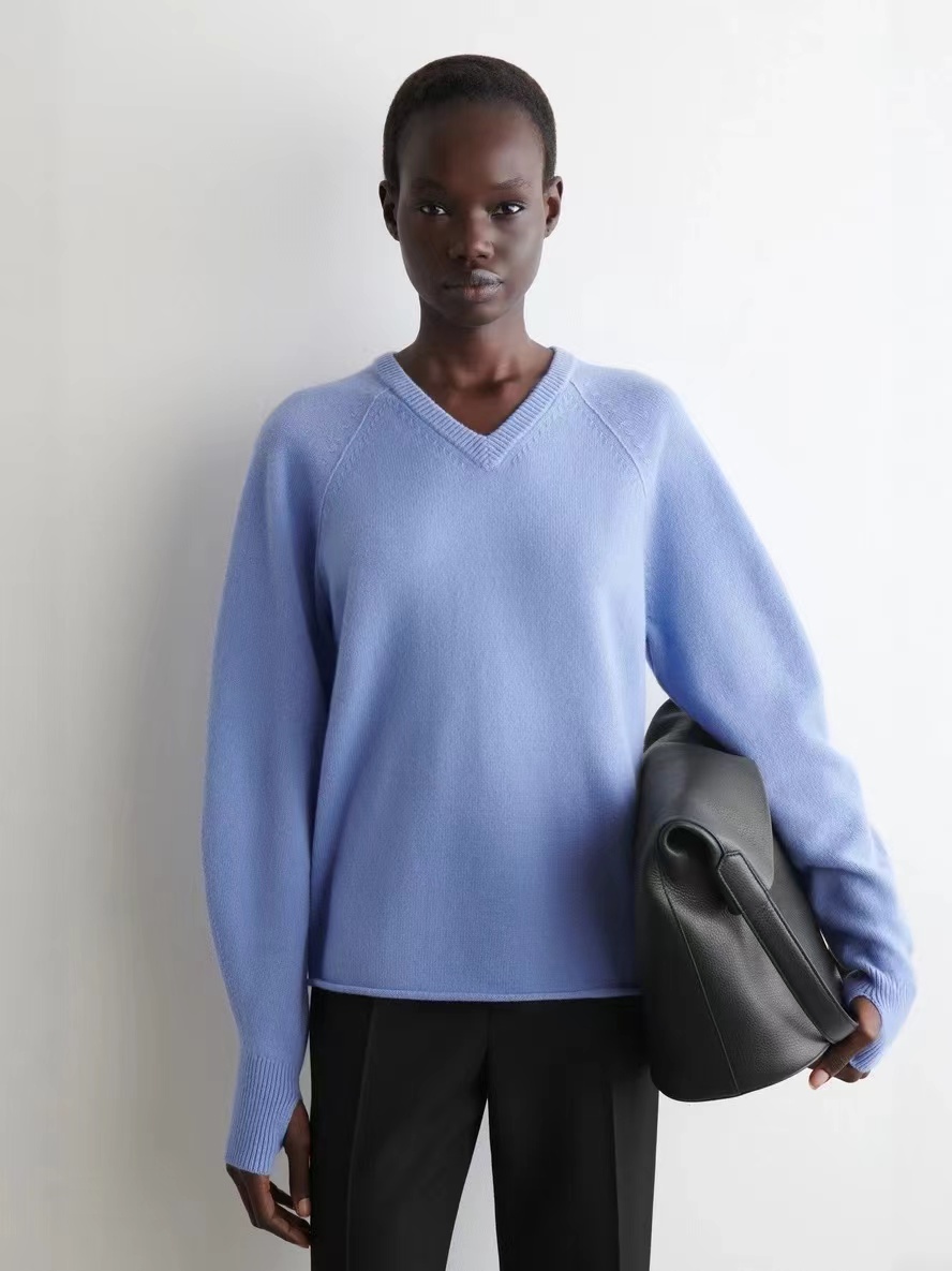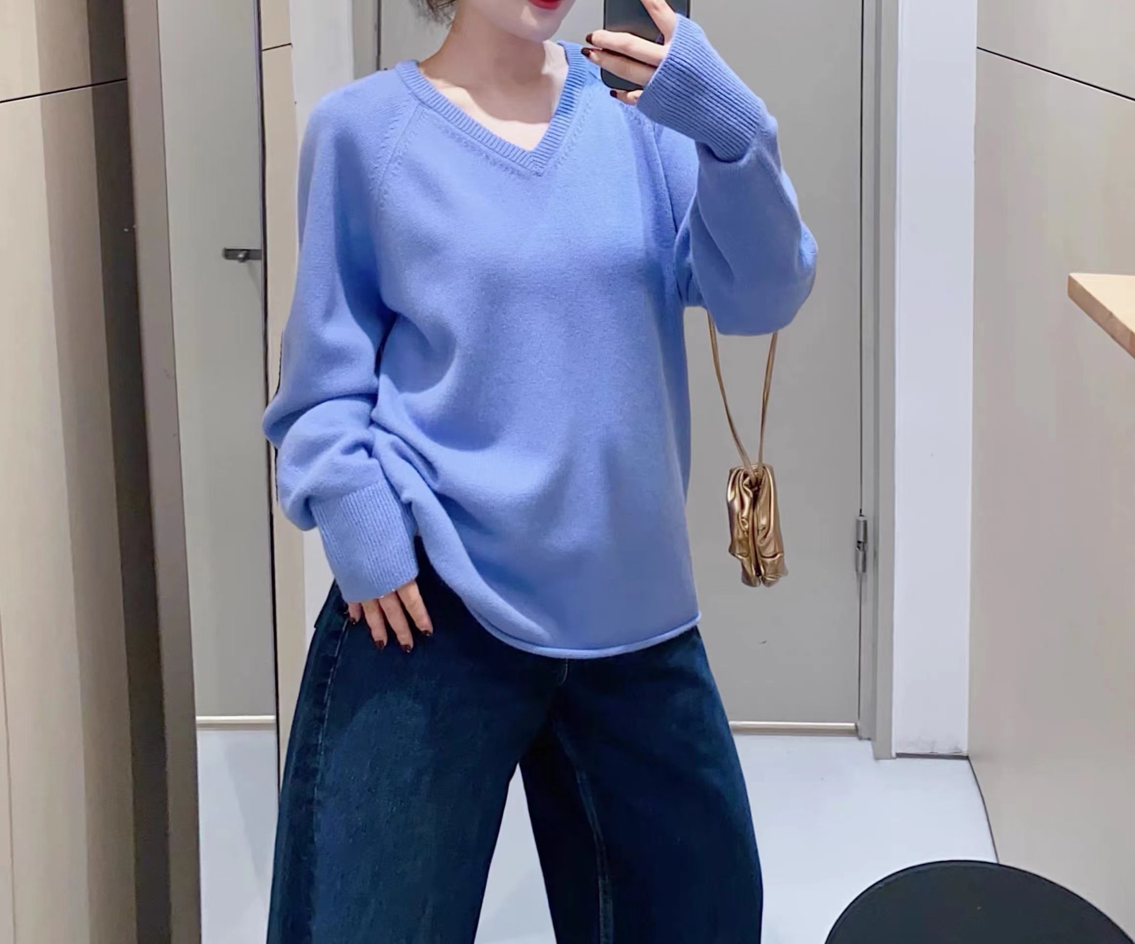 卷边下摆V领插肩长袖宽松显瘦针织衫上衣女秋季,北欧小众~女装2025秋冬新款标准版型V领针织衫,羔级感羊毛混纺宽松毛衣上衣,G890,选用触感细腻羊毛混纺针织纱线,打造柔软丰盈的肌理感,简约V领结合罗纹收口,修饰脖颈线条显脸小,休闲宽松版型,加长袖拇指子口设计,演绎换季叠穿趣味性~~~