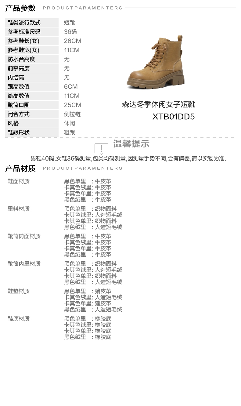 【云粉节】BF楼 森达厚底达马丁靴2025冬季新款酷飒圆头系带短靴XTB01吊牌价1099活动价539