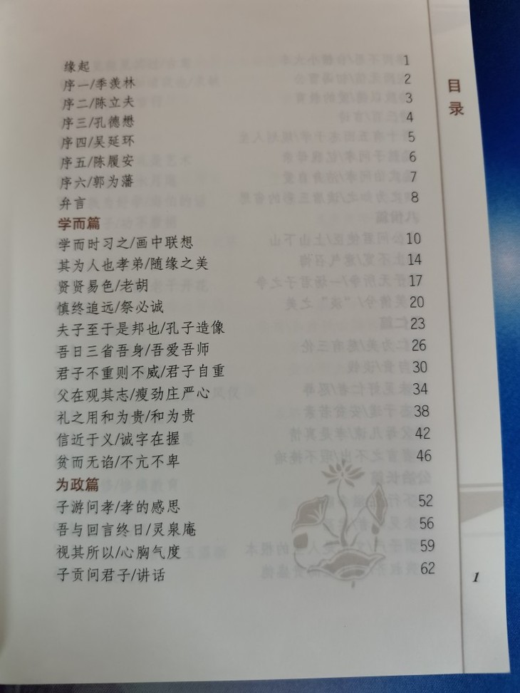 本书主要分为“学而篇”,“为政篇”,“八佾篇”, “里仁篇”,“公冶长篇”, “雍也篇”, “述而篇”, “泰伯篇”, “子罕篇”, “先进篇”, “颜渊篇”, “子路篇”, “宪问篇”, “卫灵公篇”, “季氏篇”, “阳货篇”, “大学篇”和“中庸篇”十八个篇章,其中共包含《论语》中的一百多个典故短篇。 每一个典故配以精美的图画。且图之为存,不仅辅文,乃是大手笔点睛之作,为众多大师所赞赏,又有许多名家为书作序。