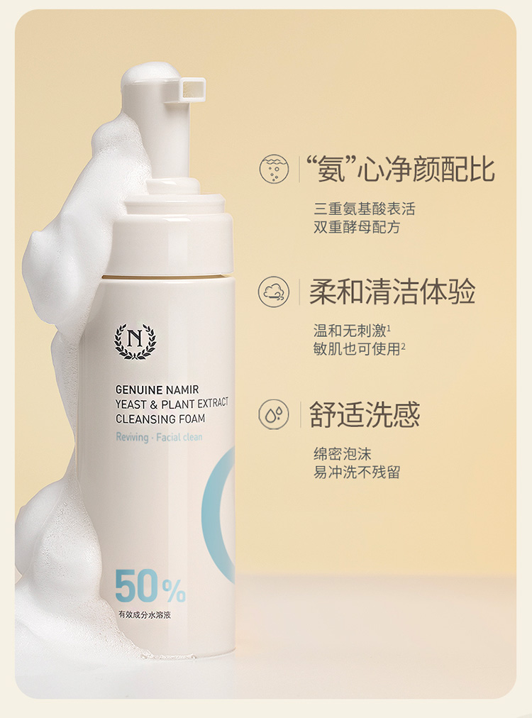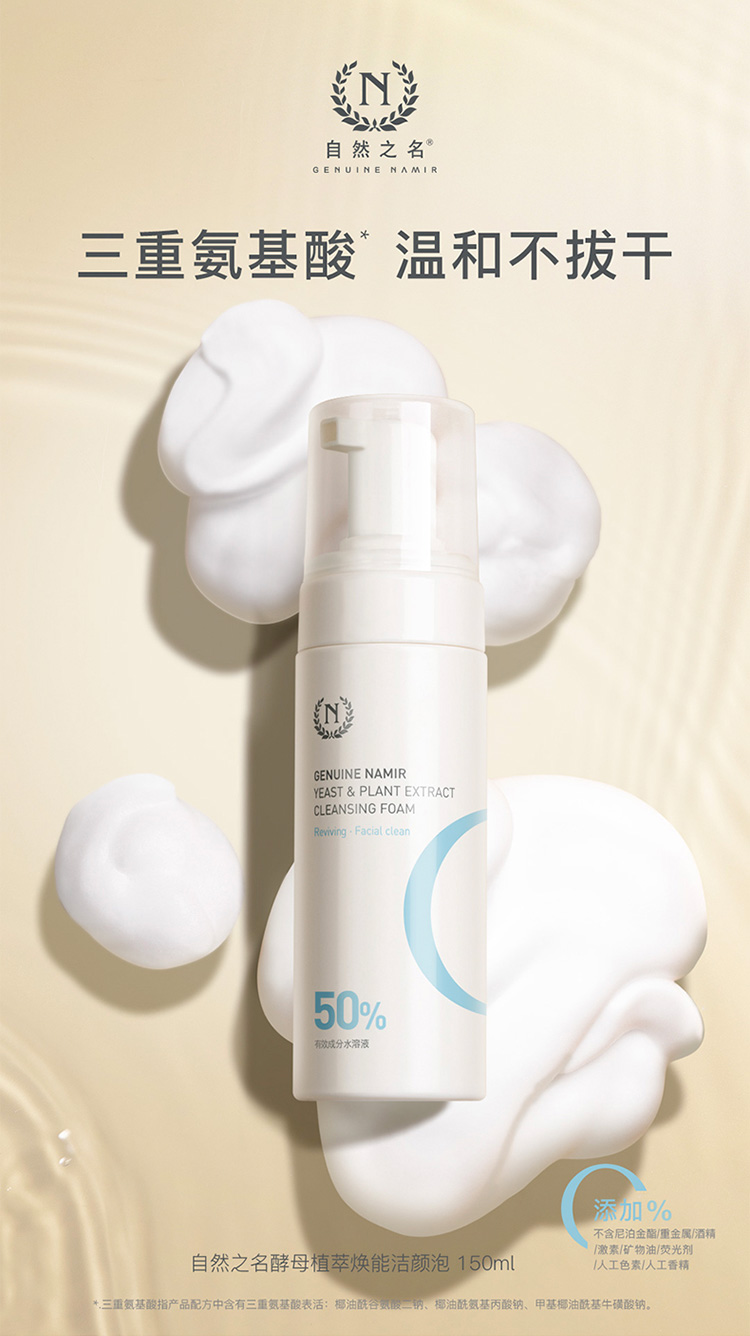 自然之名 氨基酸泡沫洗面奶女补水保湿控油温和洁颜泡150ml