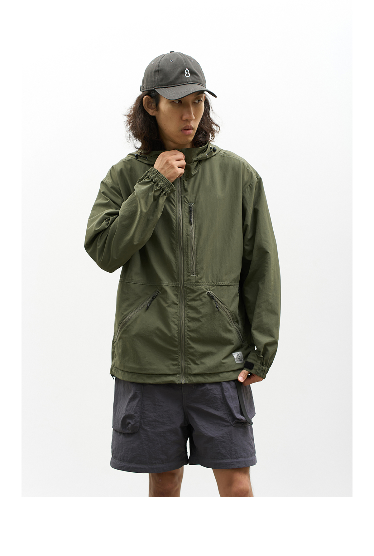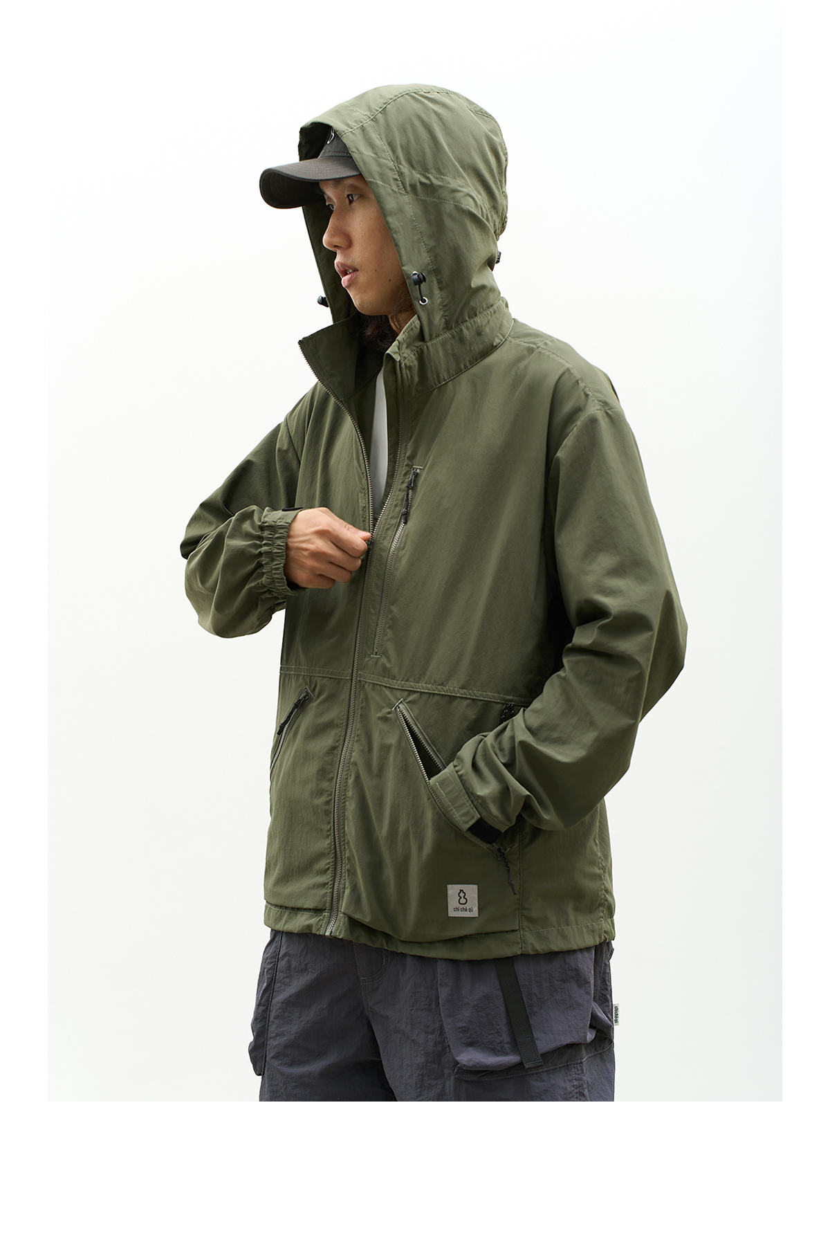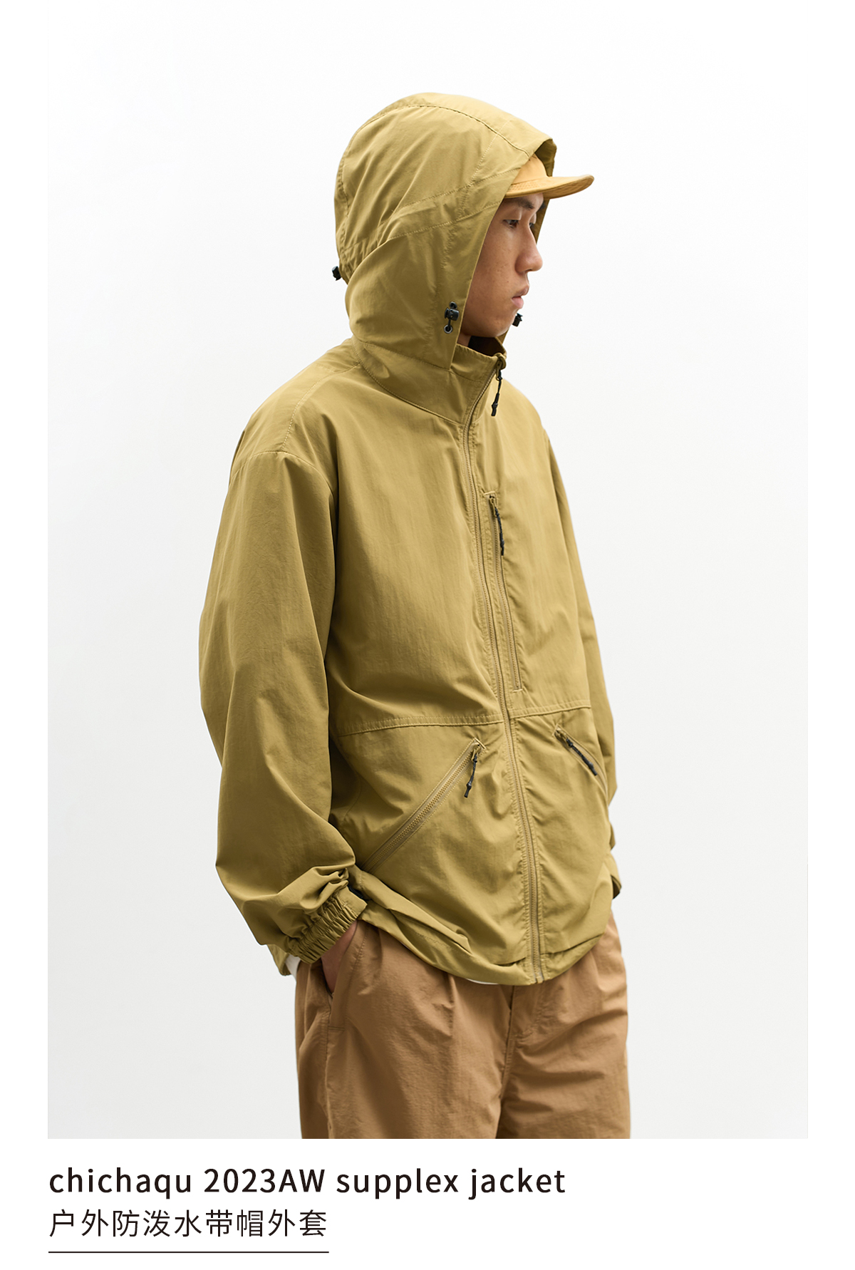 吃茶去chichaqu宽松户外运动supplex带帽拉链外套