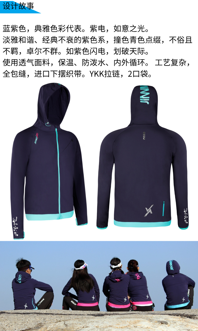 紫电男轻薄透气速干保温防晒弹力帽衫外套