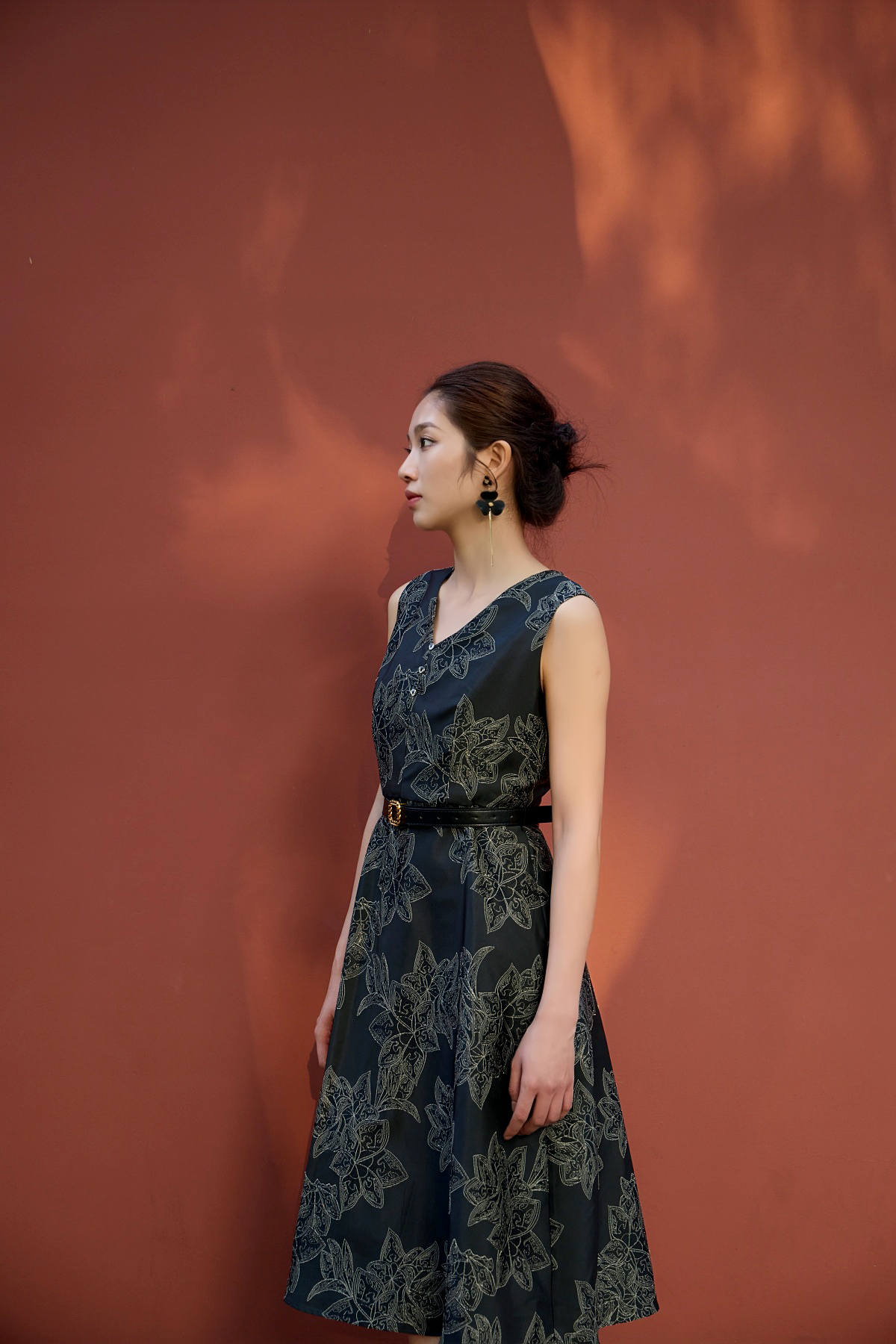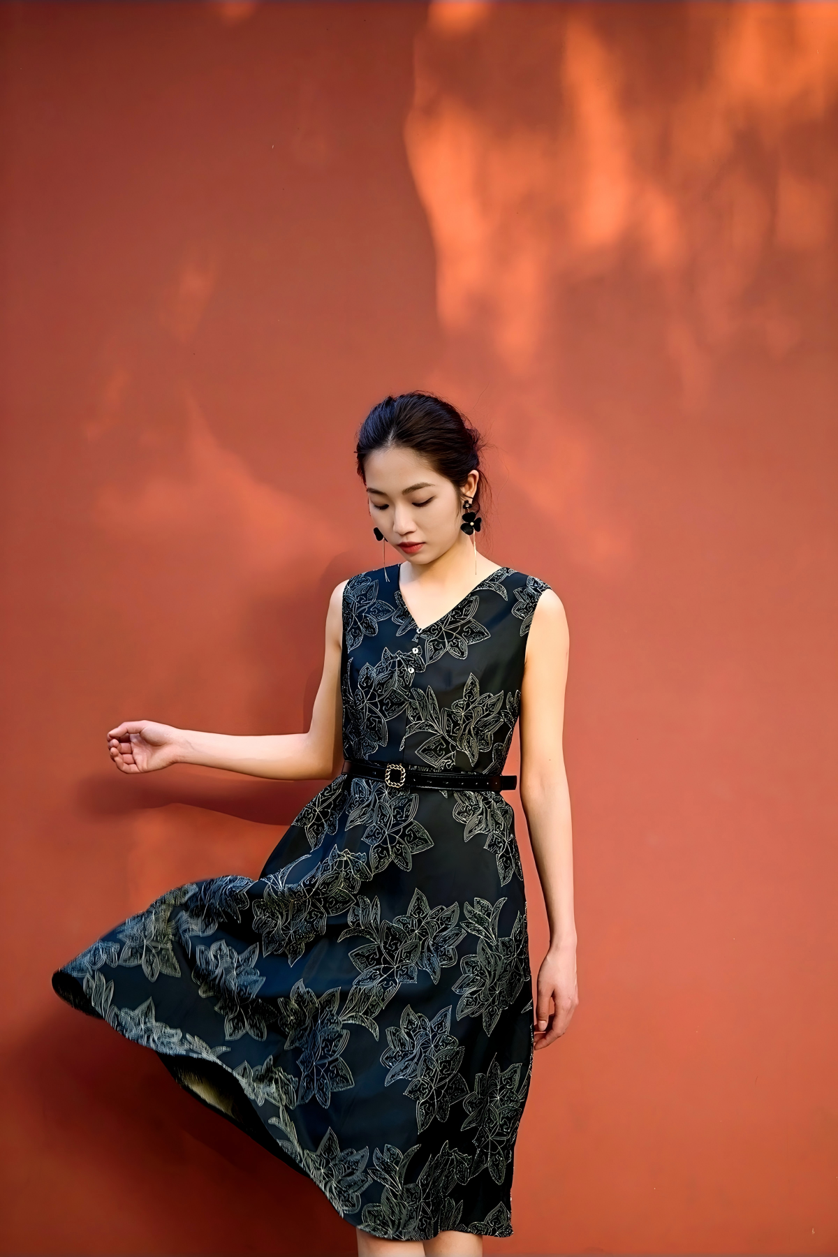 当青铜的厚重, 遇见莲瓣的轻盈,当饕餮的威严,化作裙摆上的纹样,这件重工提花连衣裙,便成了一首穿越千年的诗。