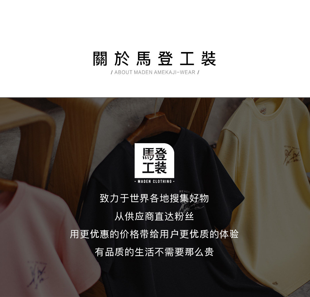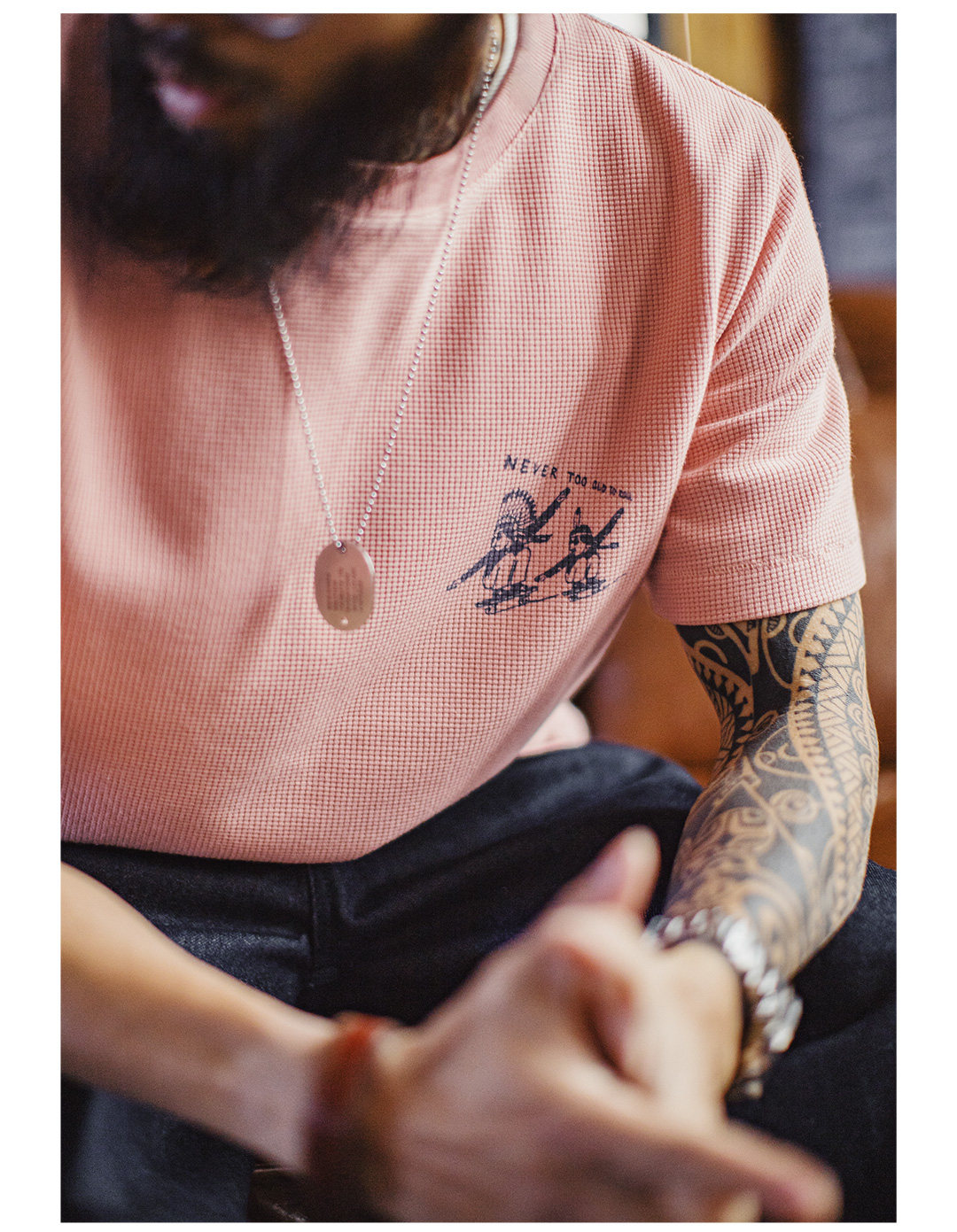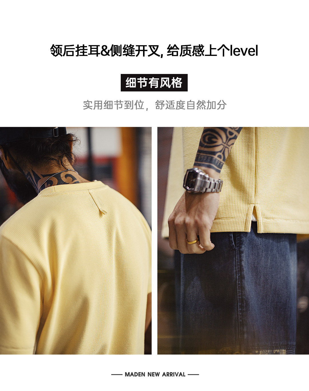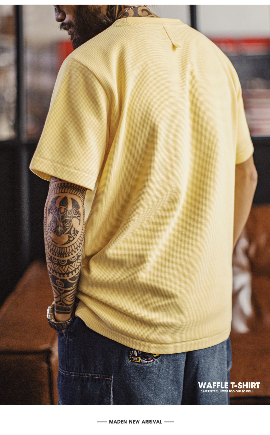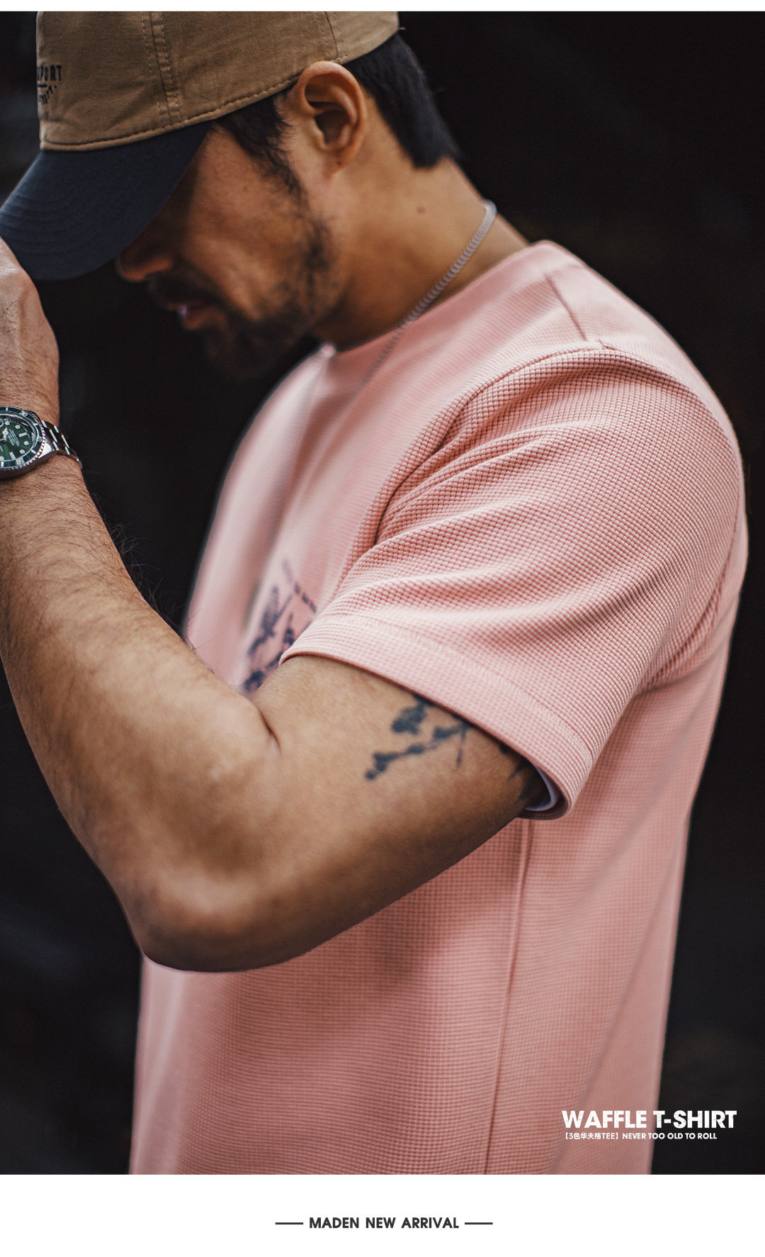 马登工装美式复古华夫格圆领短袖t恤阿美咔叽印第安印花上衣男夏
